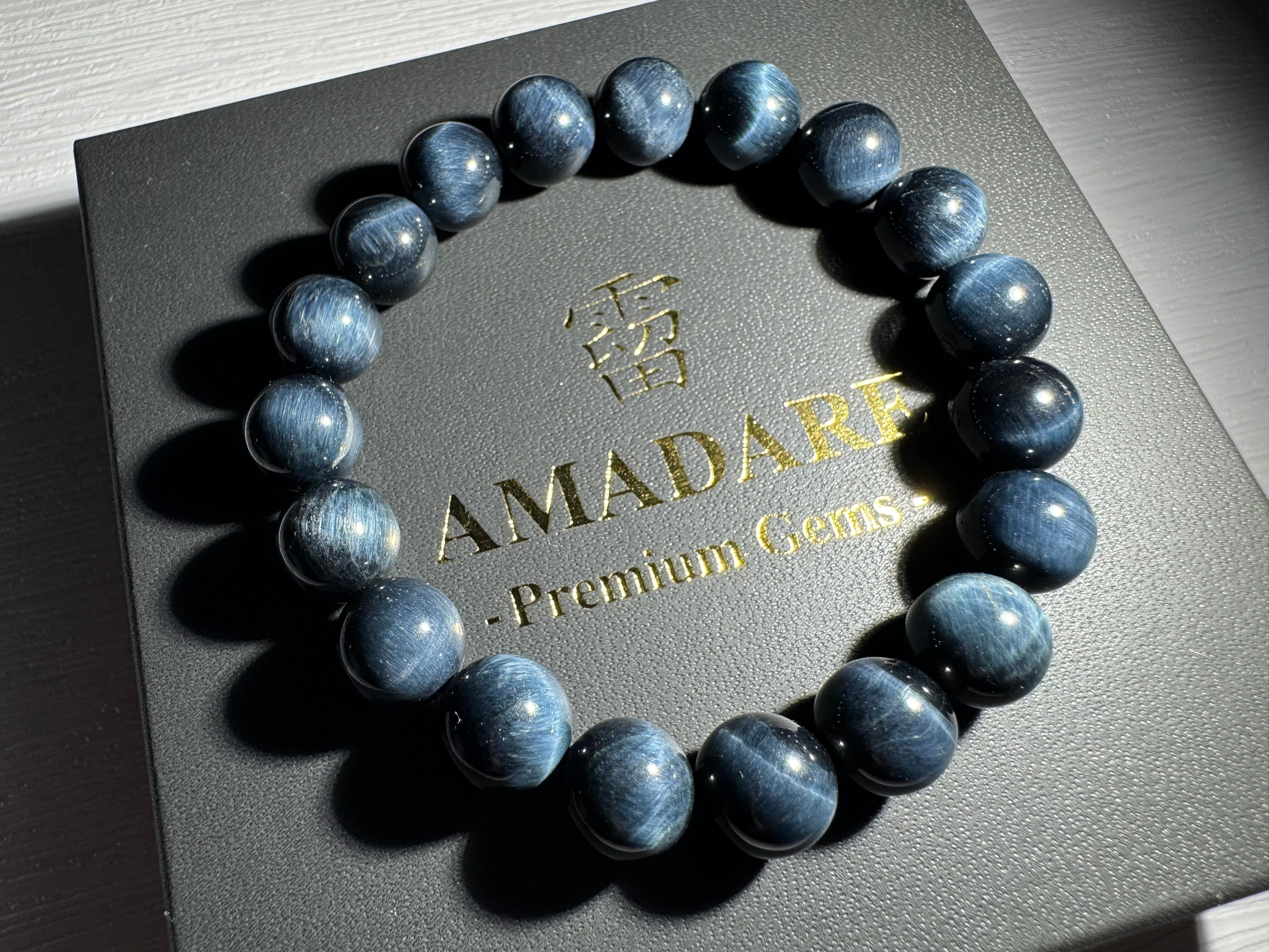 色味、照り、シャープなシャトヤンシーが上品で美しいSグレードのブルータイガーアイブレスレットです。