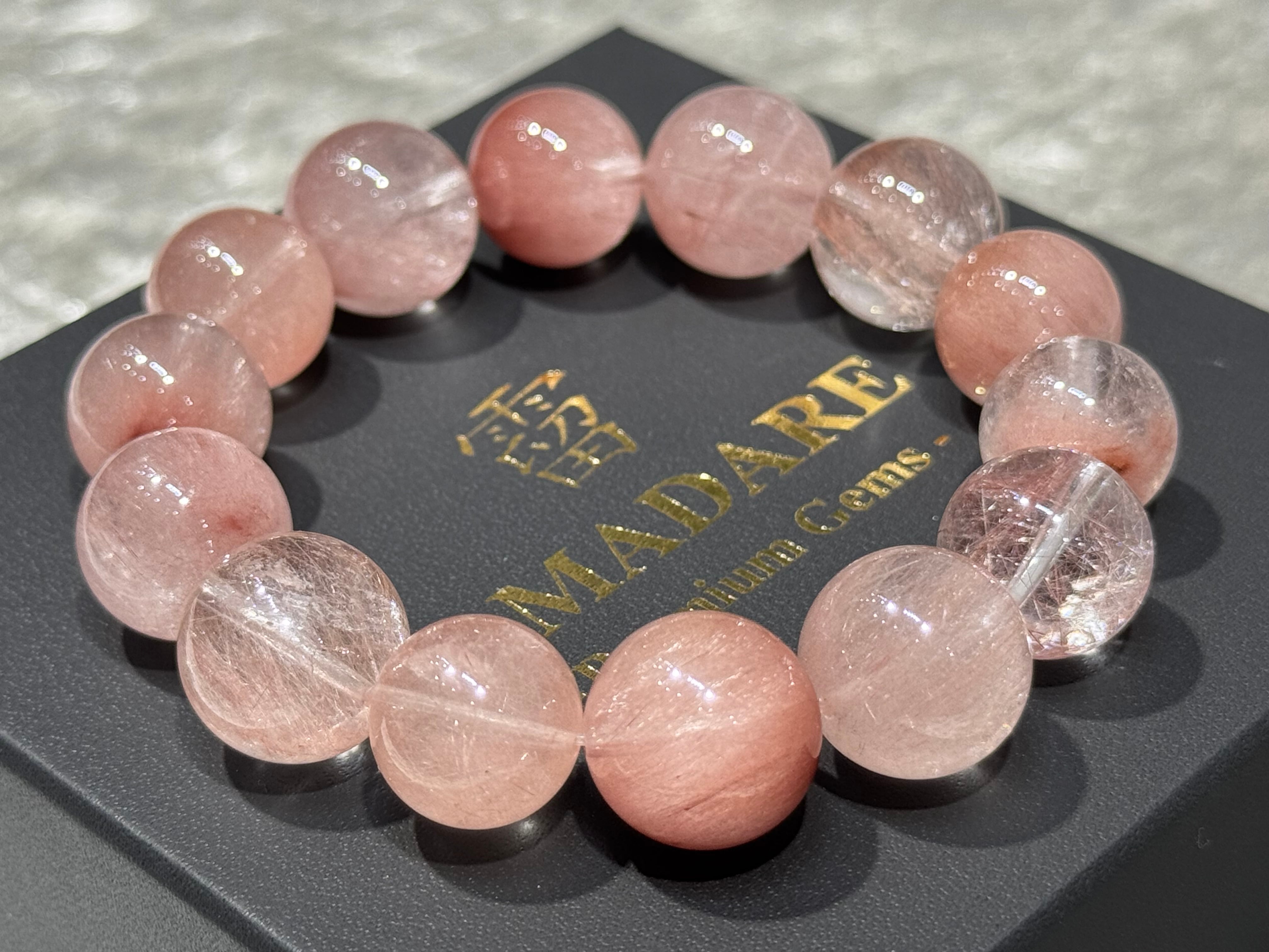 No.1879【SSS】ピンクラビットヘアクォーツブレスレット