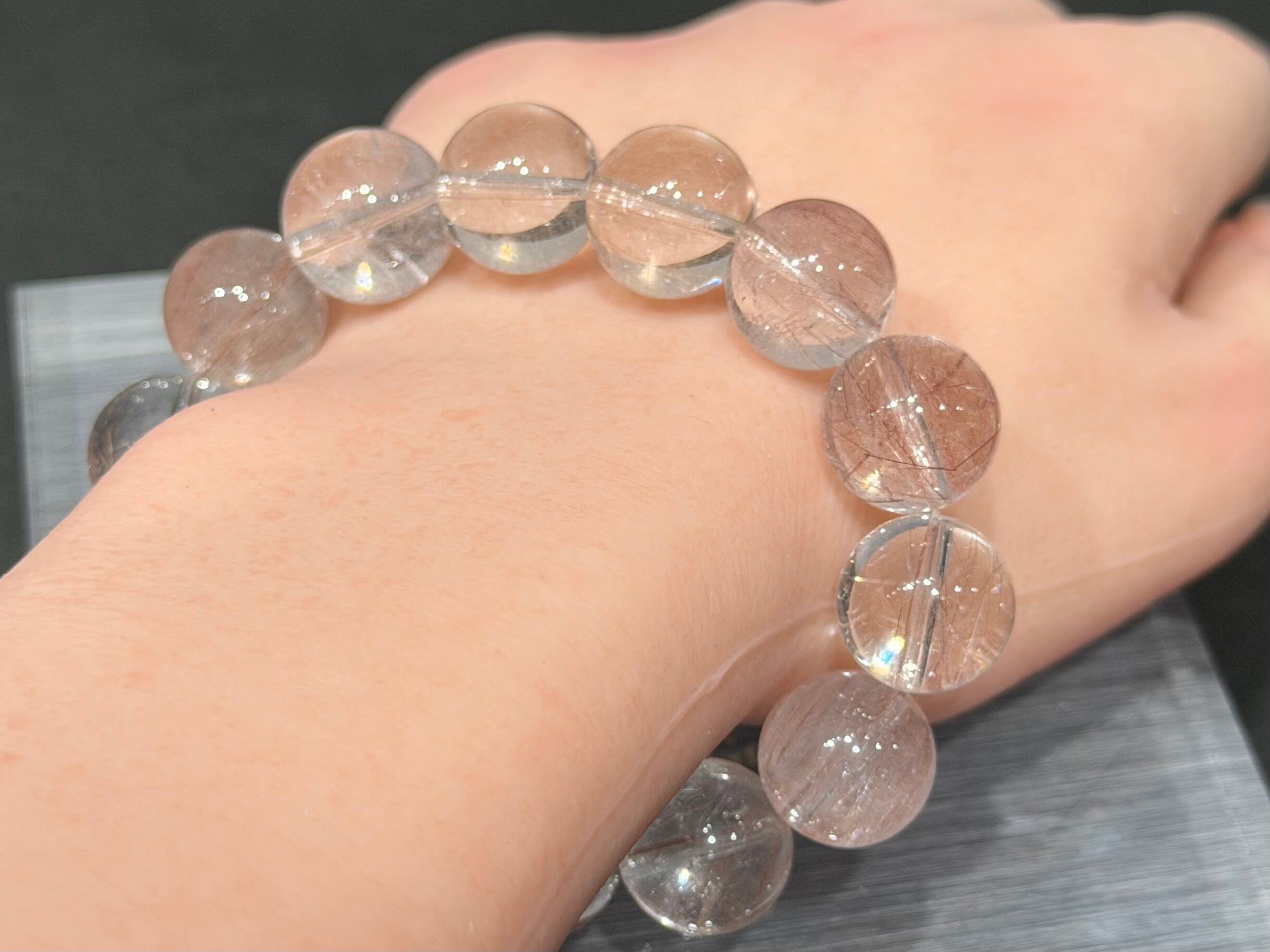 No.1879【SSS】ピンクラビットヘアクォーツブレスレット