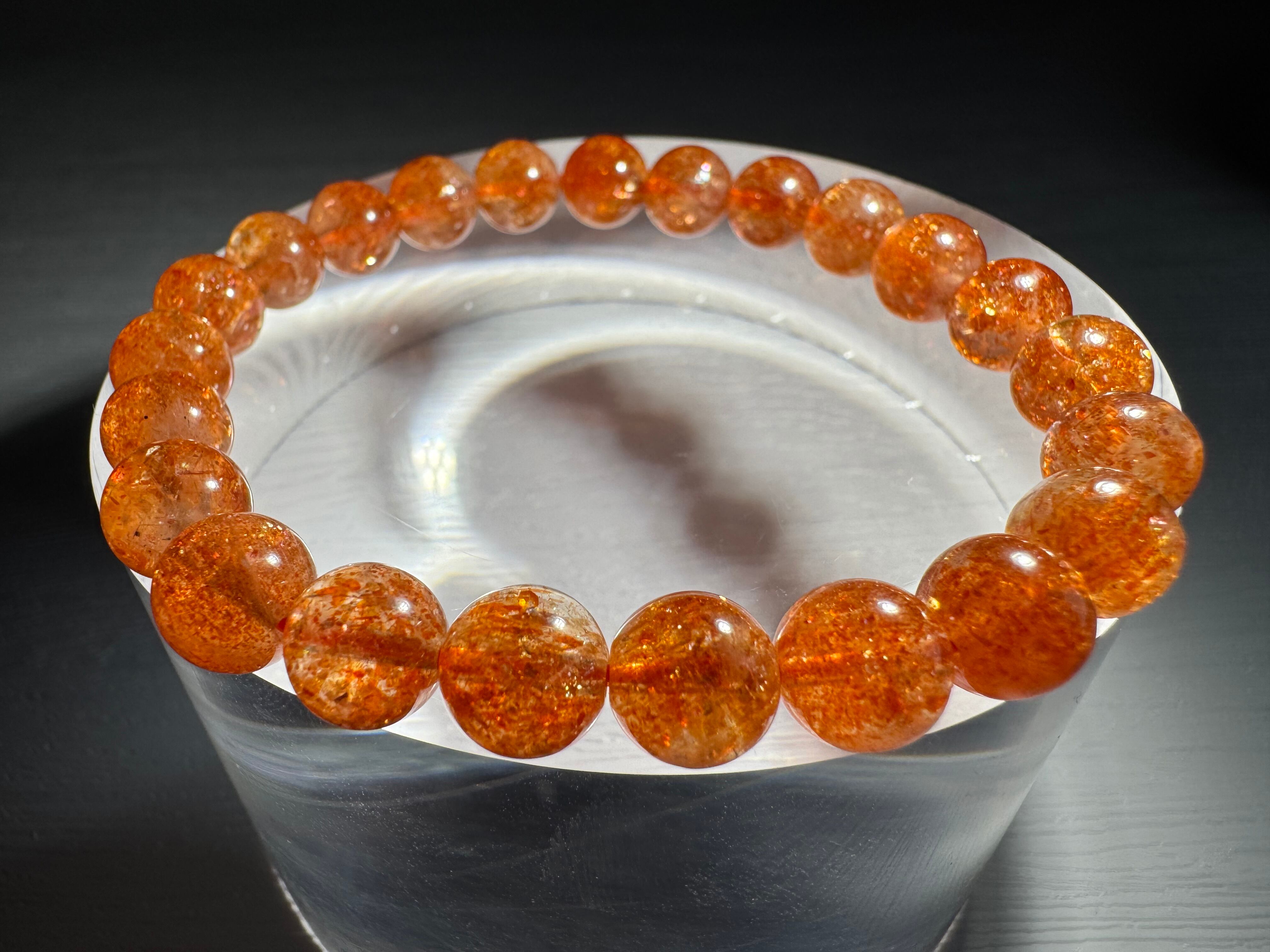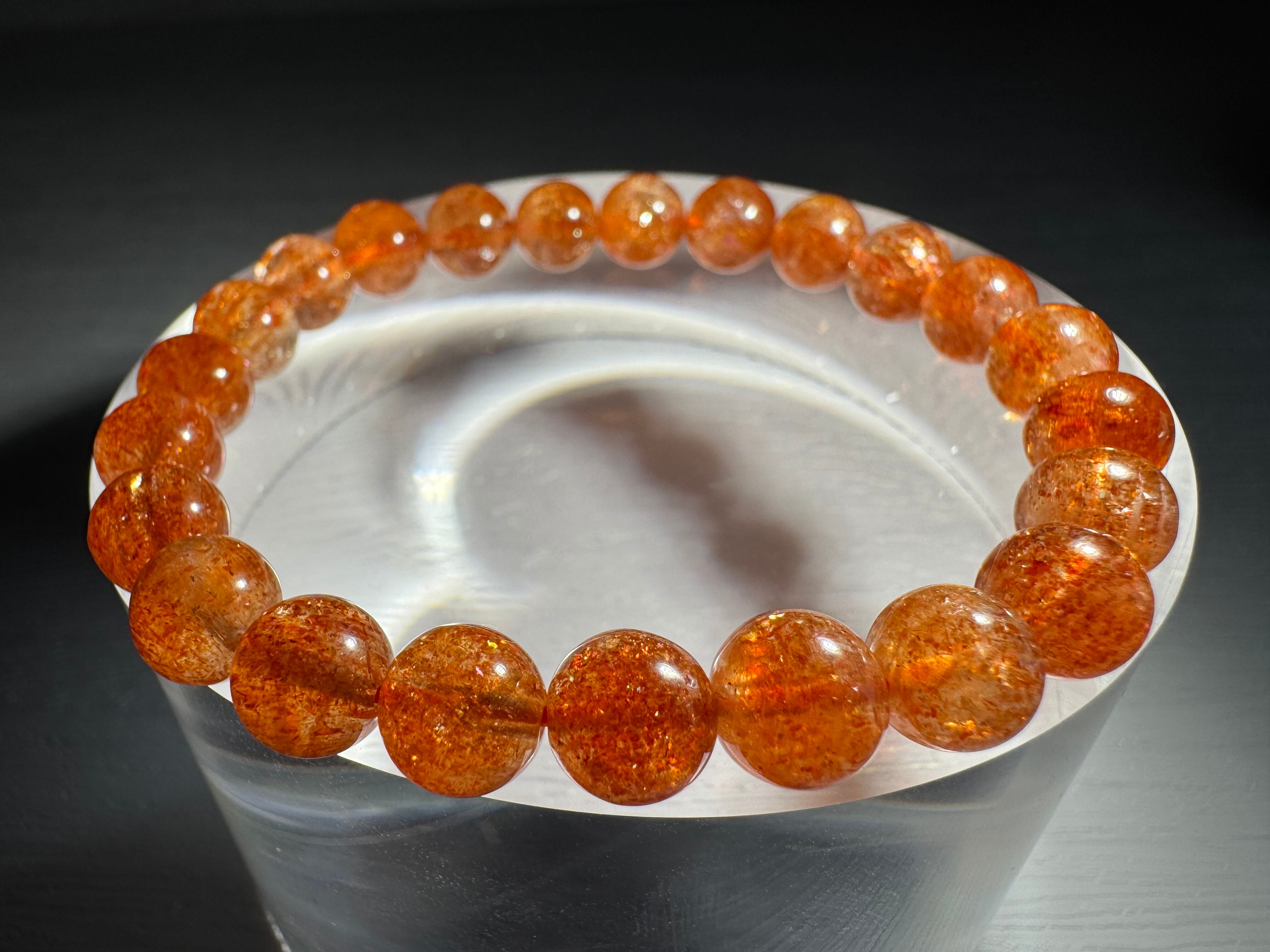 サンストーンは品質のバラツキが大きく、不透明なものは多く出回っていますが、色が濃くアベンチュレッセンスの輝きが強いものは多くはありません。