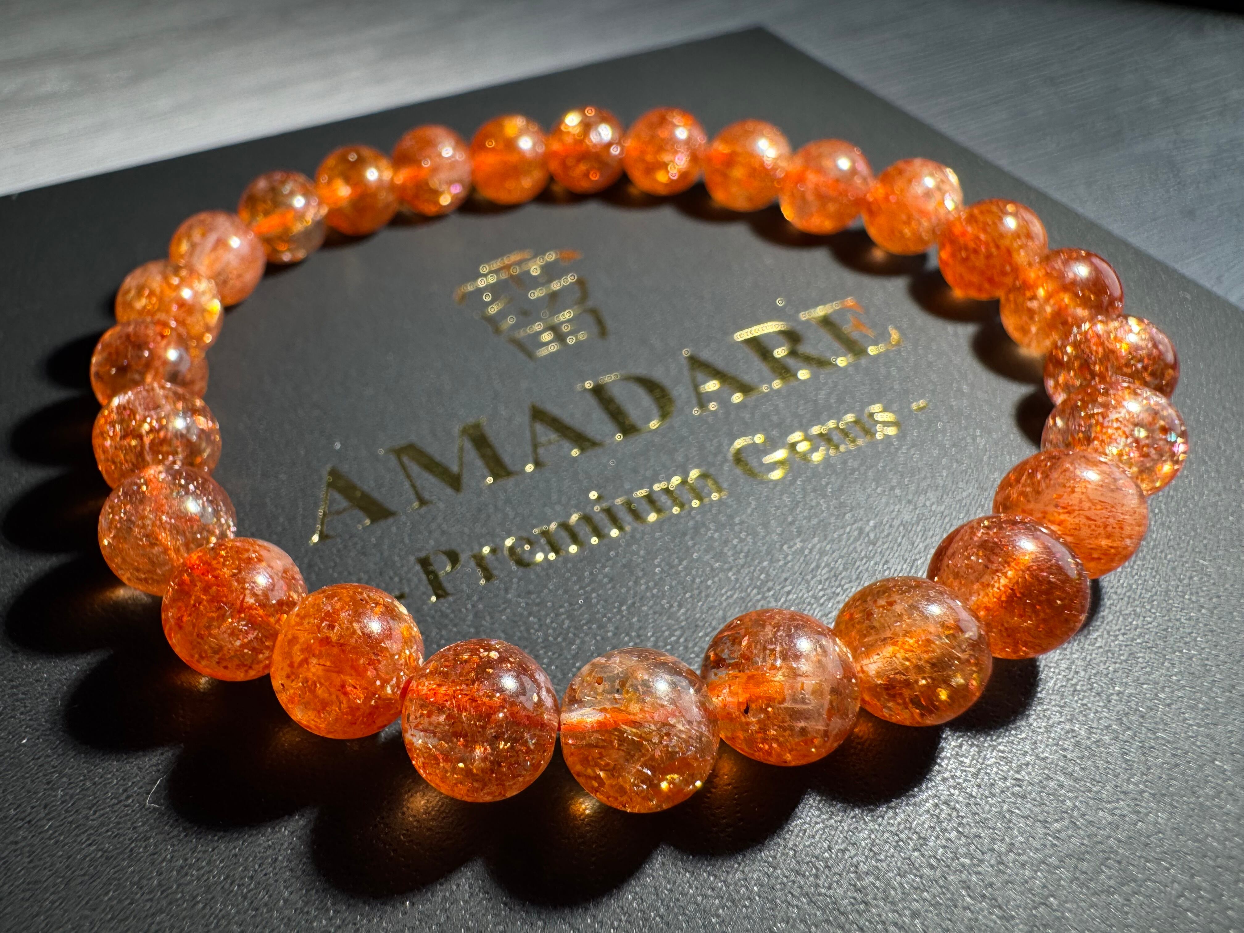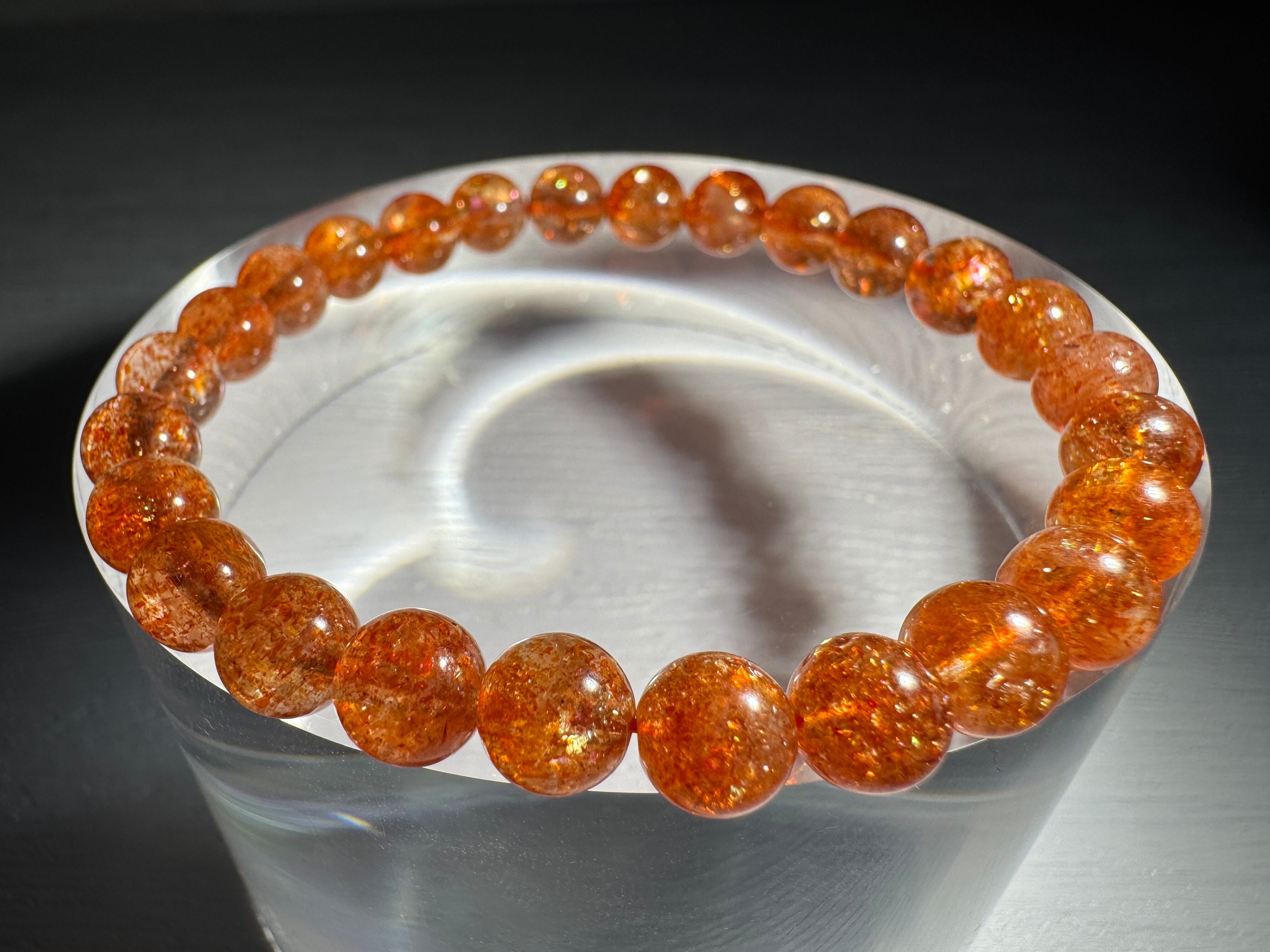 サンストーンは品質のバラツキが大きく、不透明なものは多く出回っていますが、色が濃くアベンチュレッセンスの輝きが強いものは多くはありません。