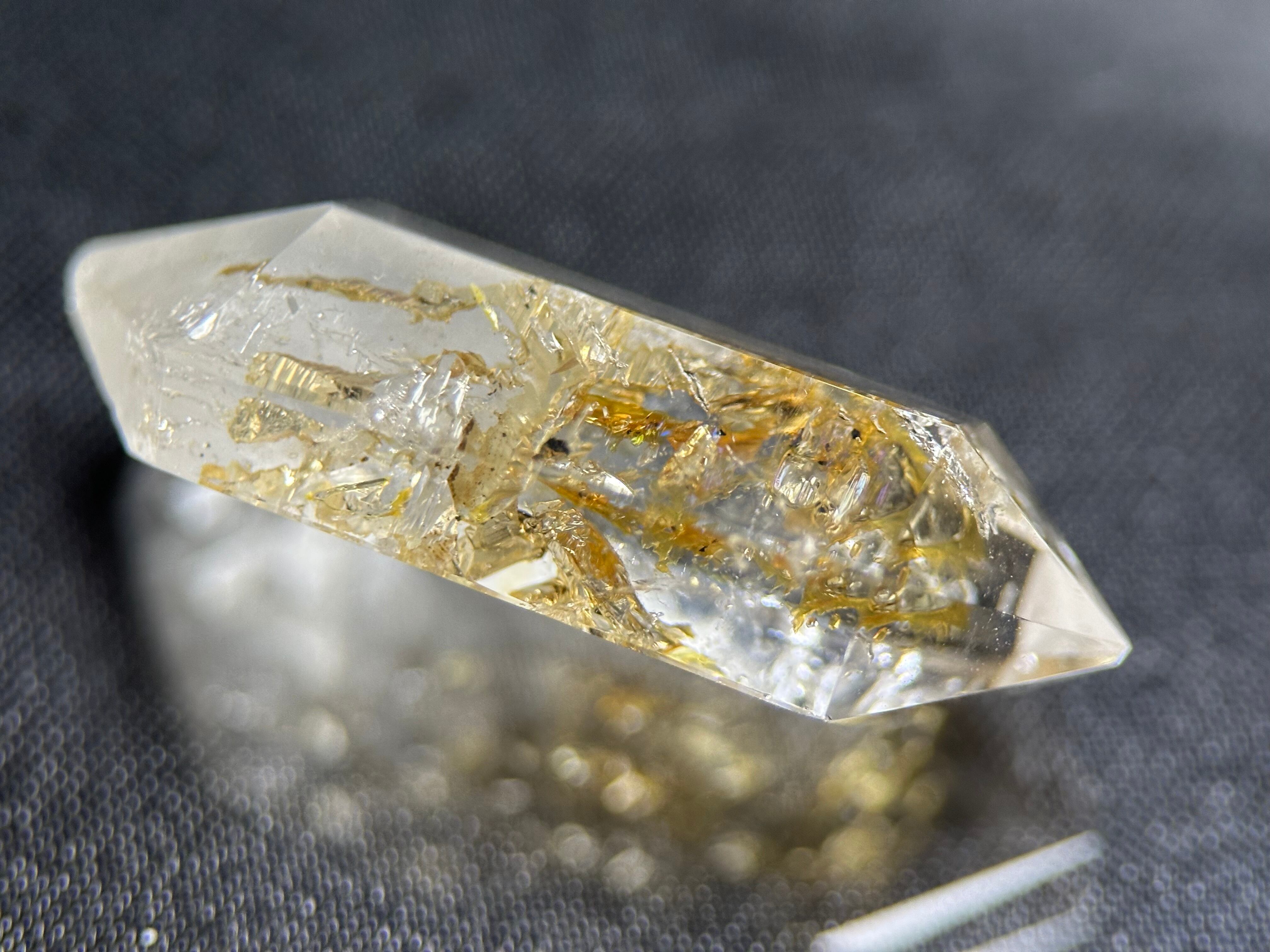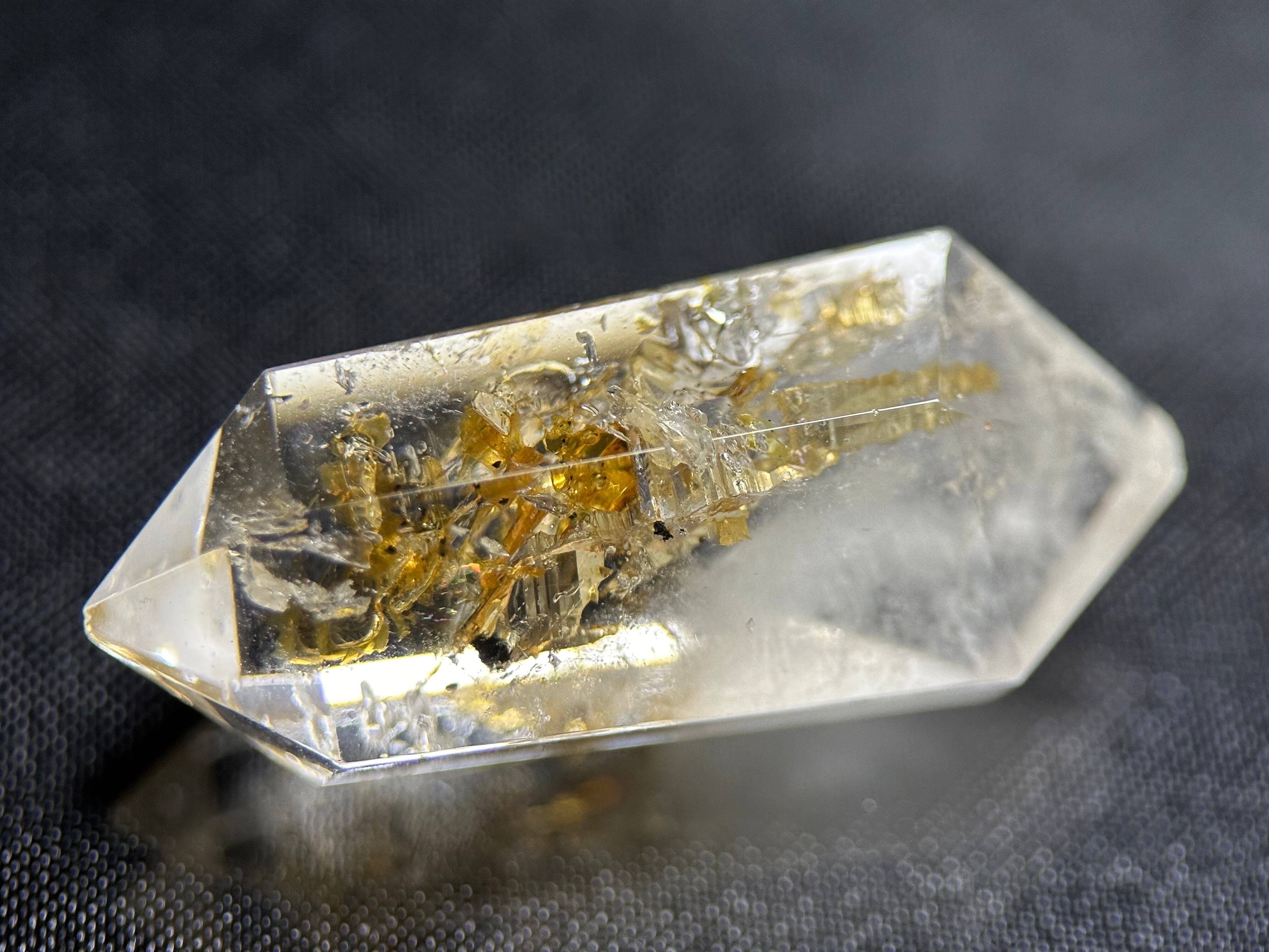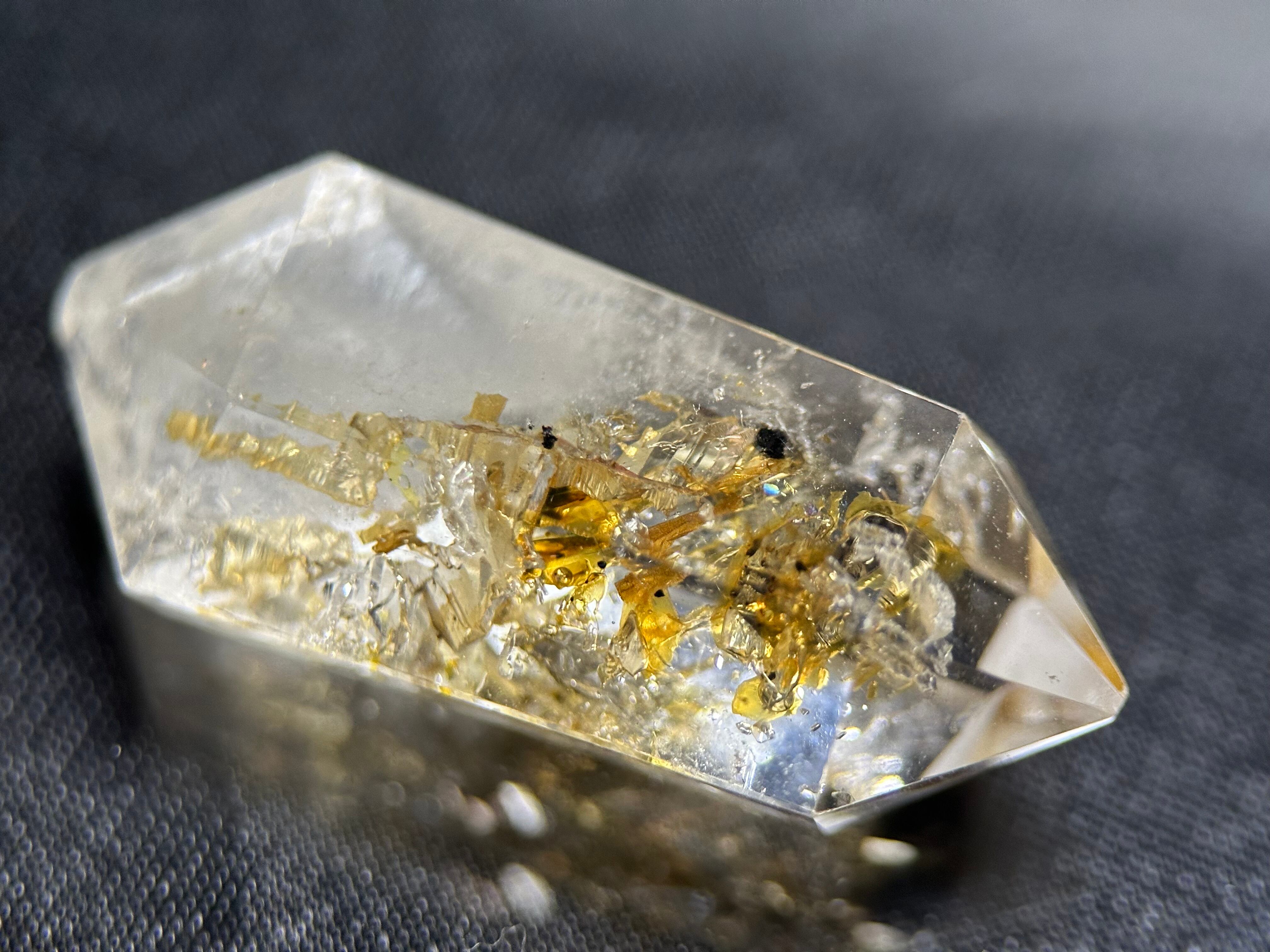 水晶の成長過程で太古からの石油が取り込まれることで金色に輝く…大変神秘的でパワフルな結晶。