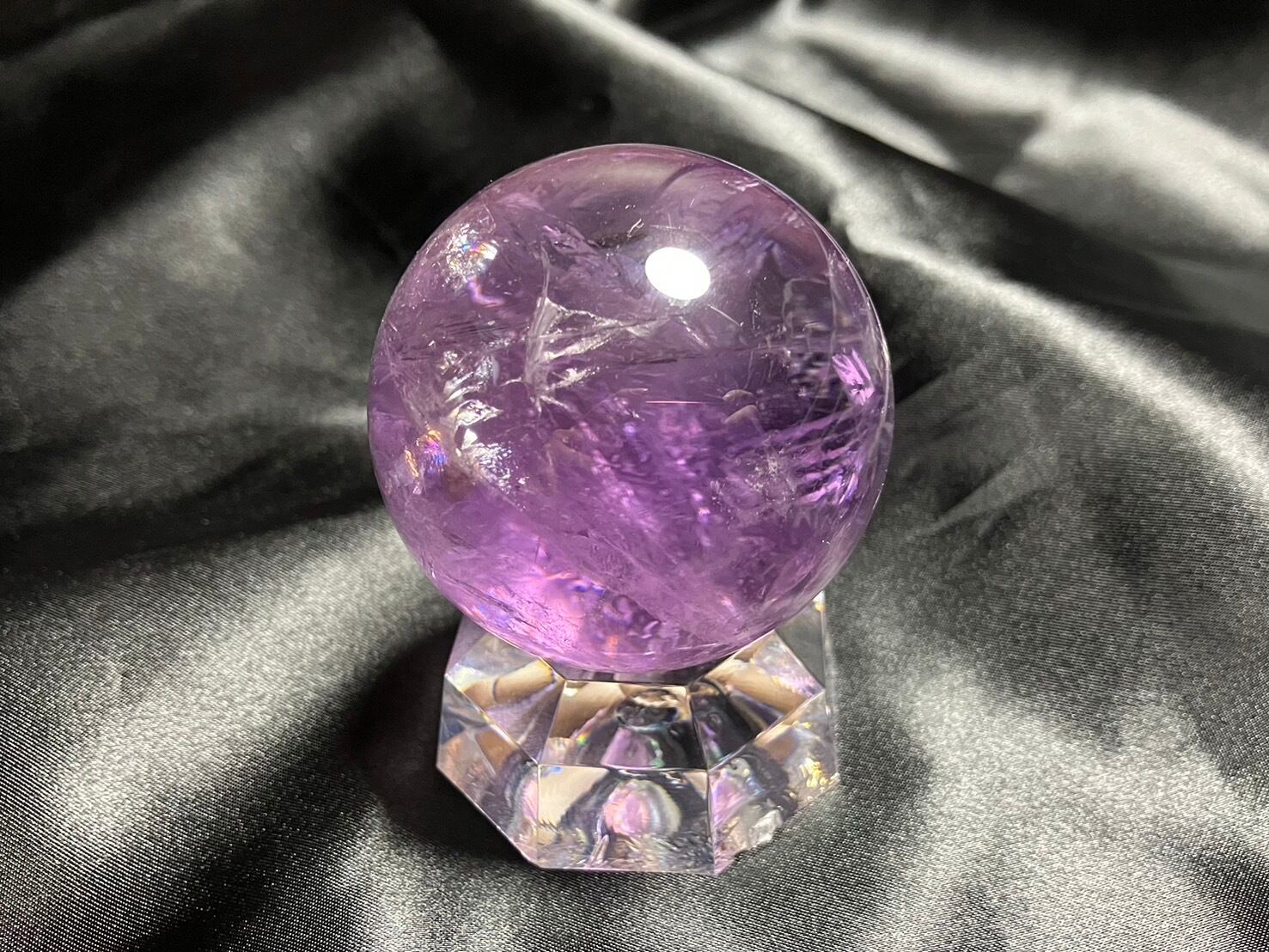 発色が良く透明感が極めて高いブラジル産アメジストスフィアです。