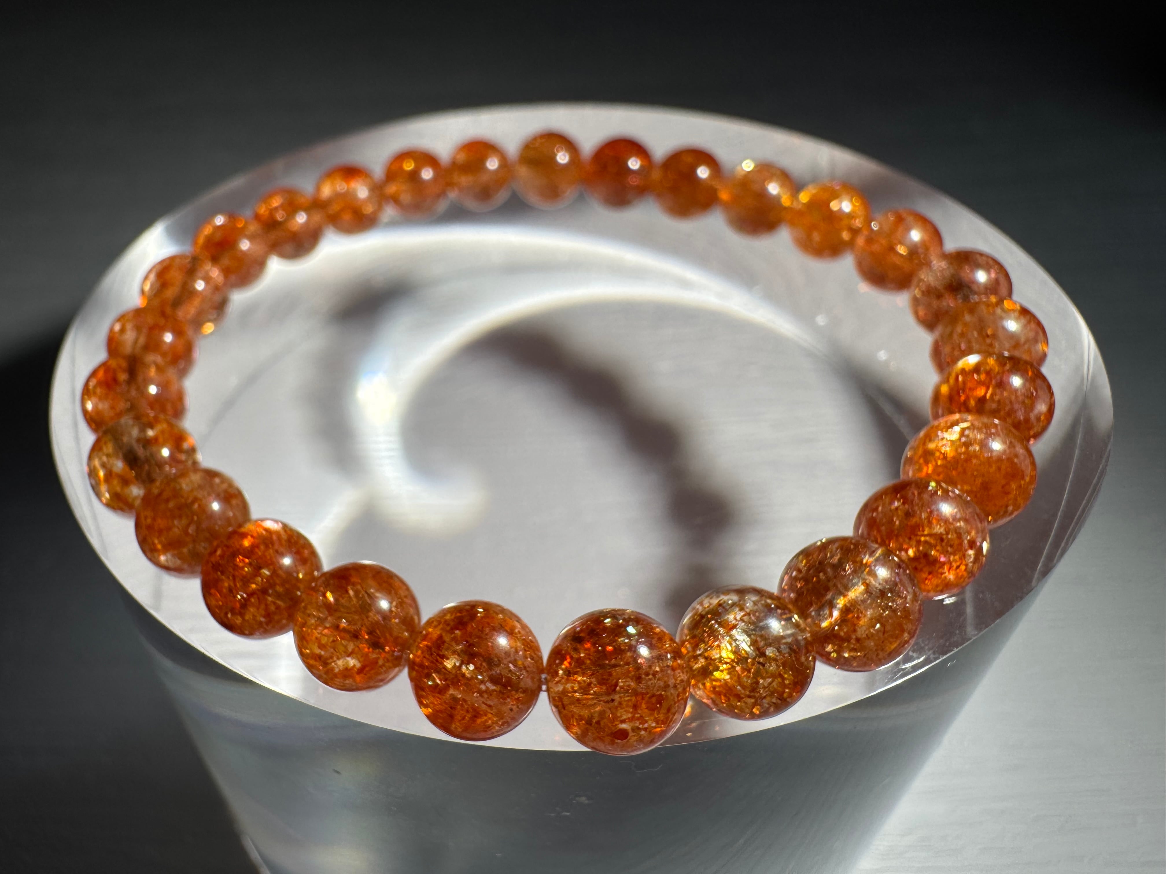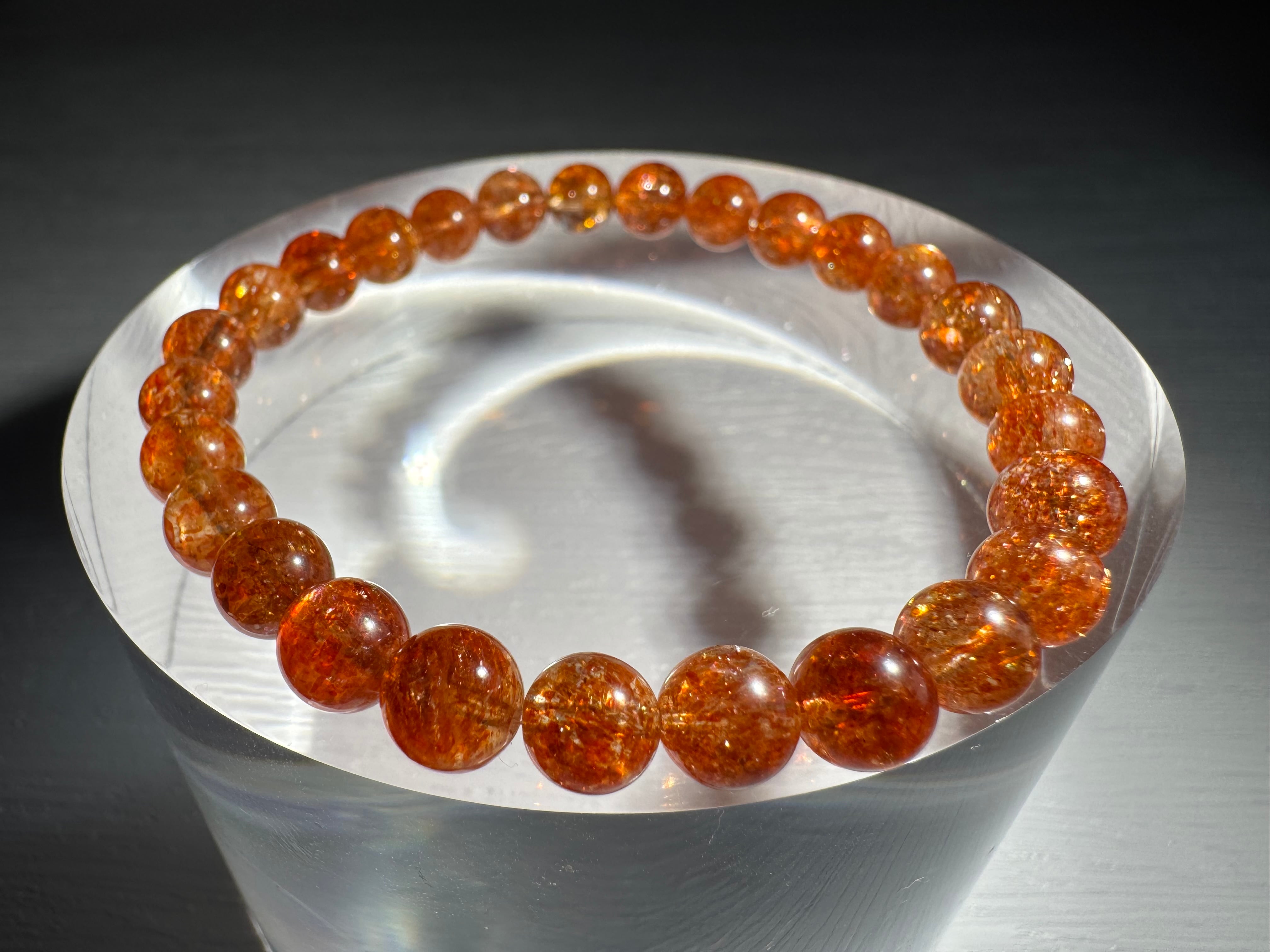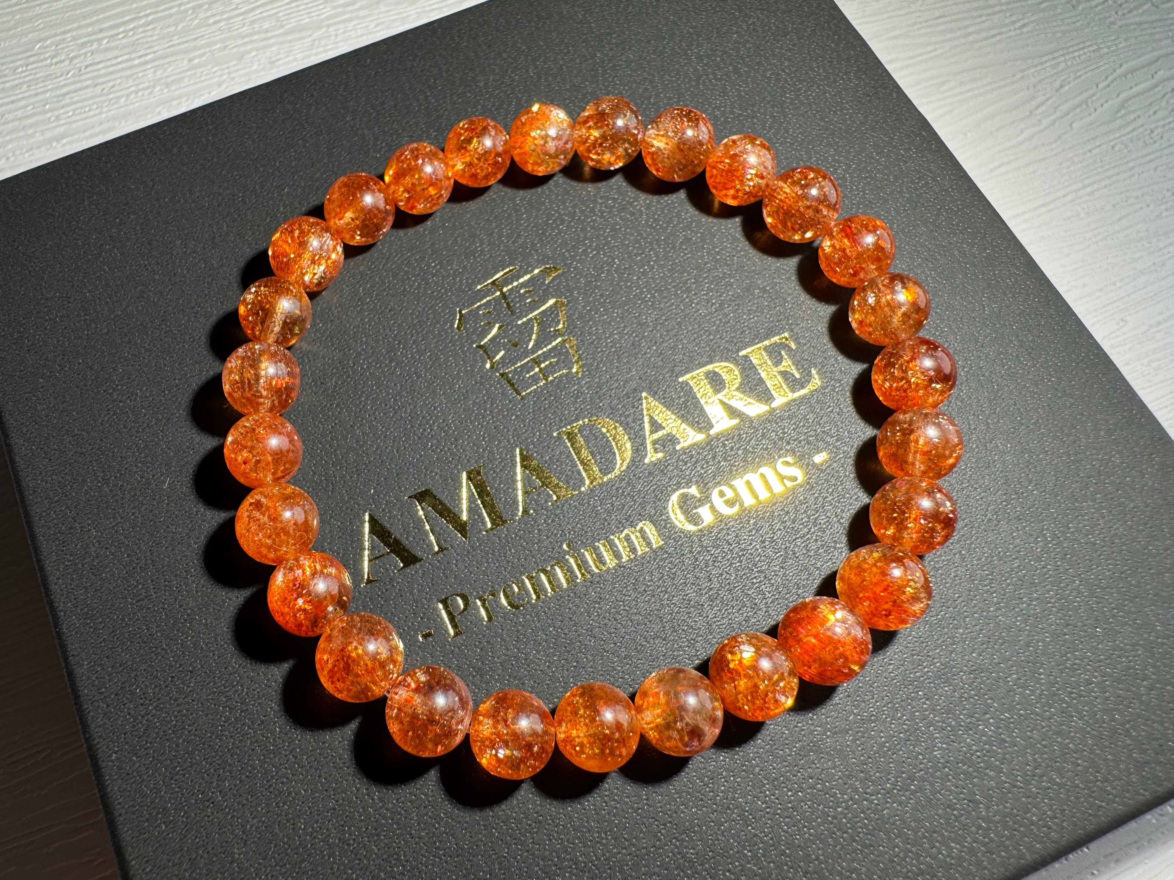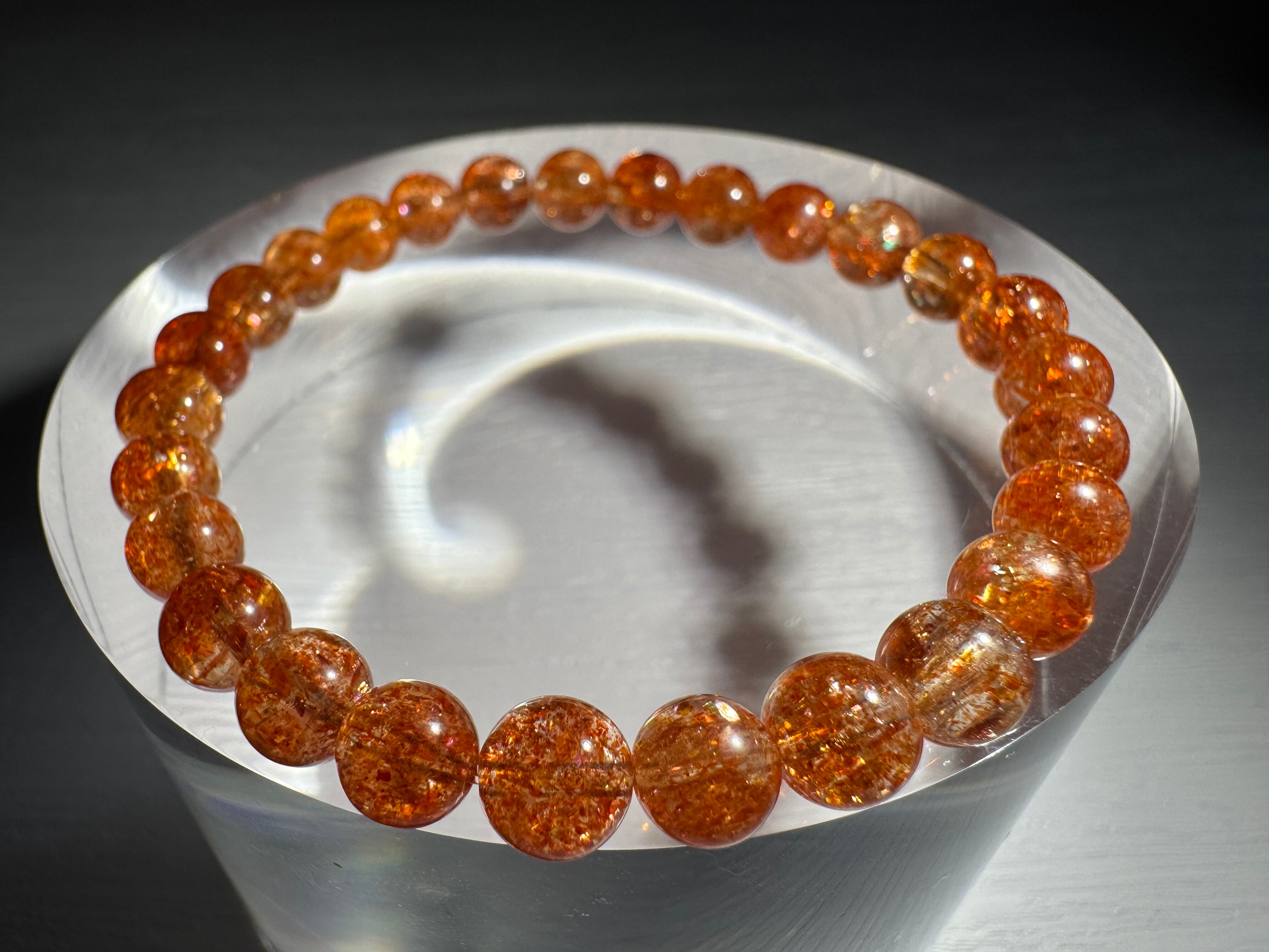 サンストーンは品質のバラツキが大きく、不透明なものは多く出回っていますが、色が濃くアベンチュレッセンスの輝きが強いものは多くはありません。
