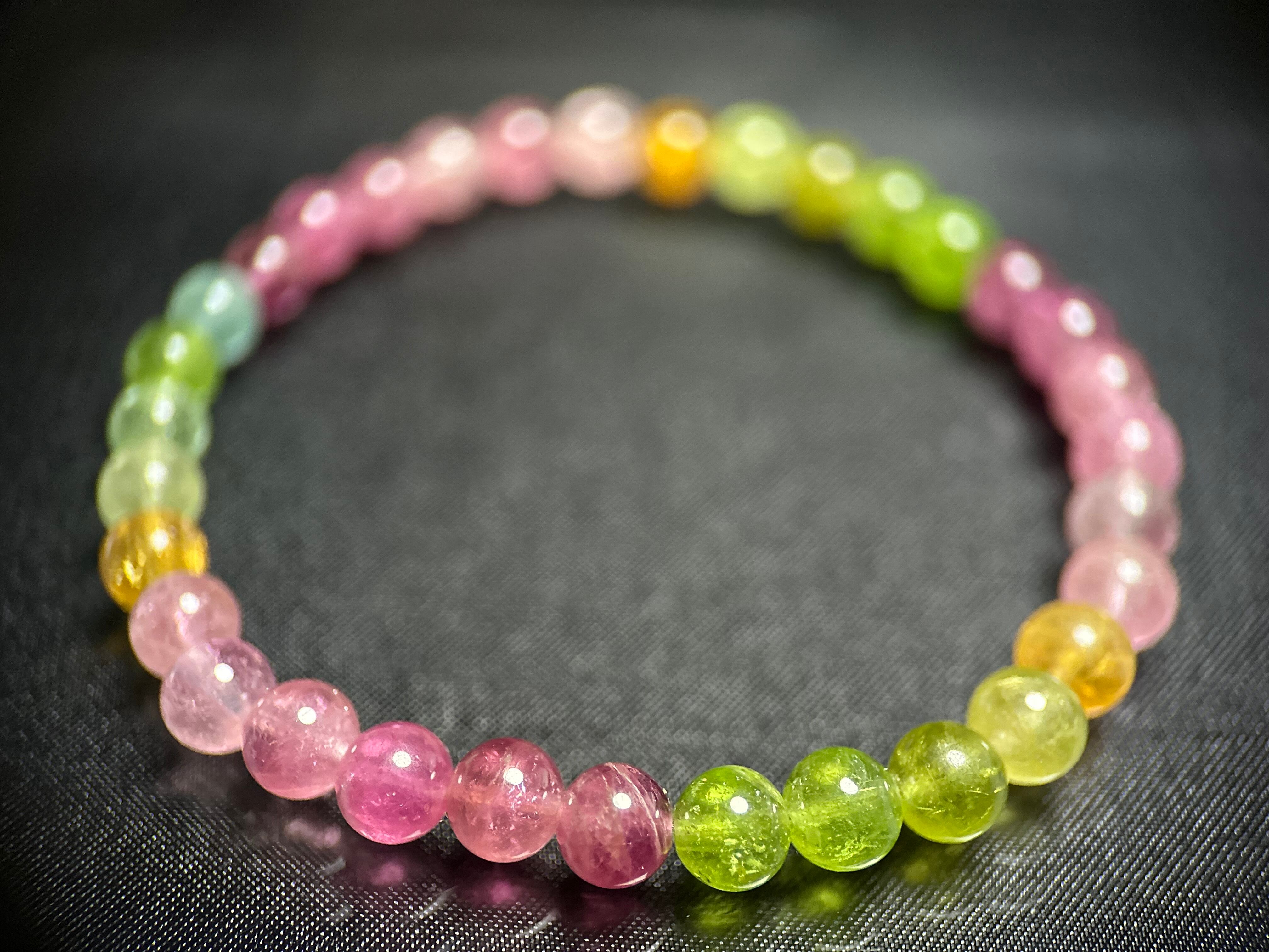 透明感高く濁りの少ない、発色も非常に良い、高品質トルマリンブレスレットです。