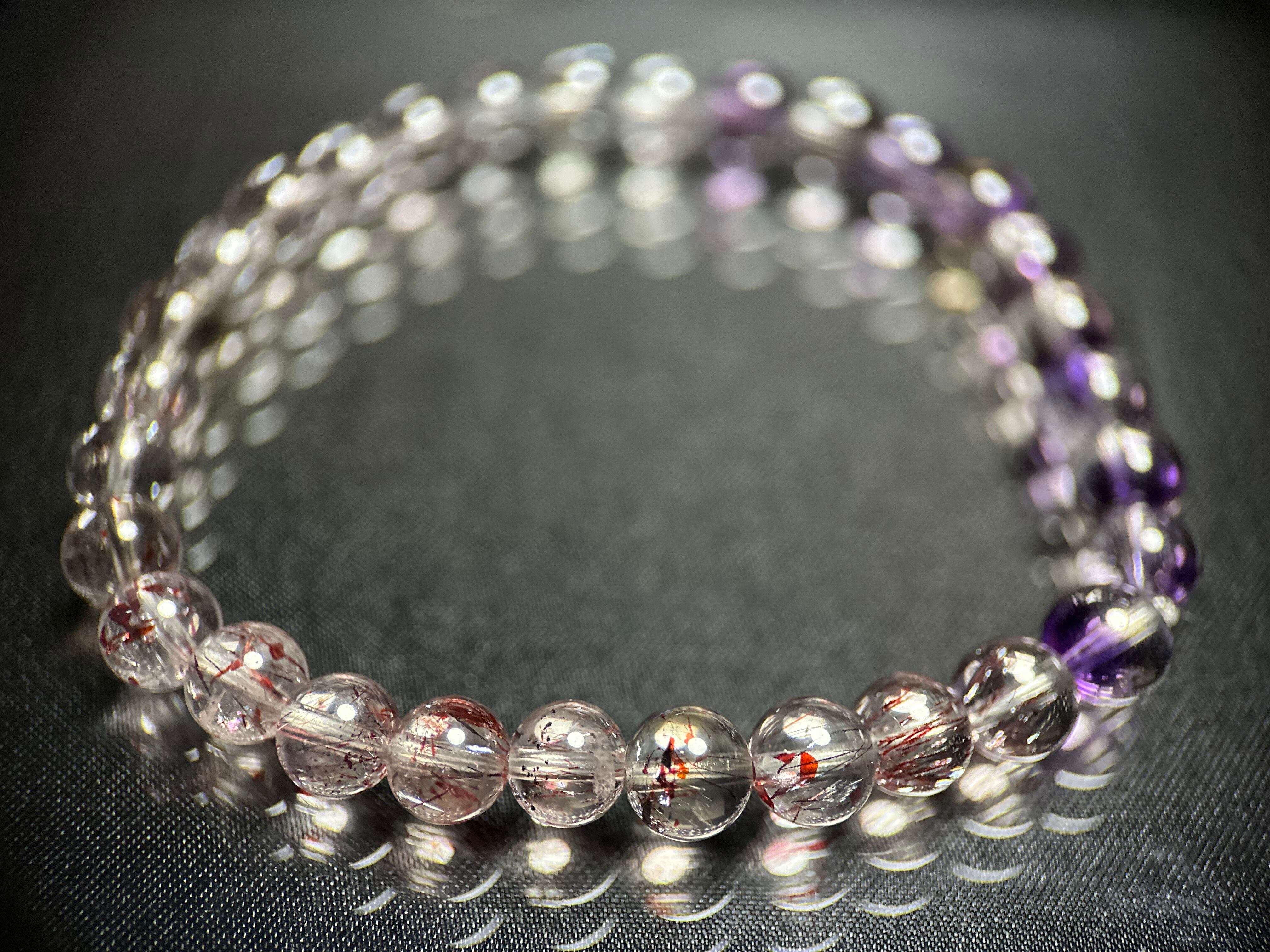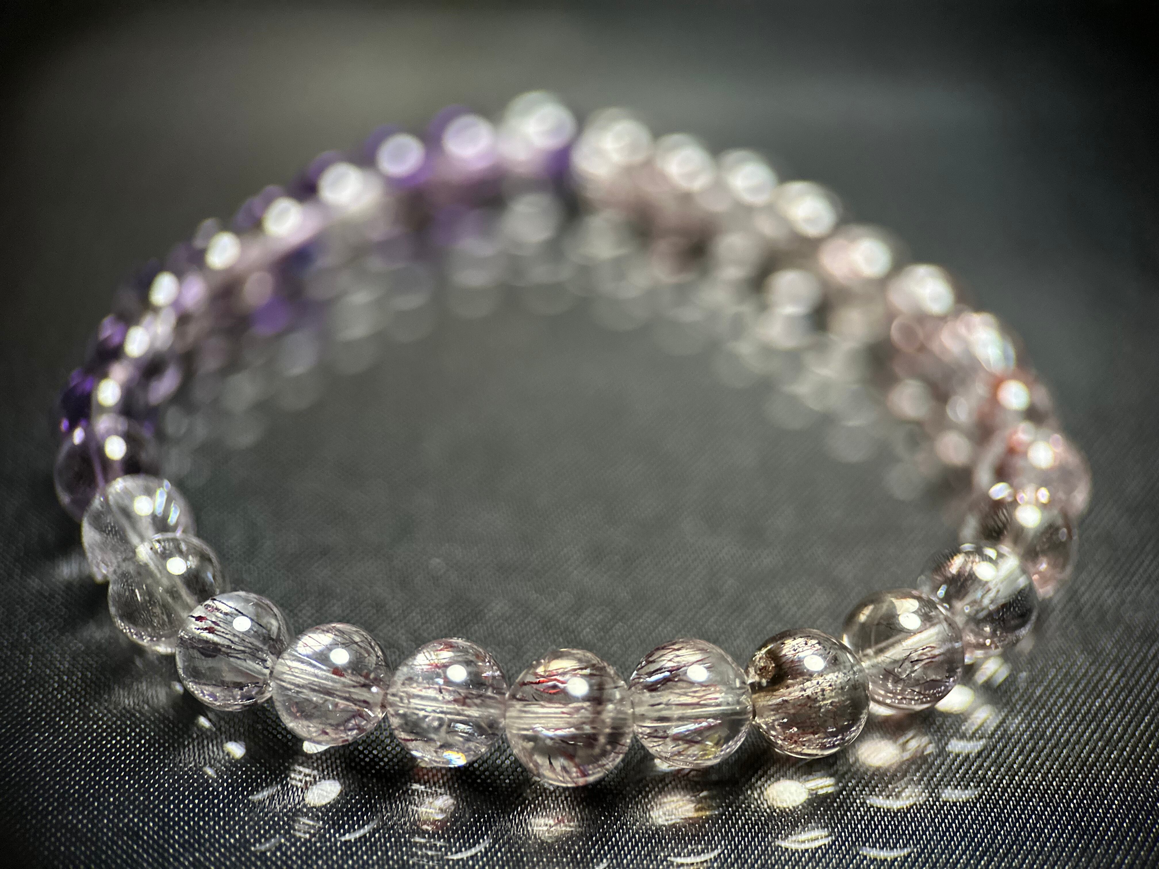 透明感抜群で濁りがほぼ無い、内包も極めて美しい、Sランクスーパーセブンの小粒ブレスレットです。