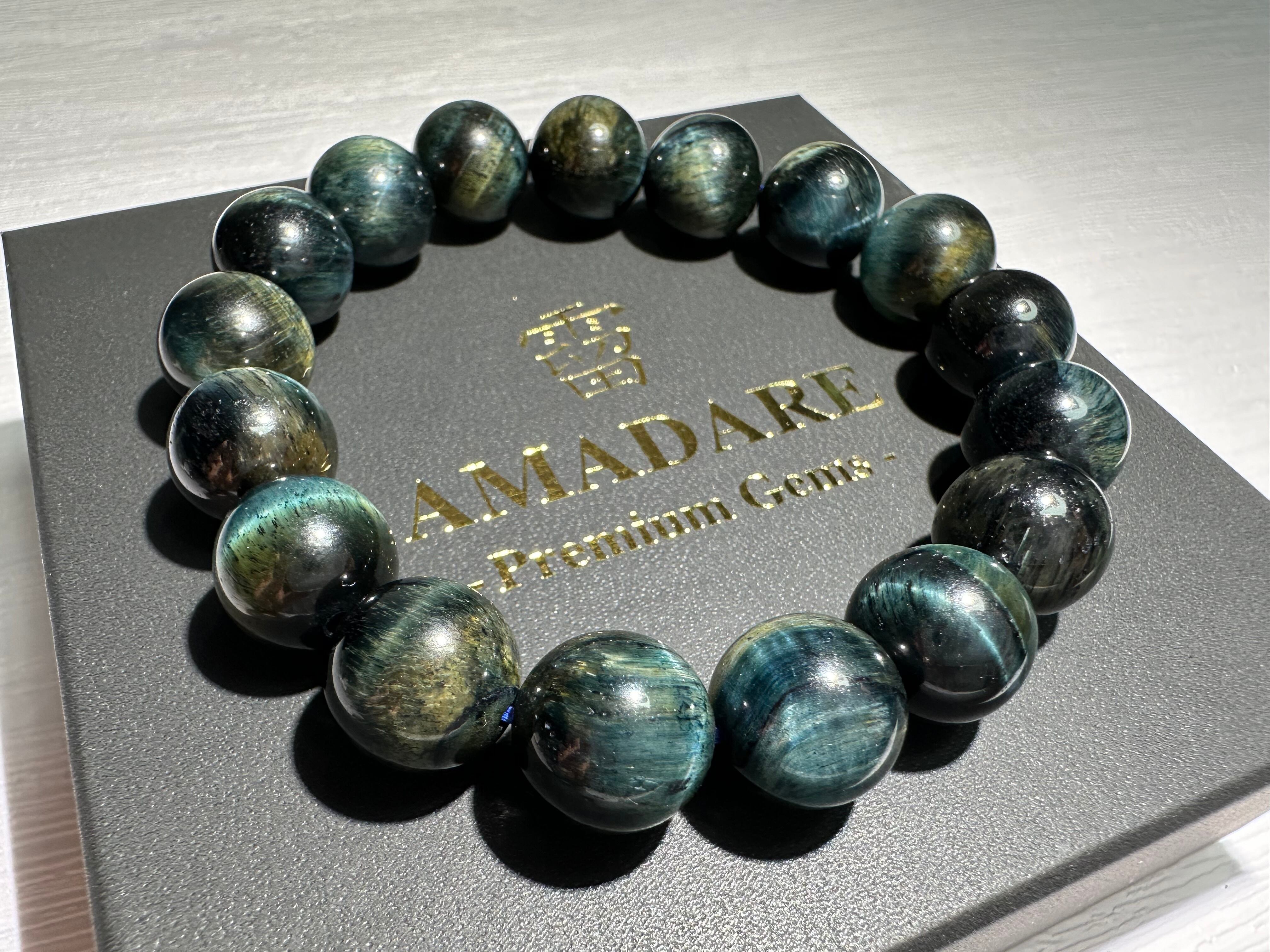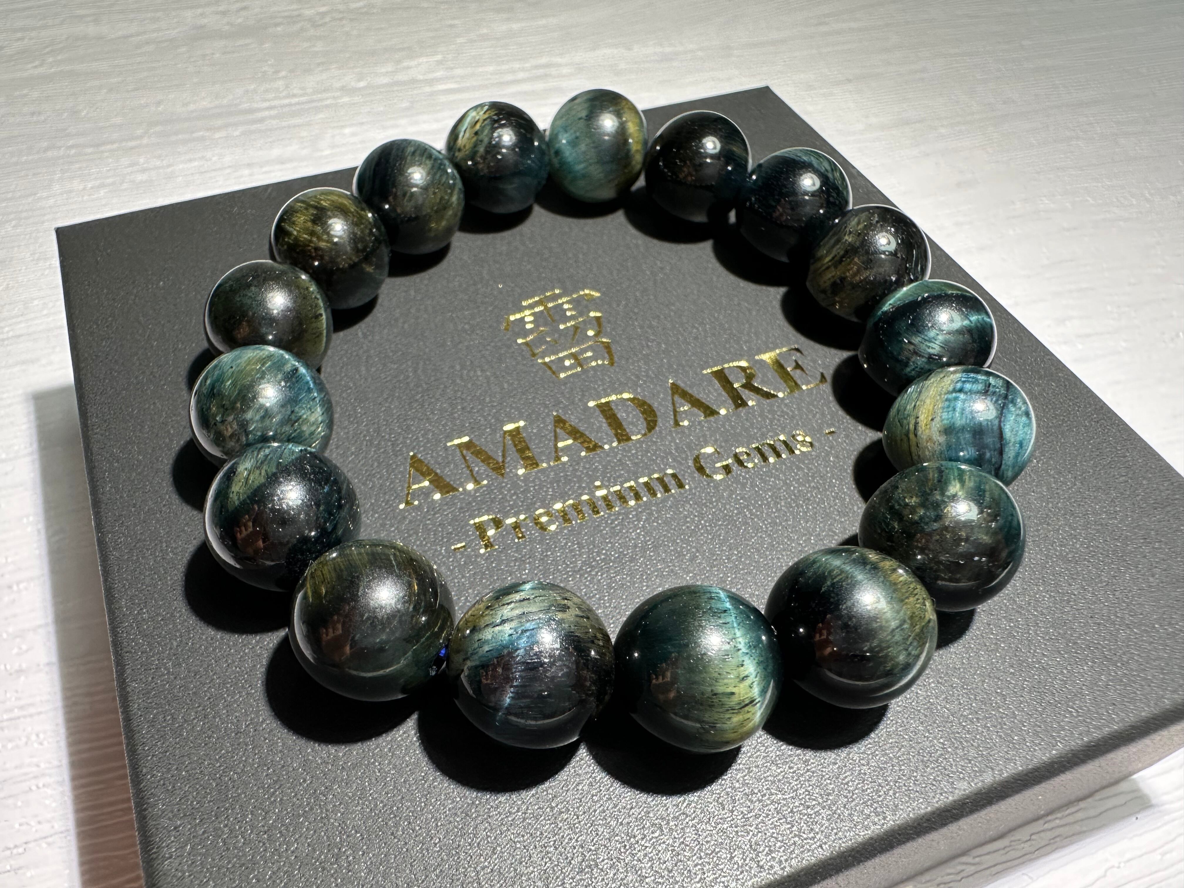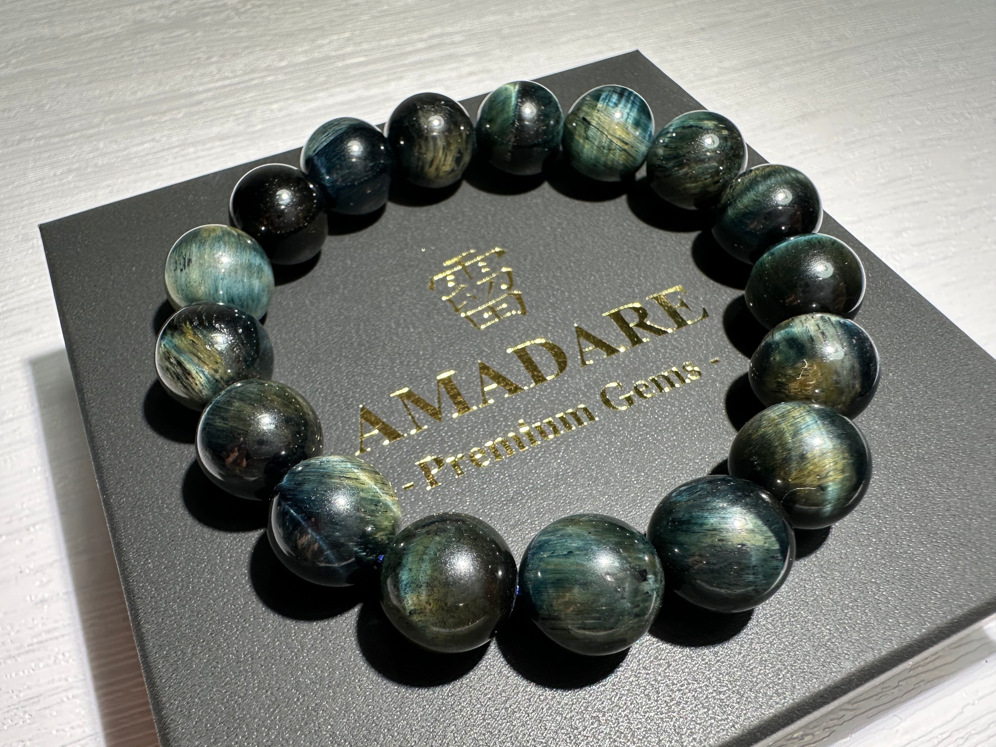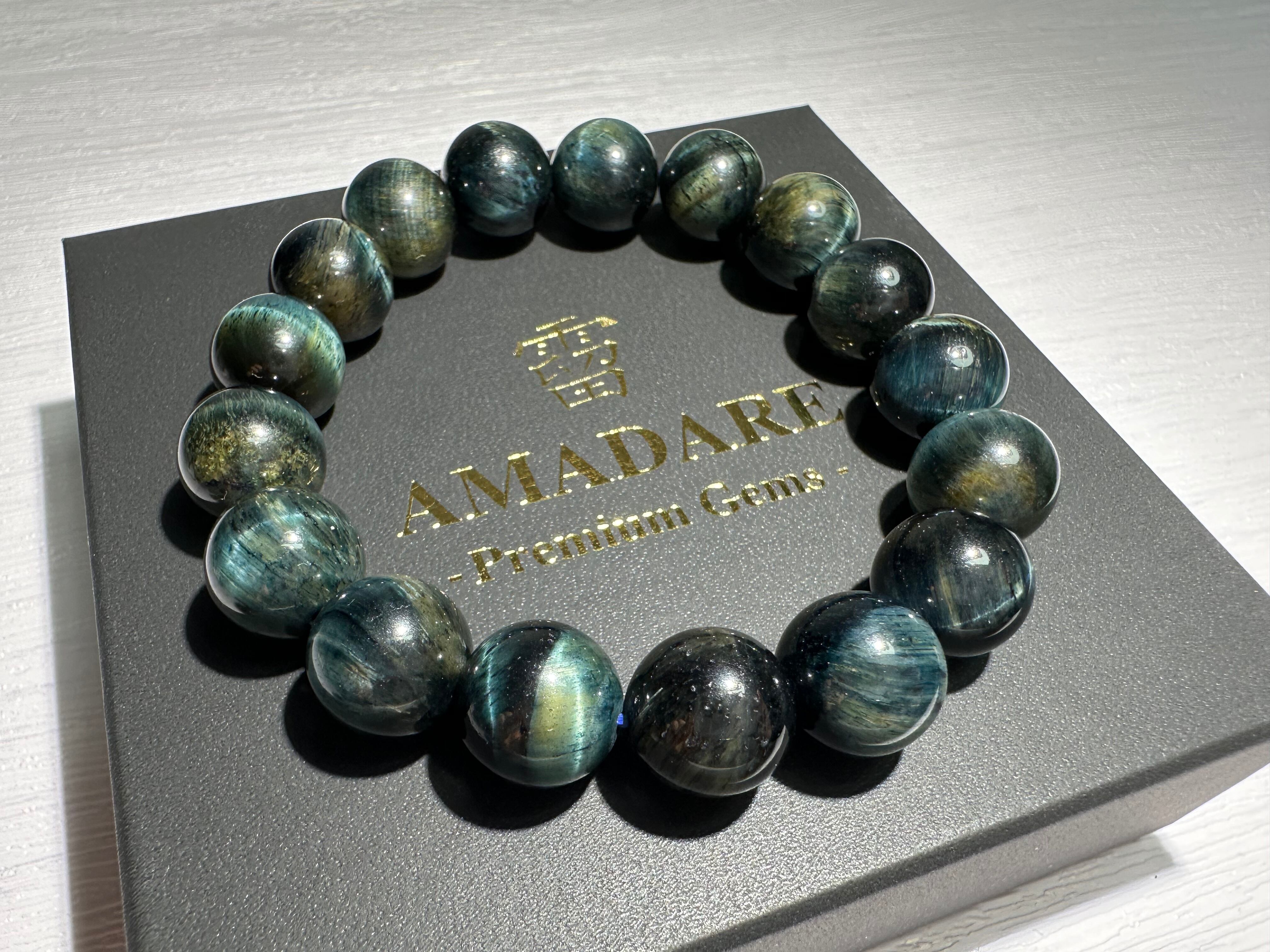 珍しいカラーの、ブルーイエロータイガーアイブレスレットです。