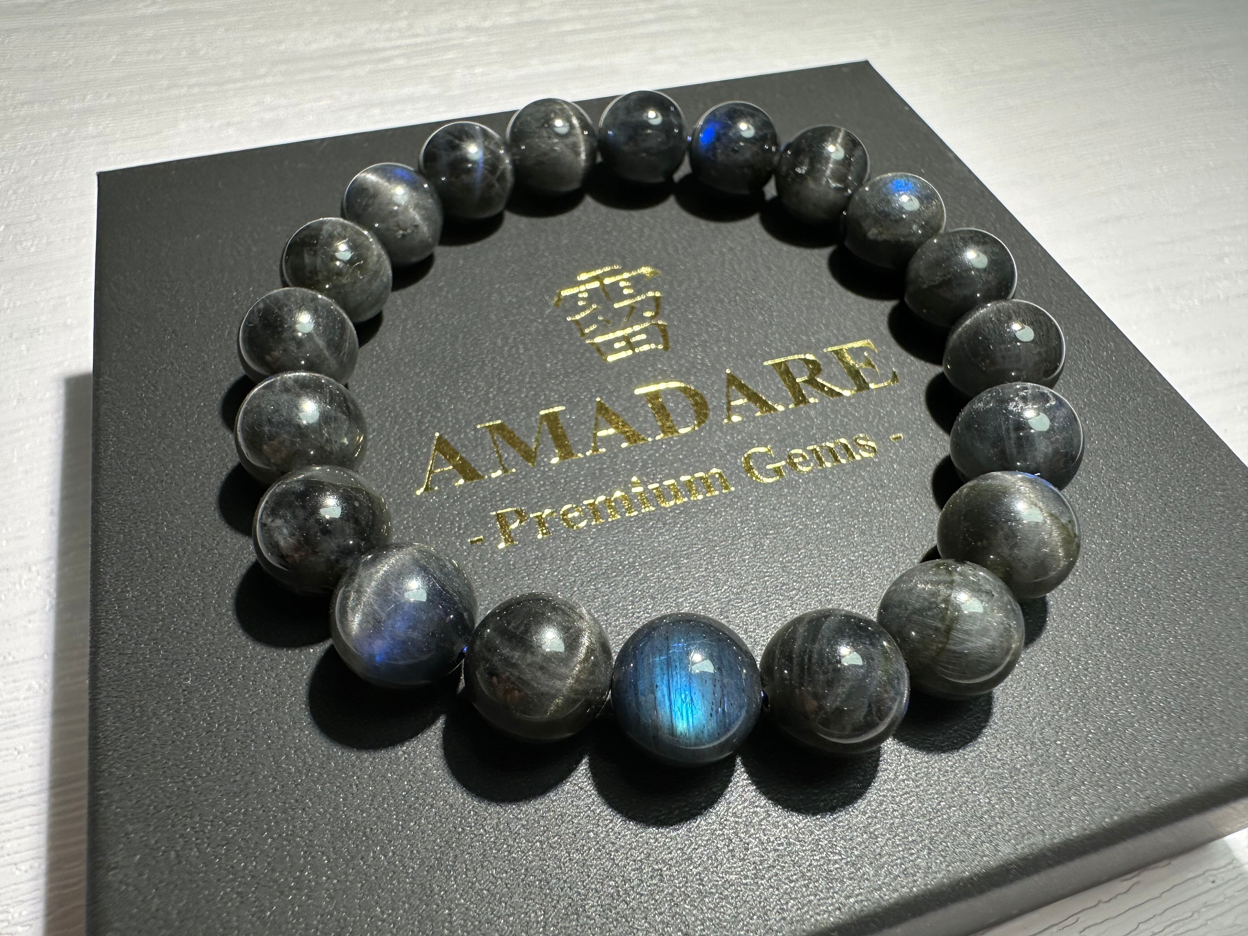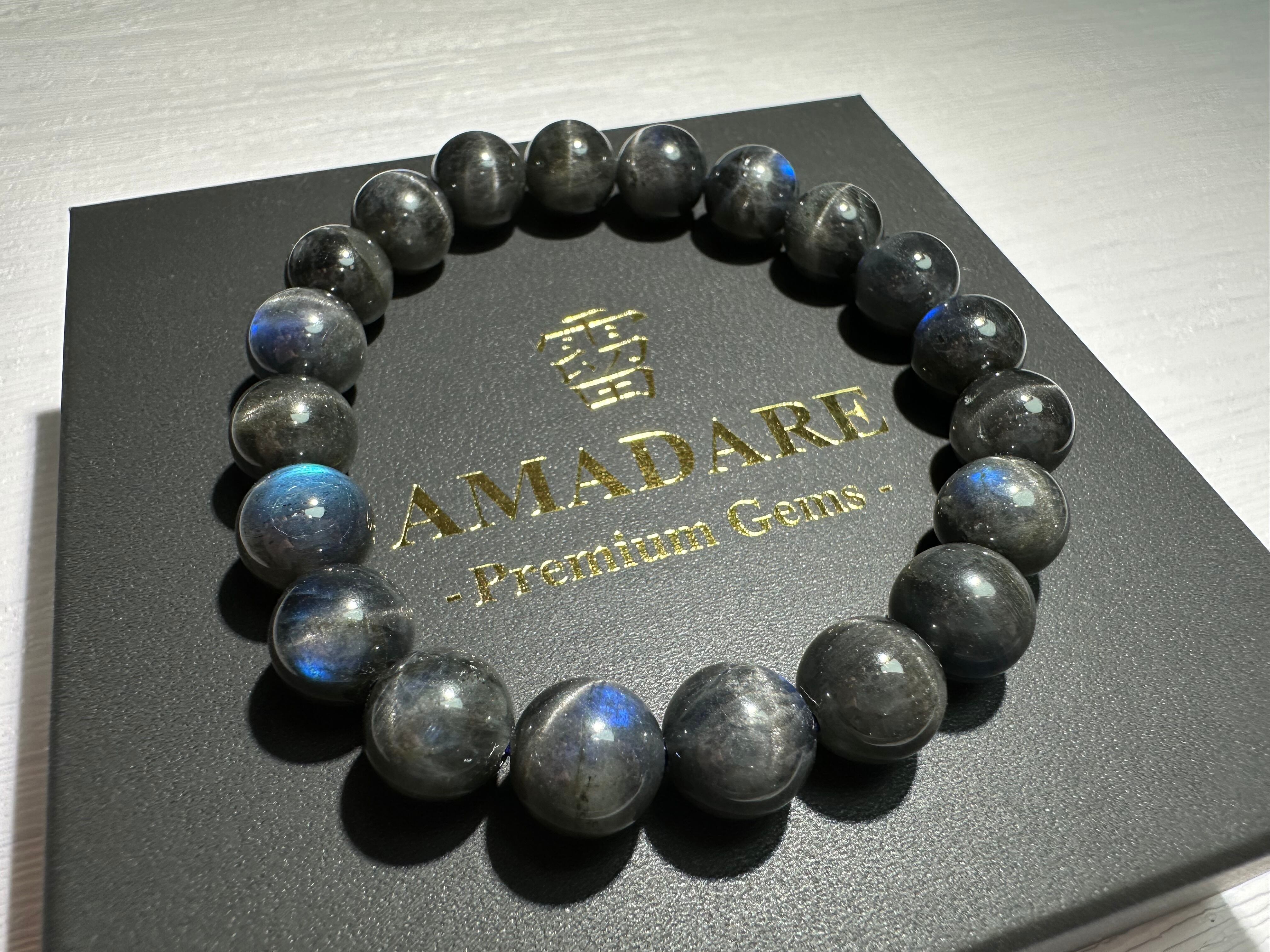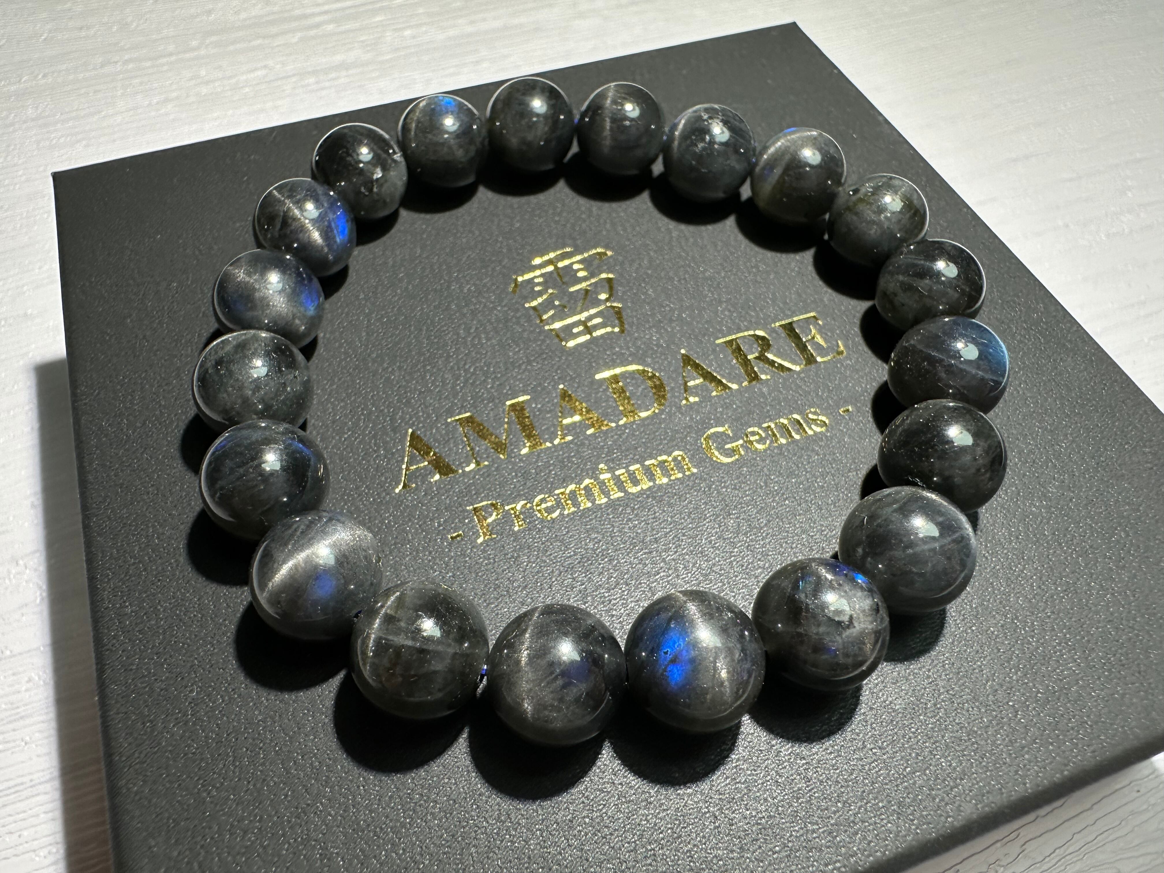 黒ベースの長石に深い青色のシラーが発光するように浮かび上がり、神秘的な美しさがあります。