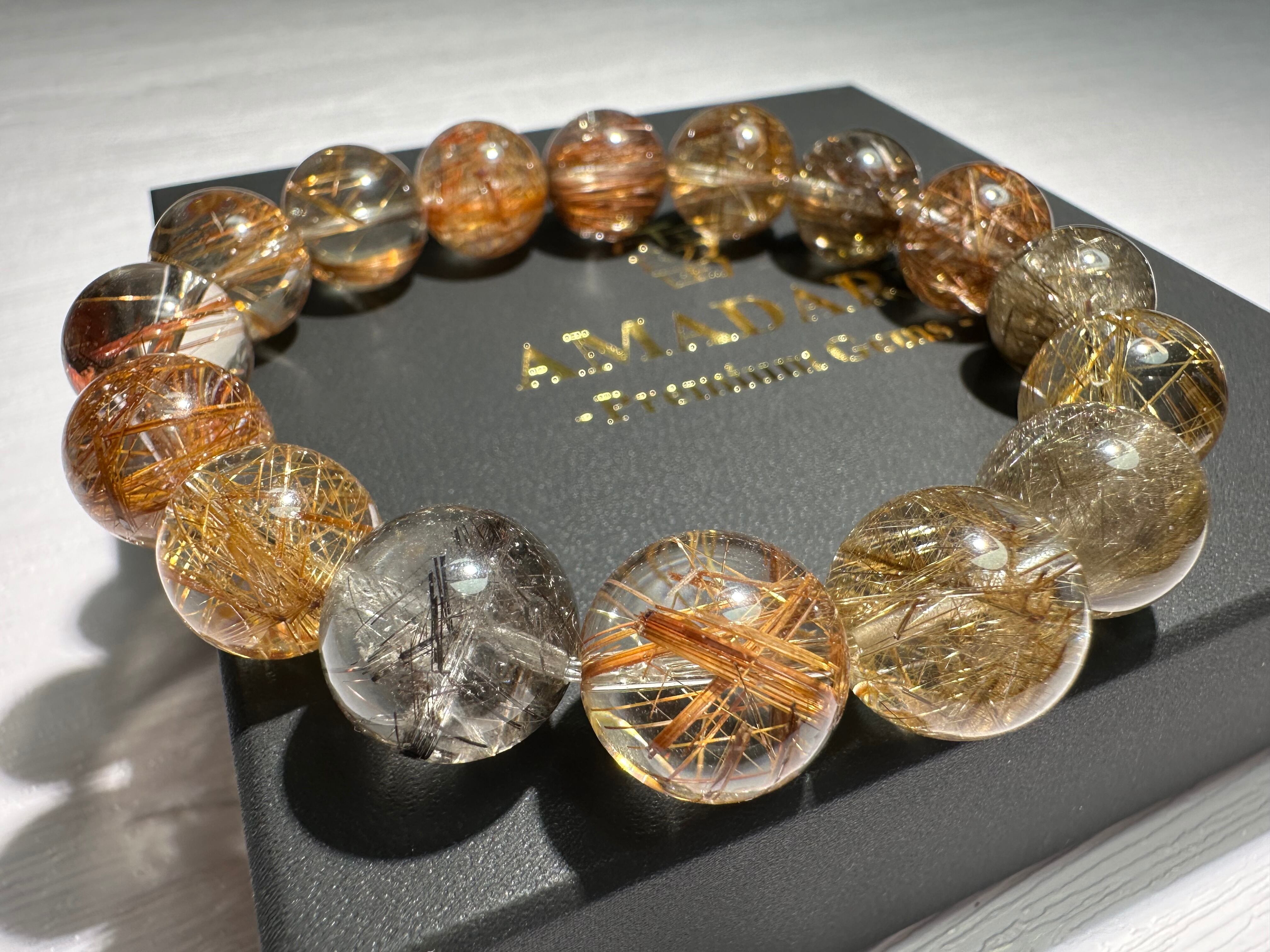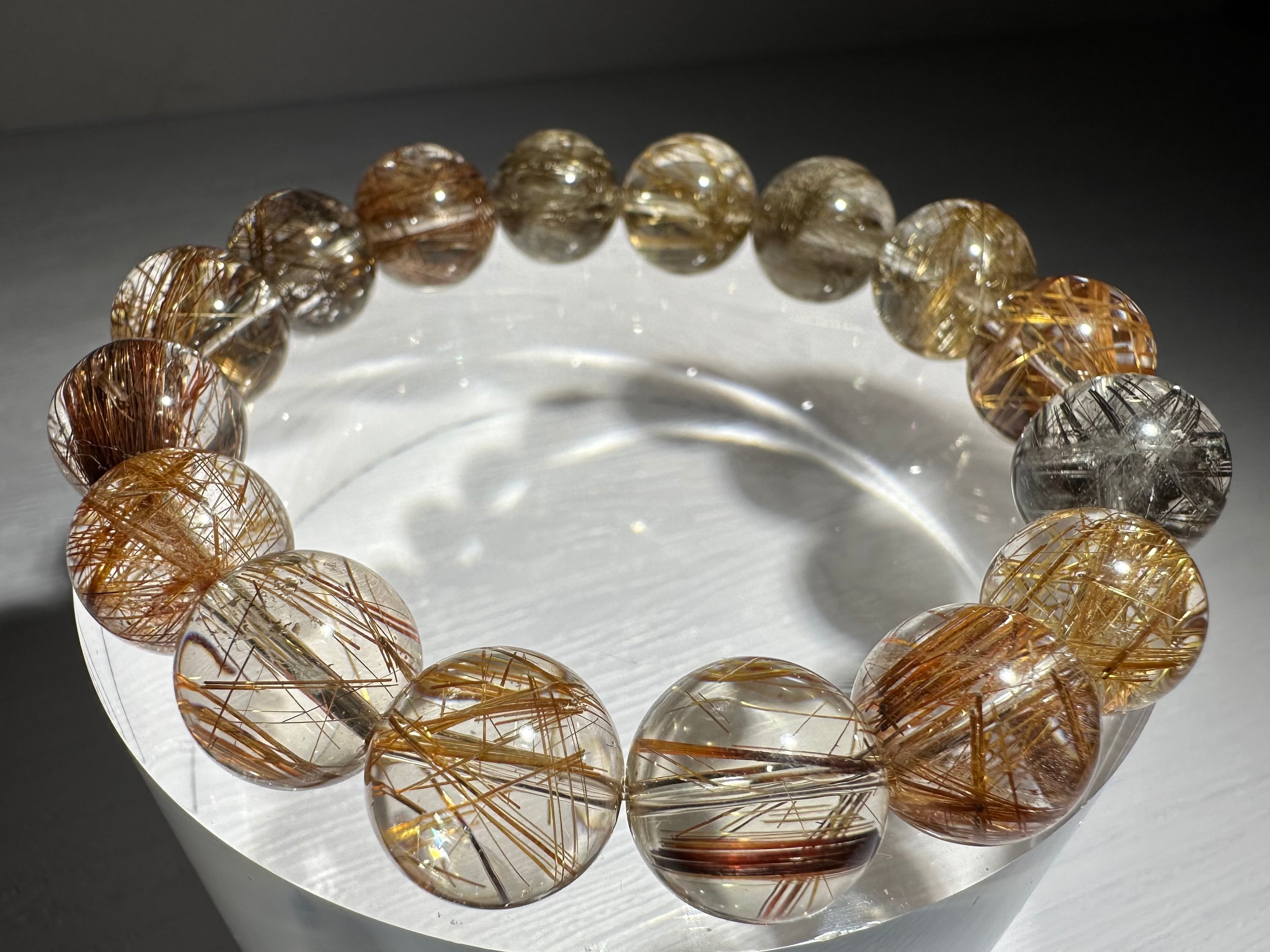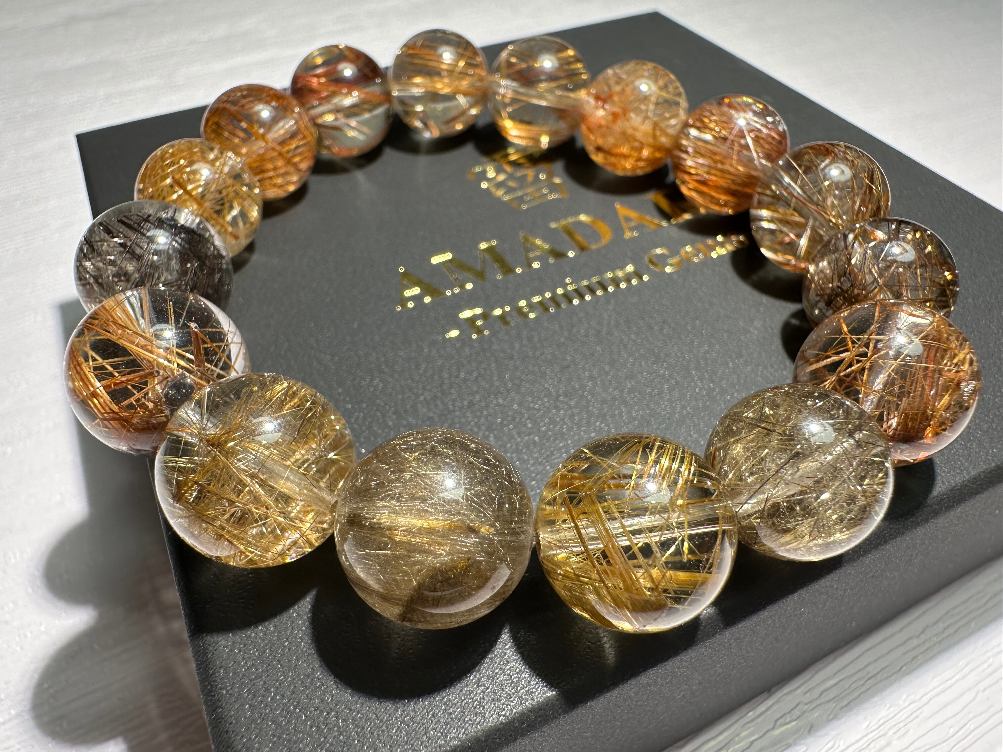 ルチルの針の量・質、水晶の透明度、全体のバランス、どれをとっても素晴らしいSSランク多宝ルチルクォーツ(ミックスルチルクォーツ)のブレスレットです。