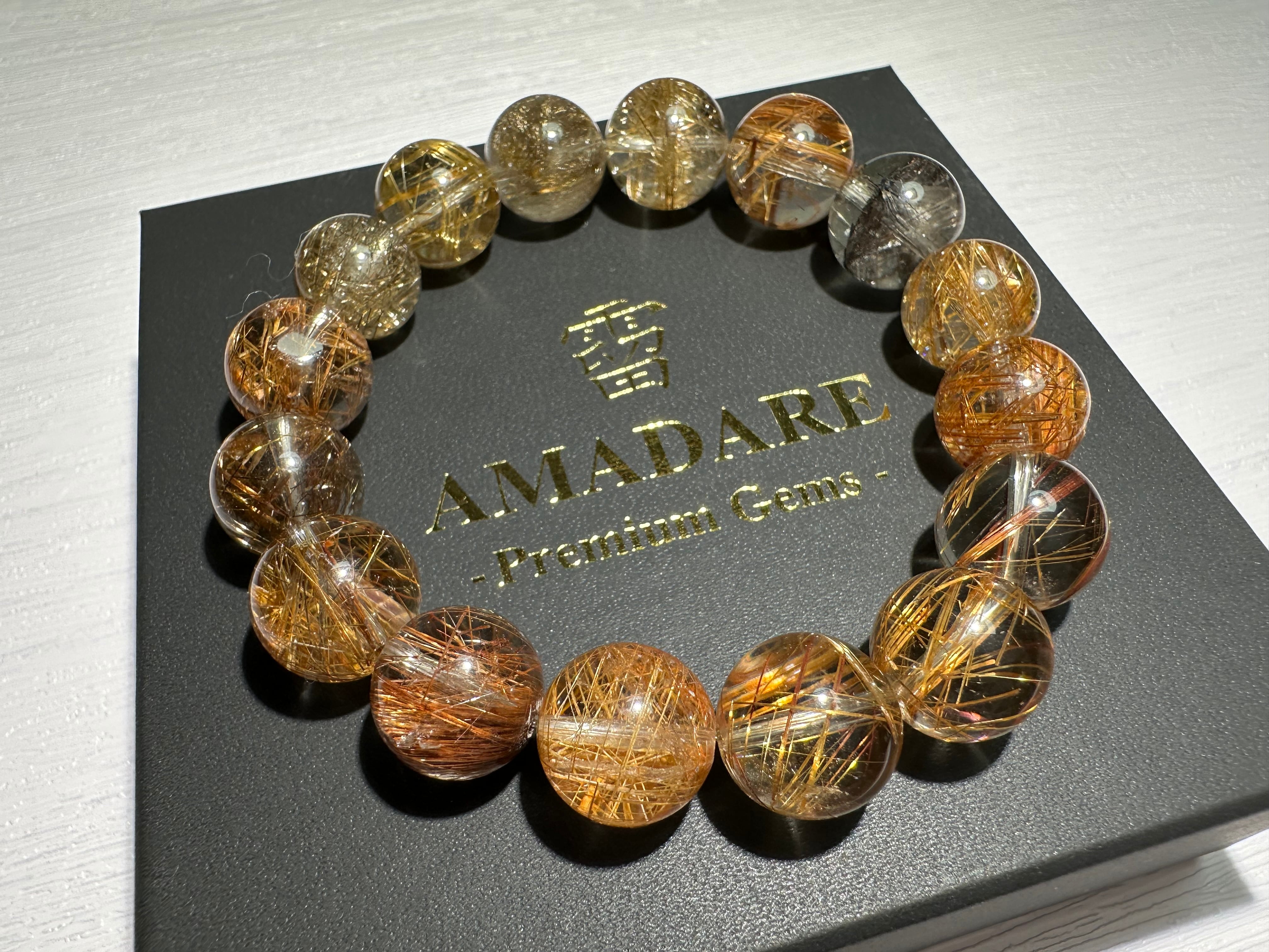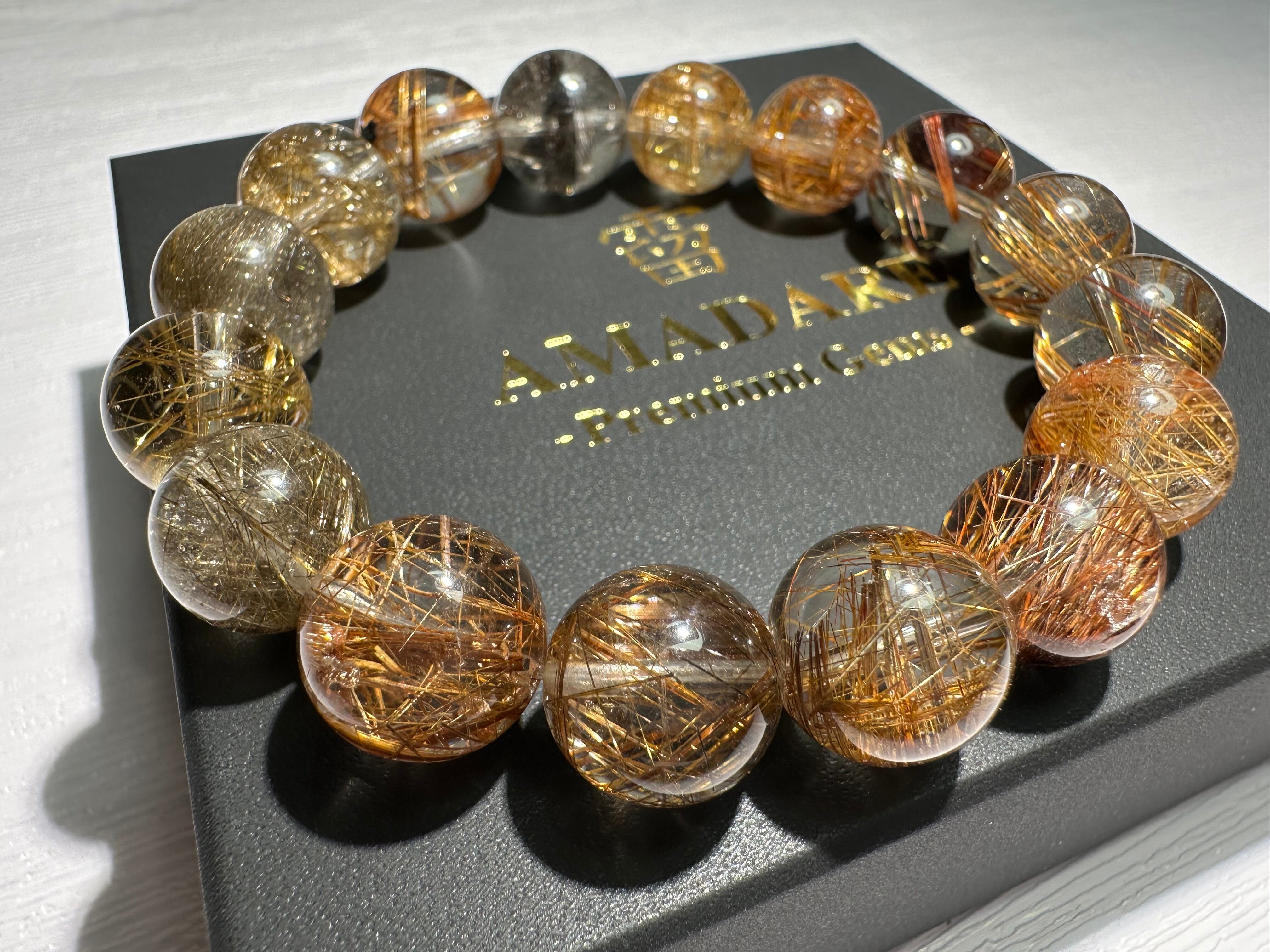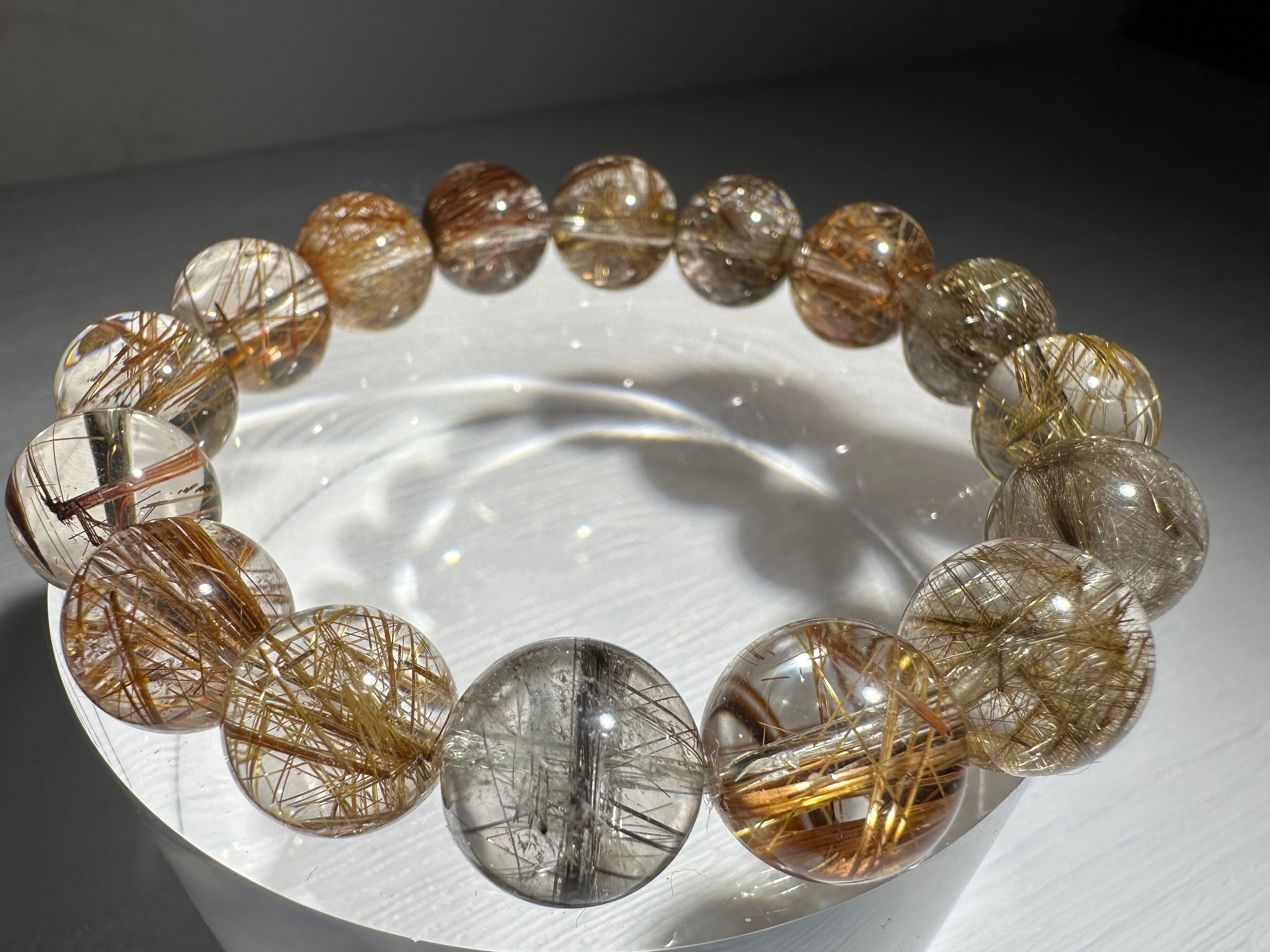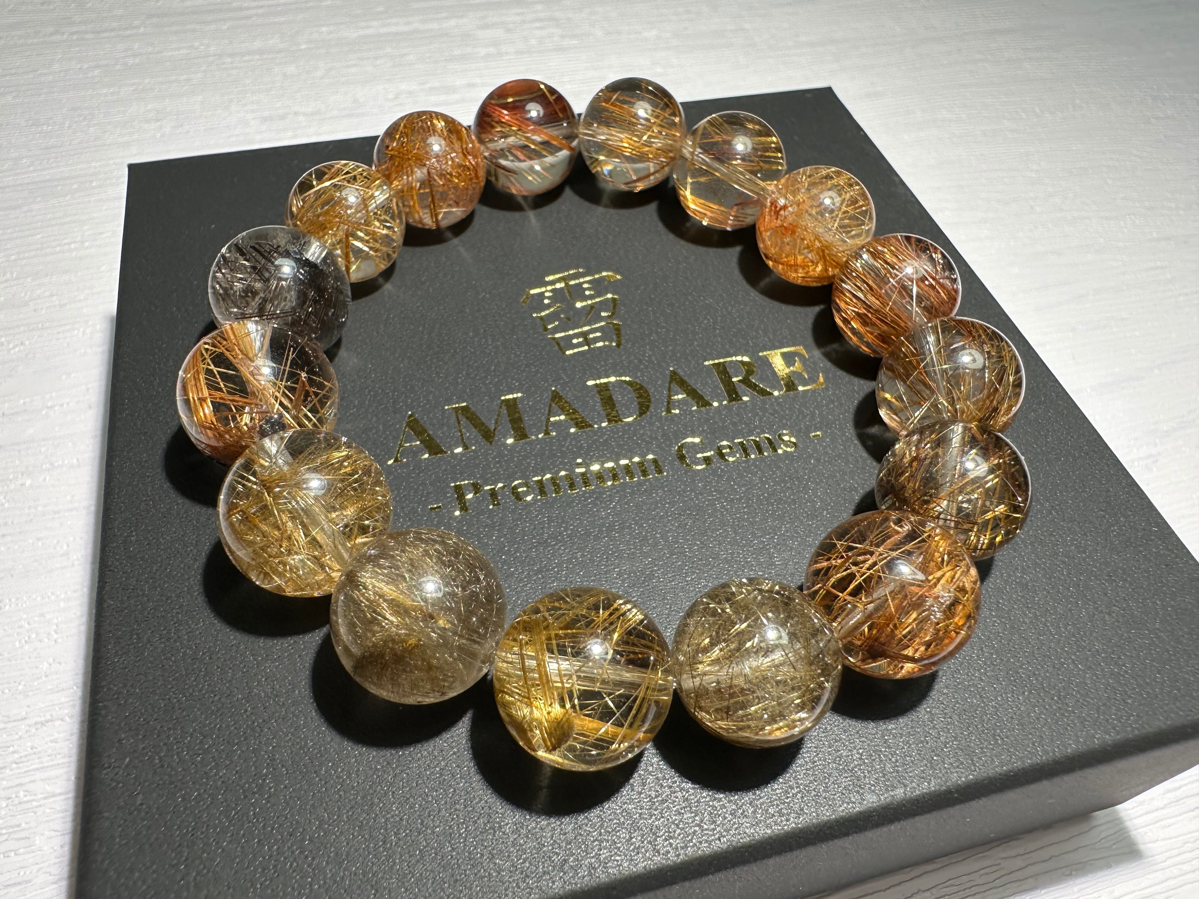 ルチルの針の量・質、水晶の透明度、全体のバランス、どれをとっても素晴らしいSSランク多宝ルチルクォーツ(ミックスルチルクォーツ)のブレスレットです。