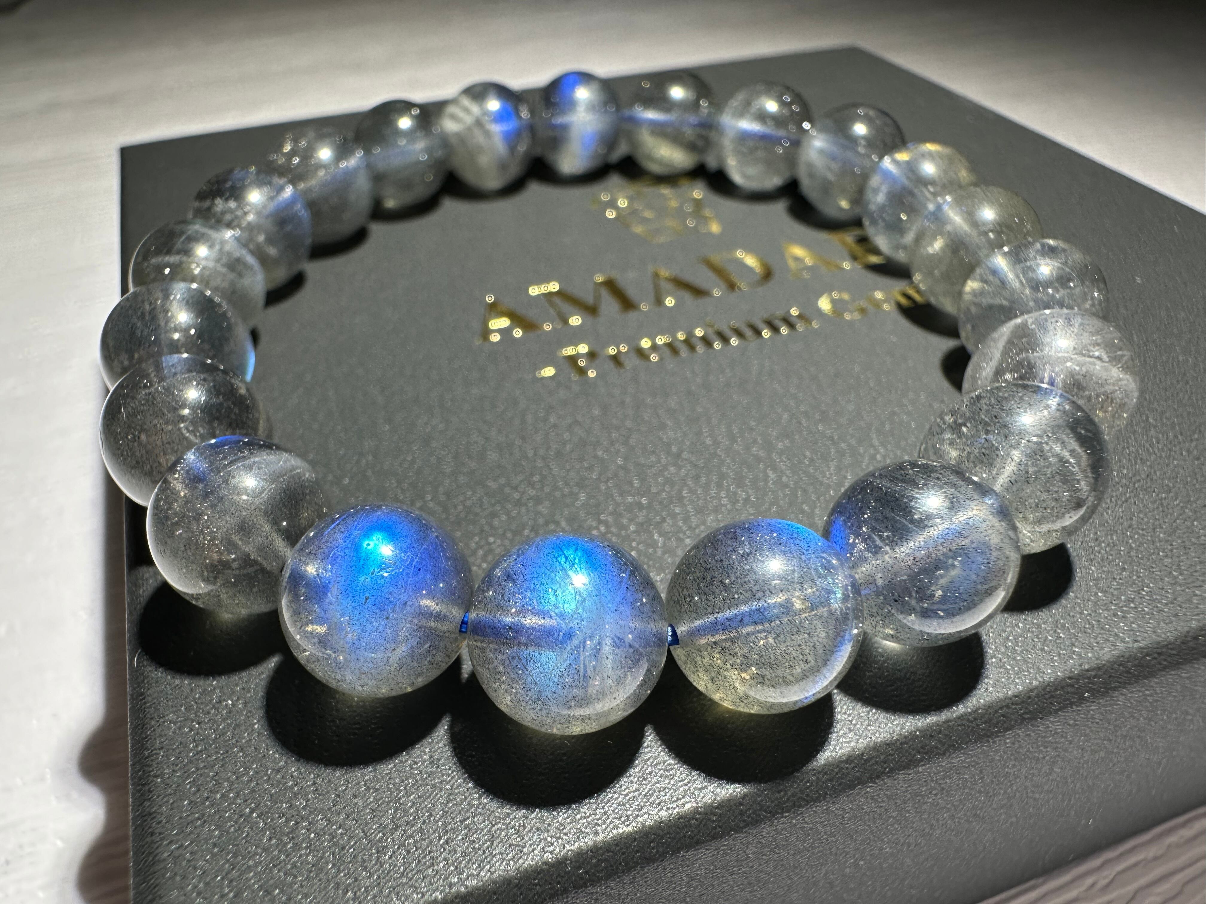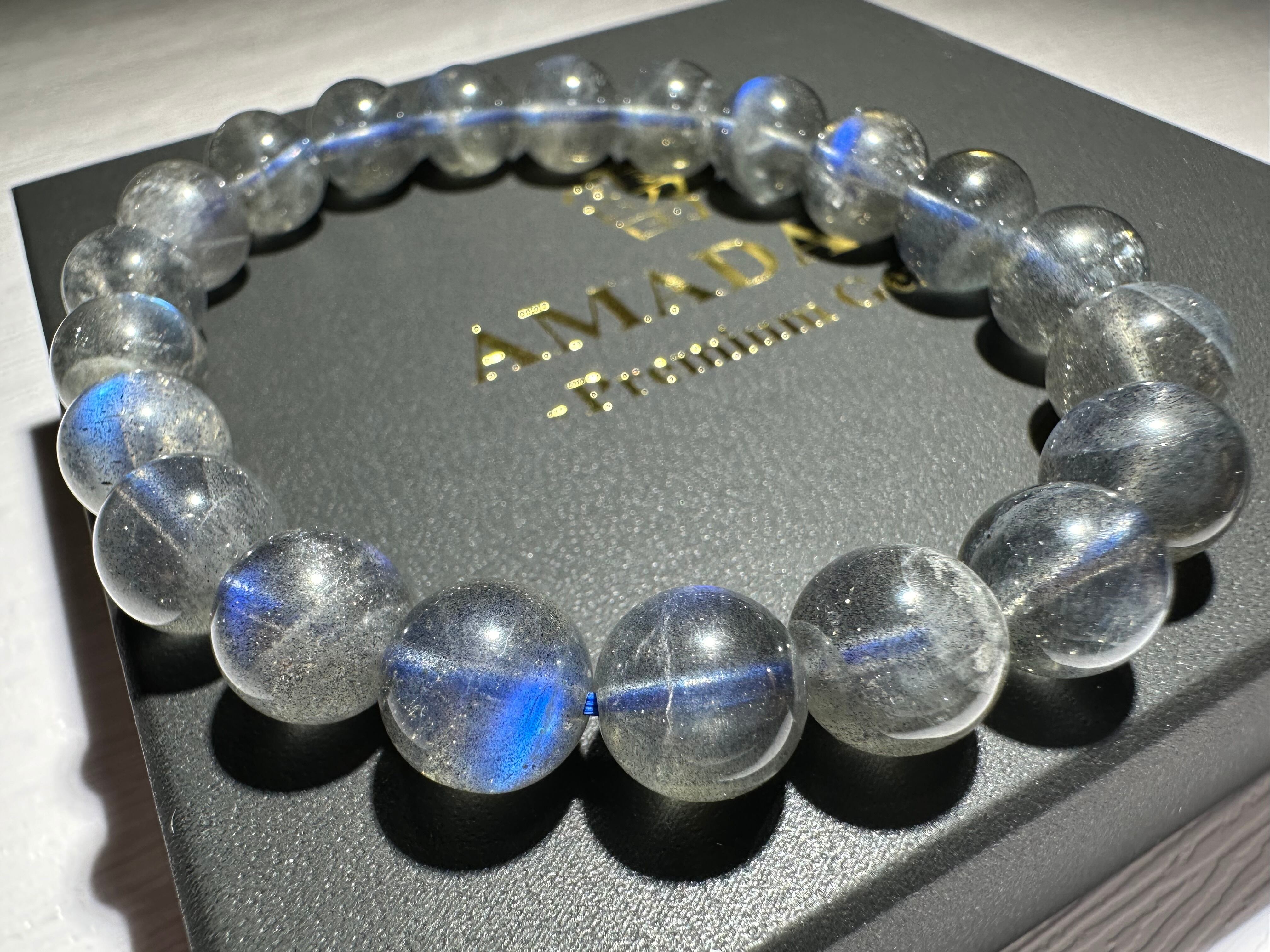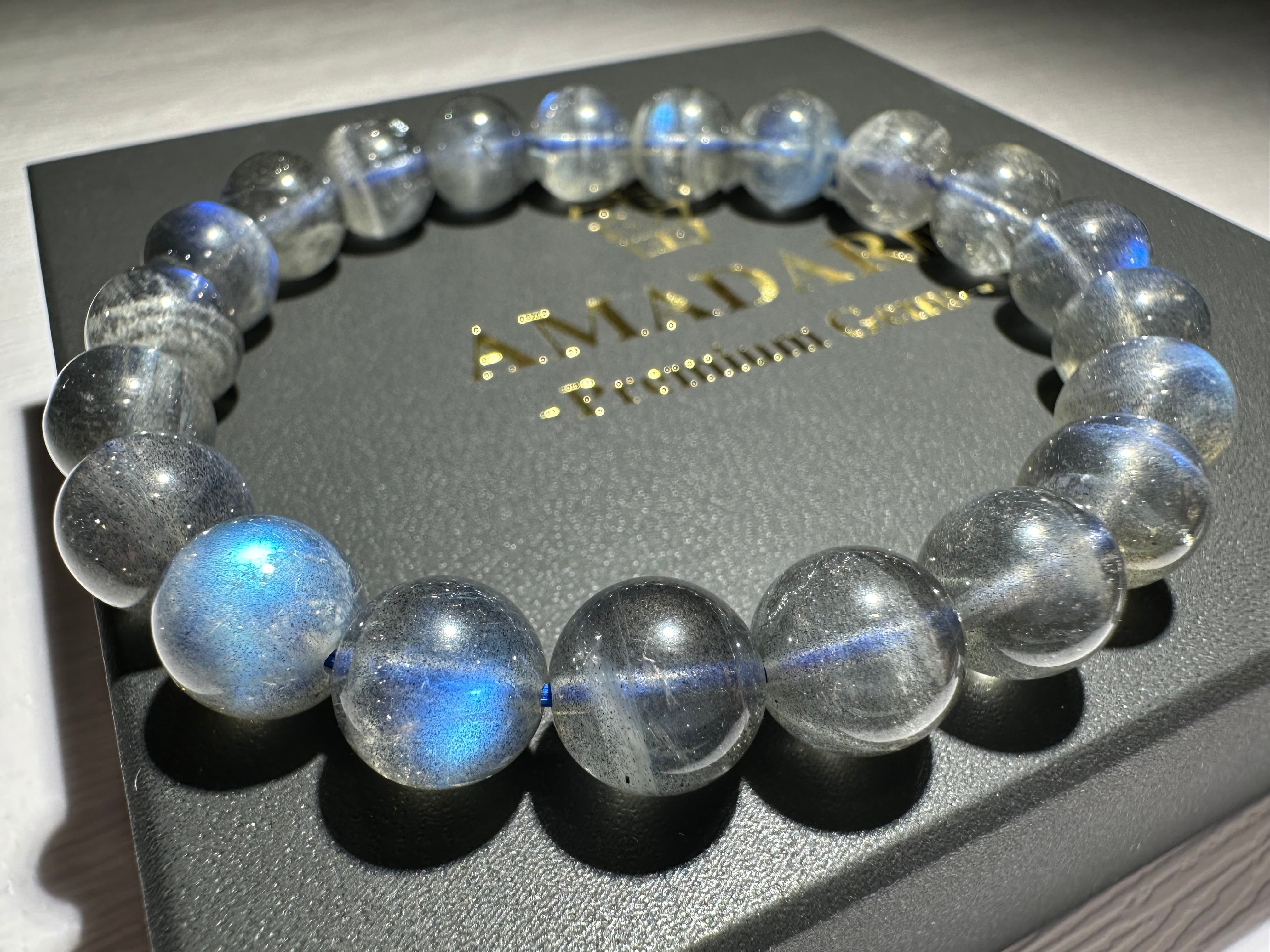 珍しいディープグレーカラーのラブラドライトです。