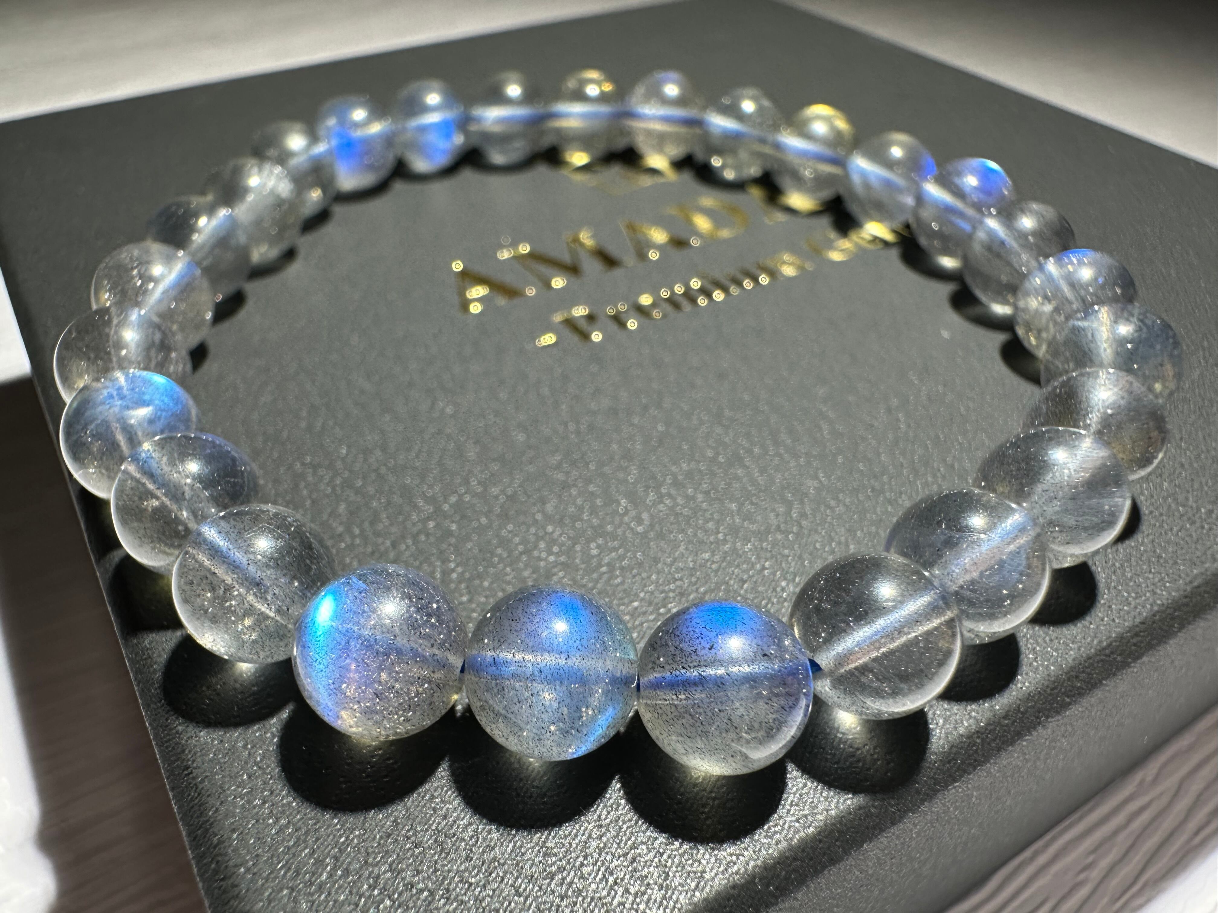 珍しいディープグレーカラーのラブラドライトです。