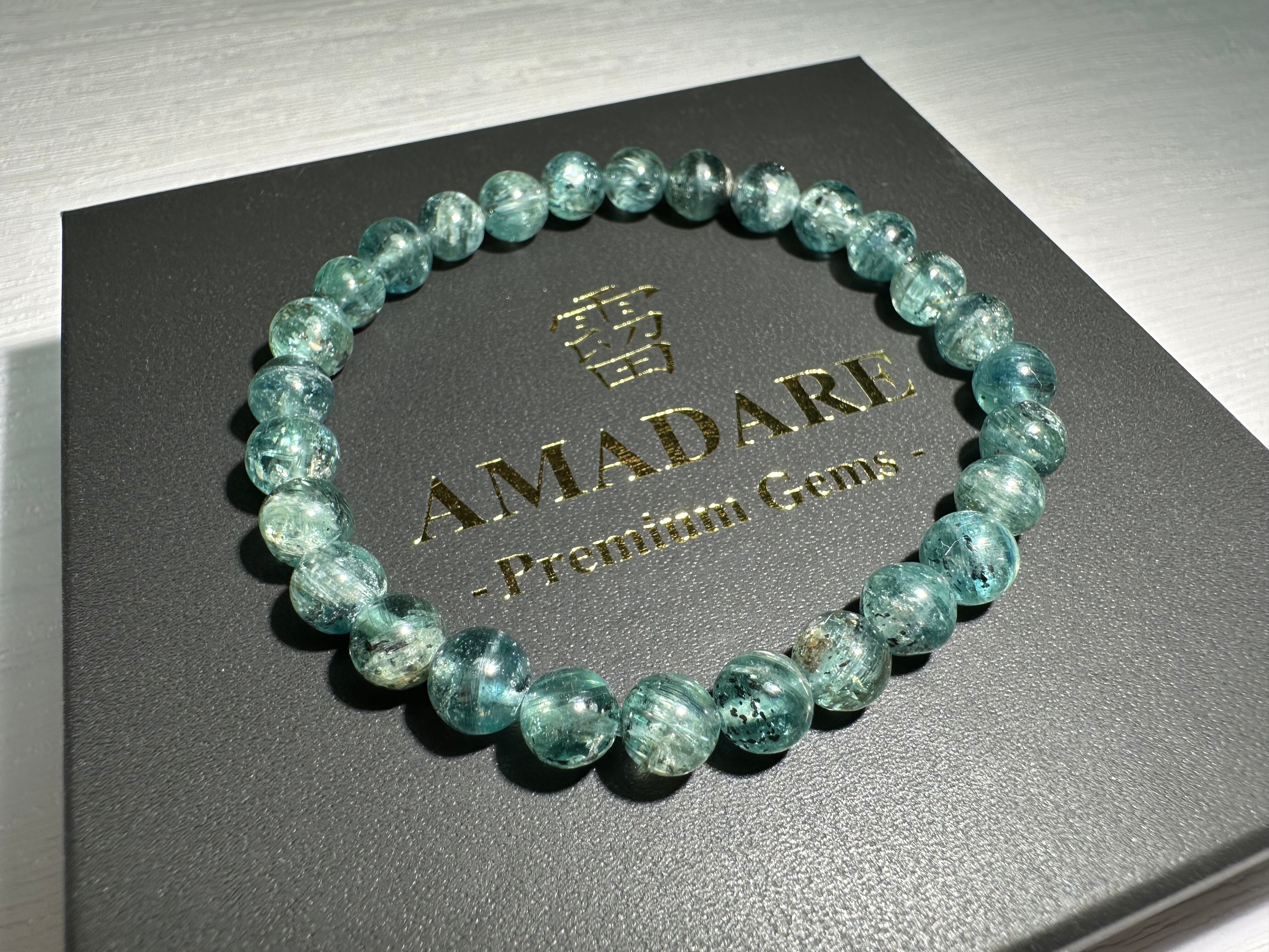 発色もよく透明感も感じられるとともに、透かすとキラキラしていることから、買付現地では「星空グリーンカイヤナイト」と呼ばれています。