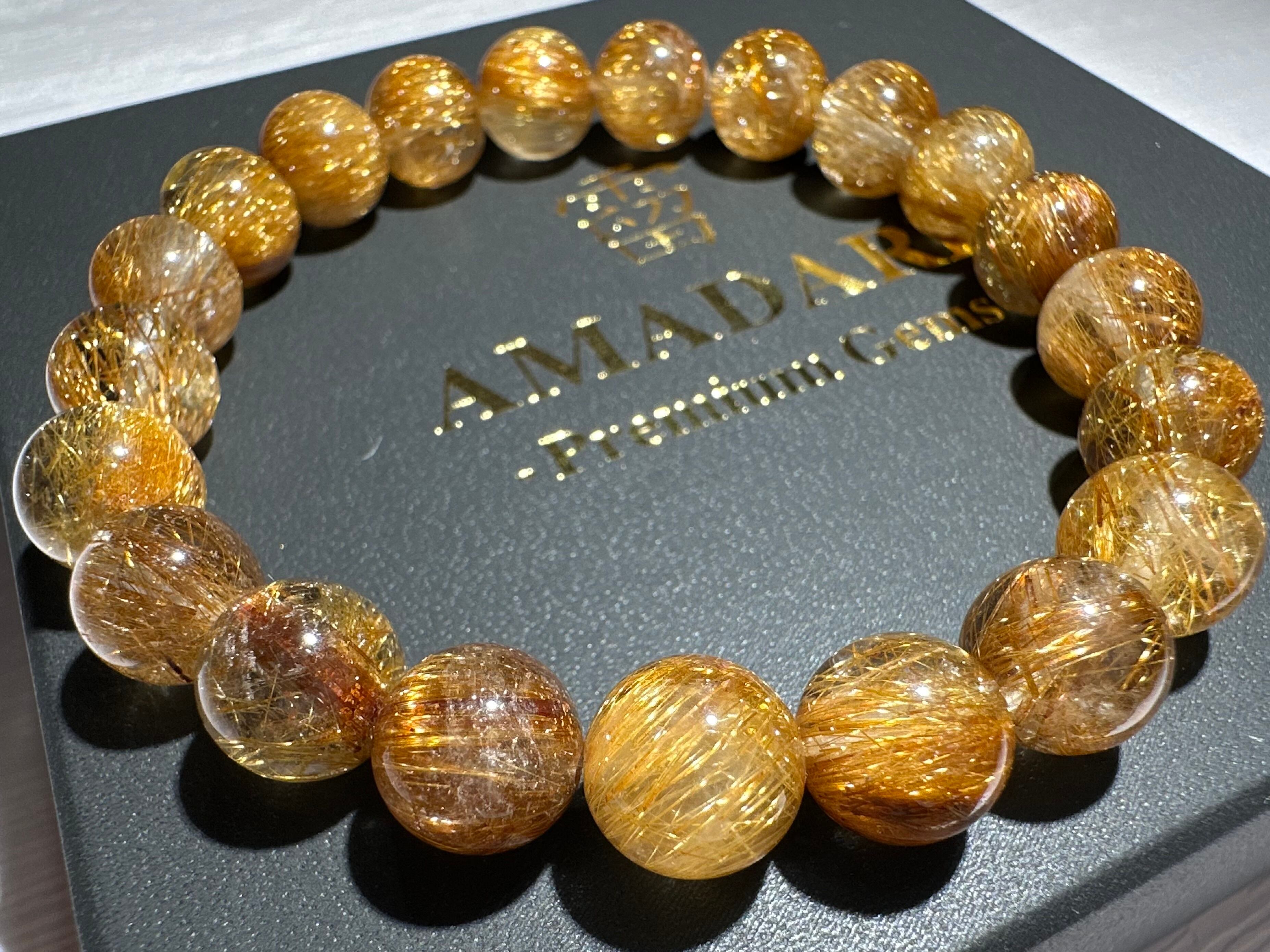 ルチルの内包量が多く、水晶の透明感も高いブラウンルチルのブレスレットです。