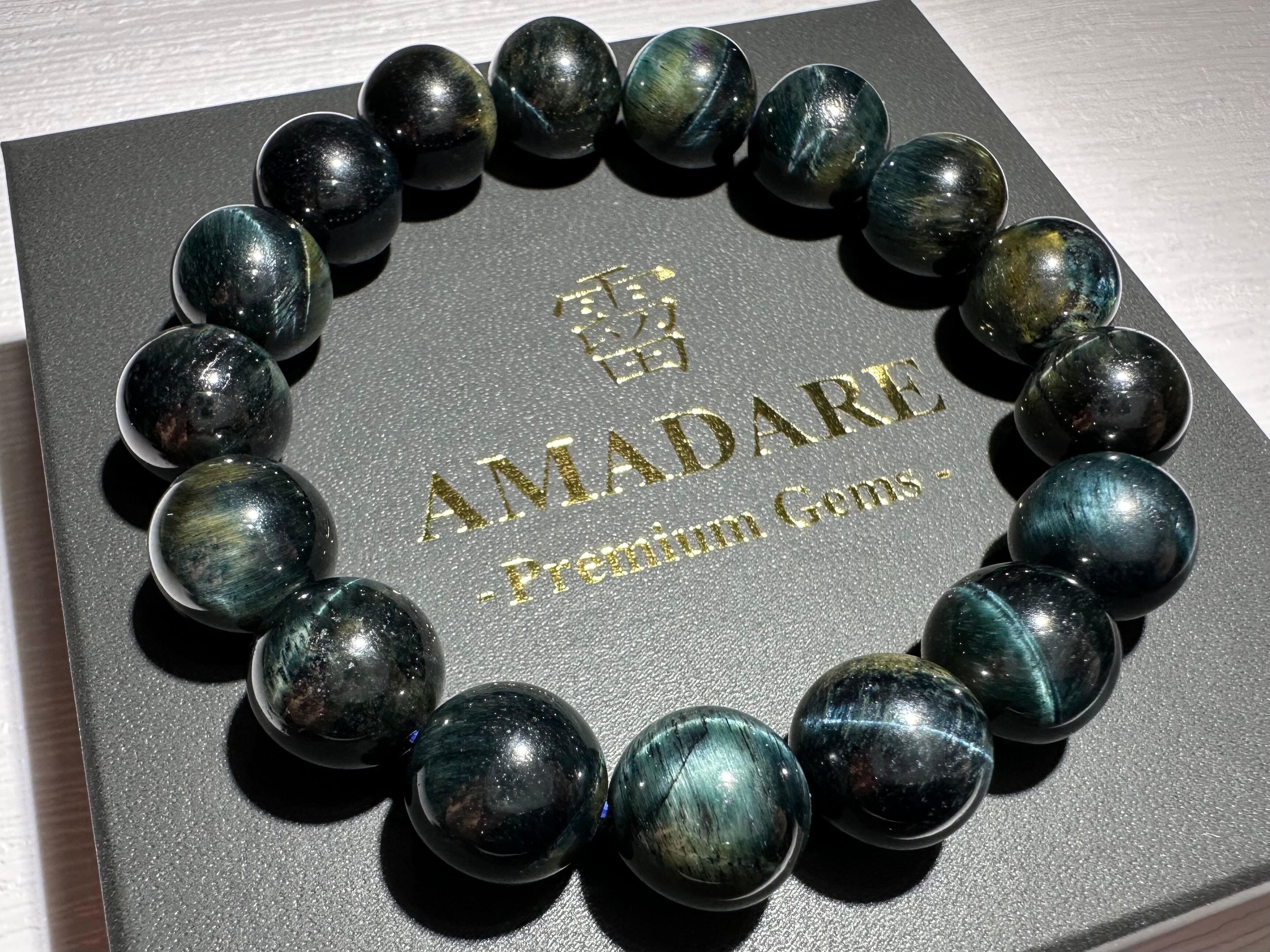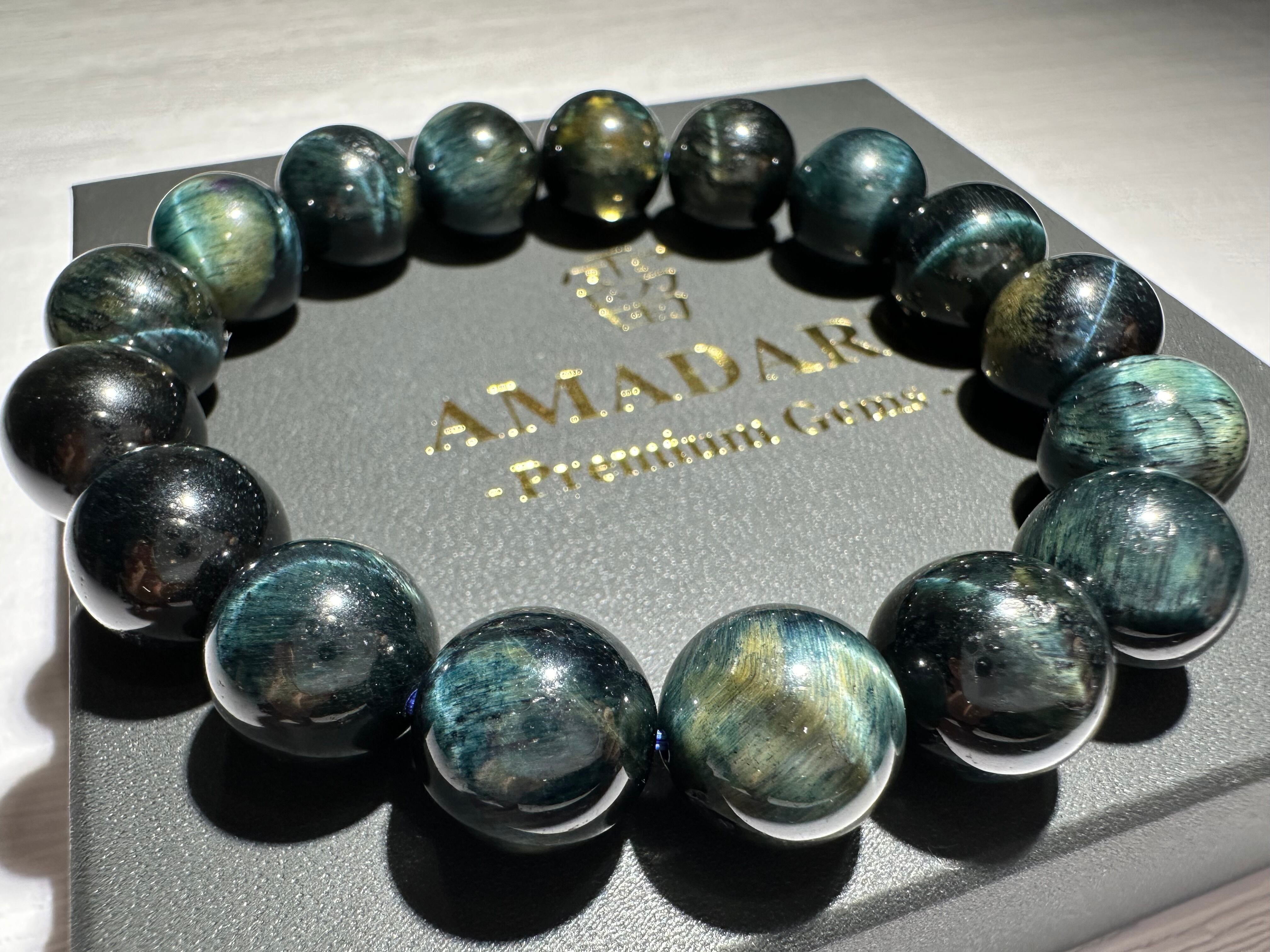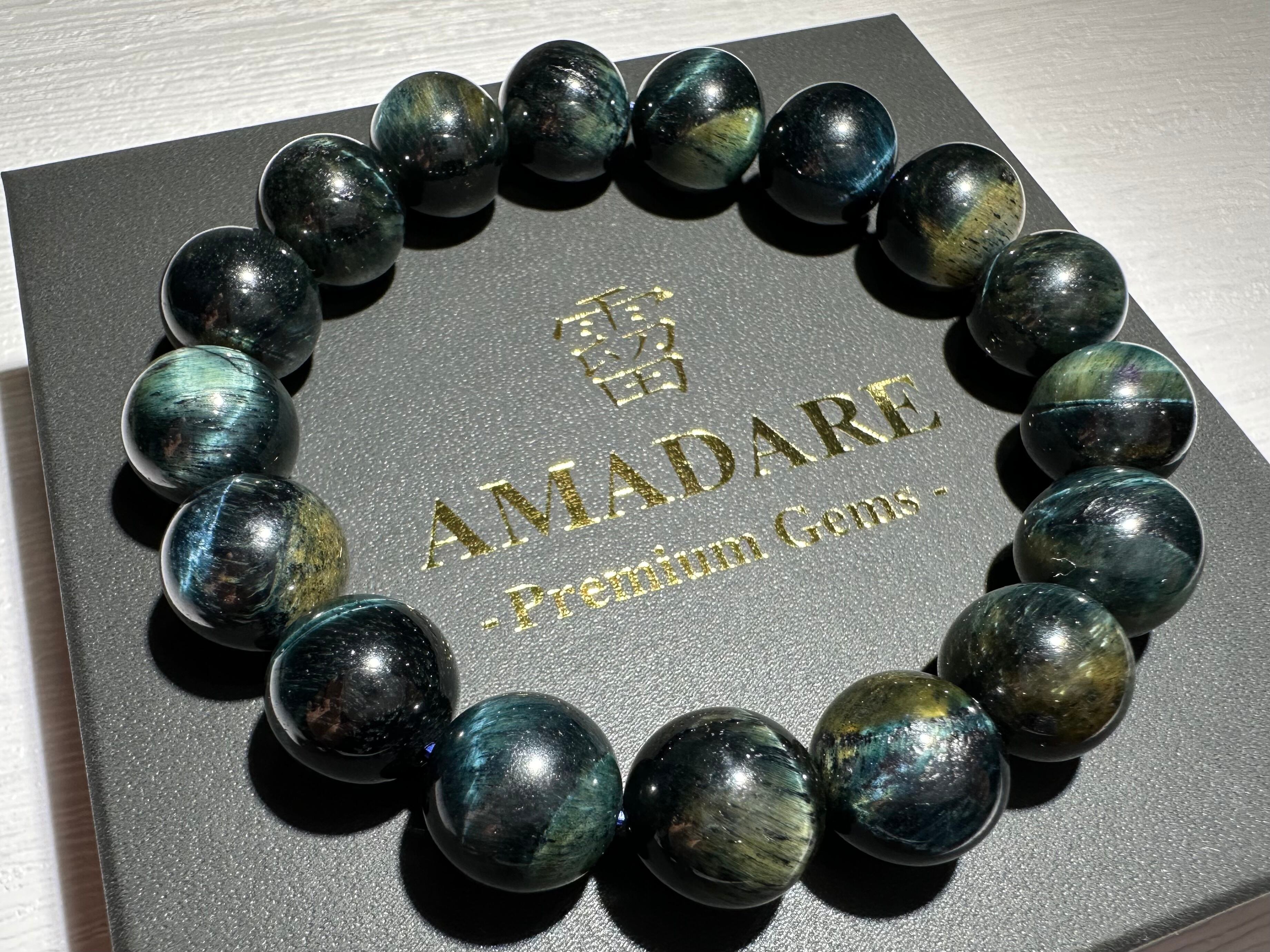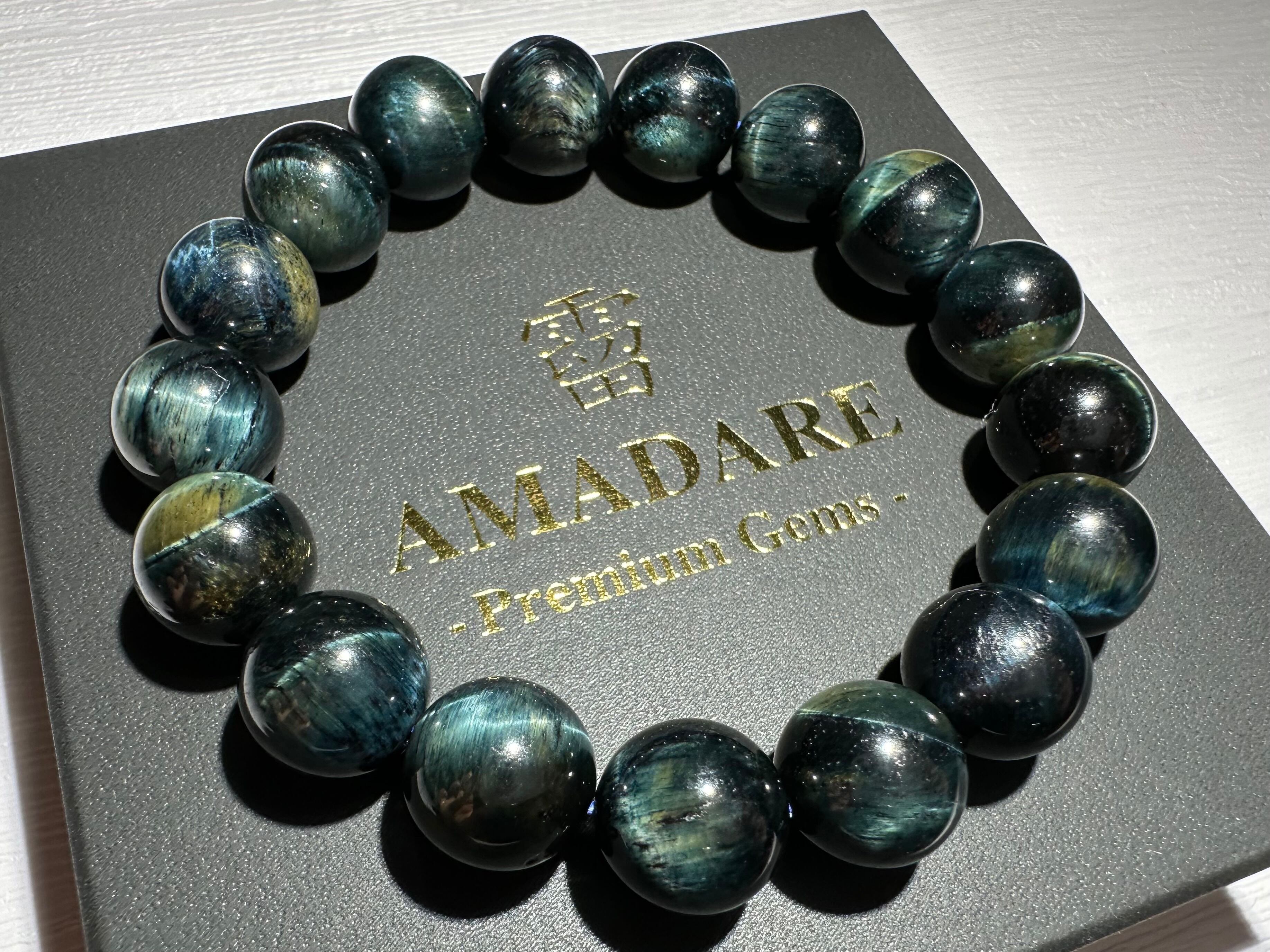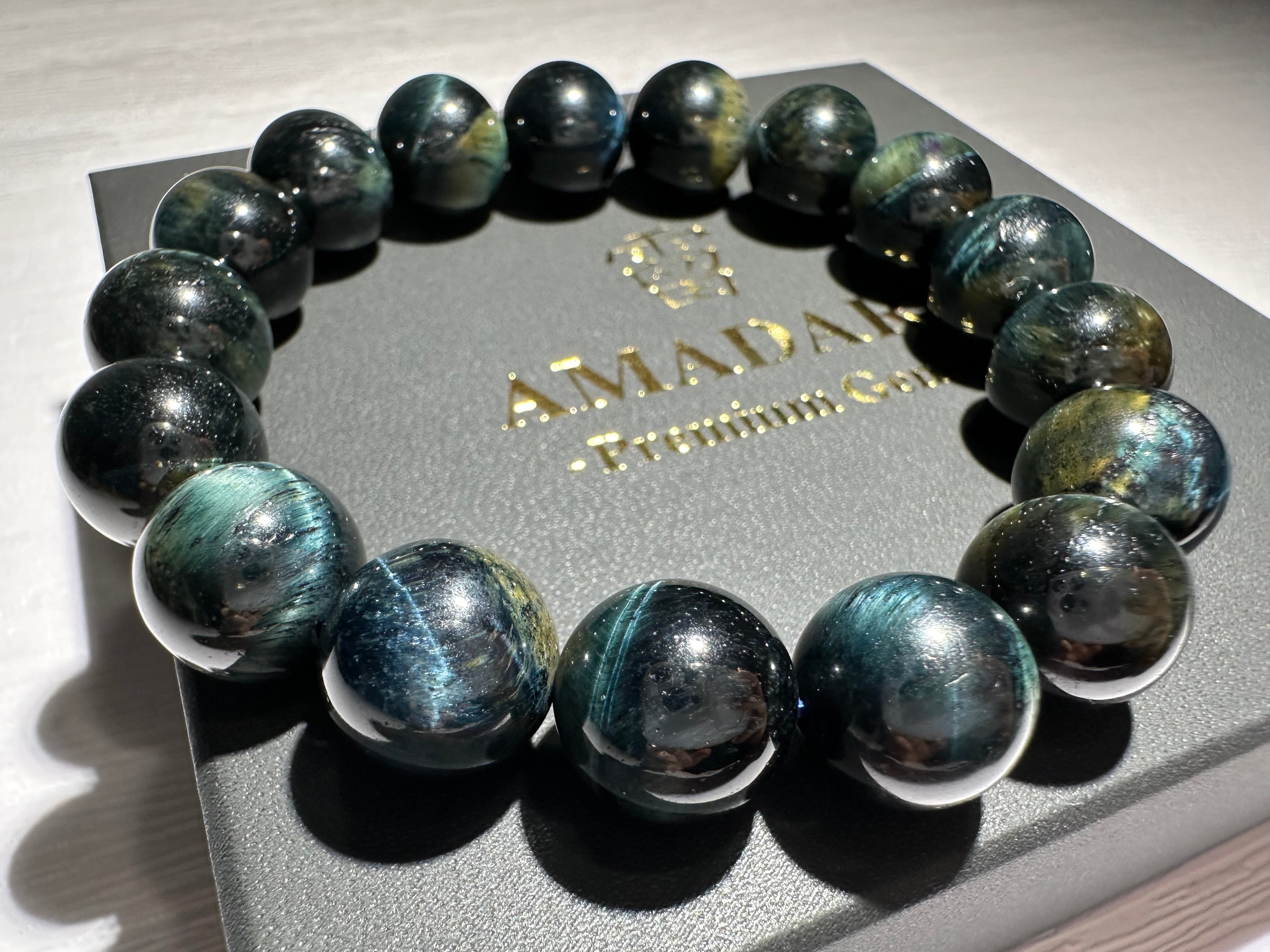 珍しいカラーの、ブルーイエロータイガーアイブレスレットです。