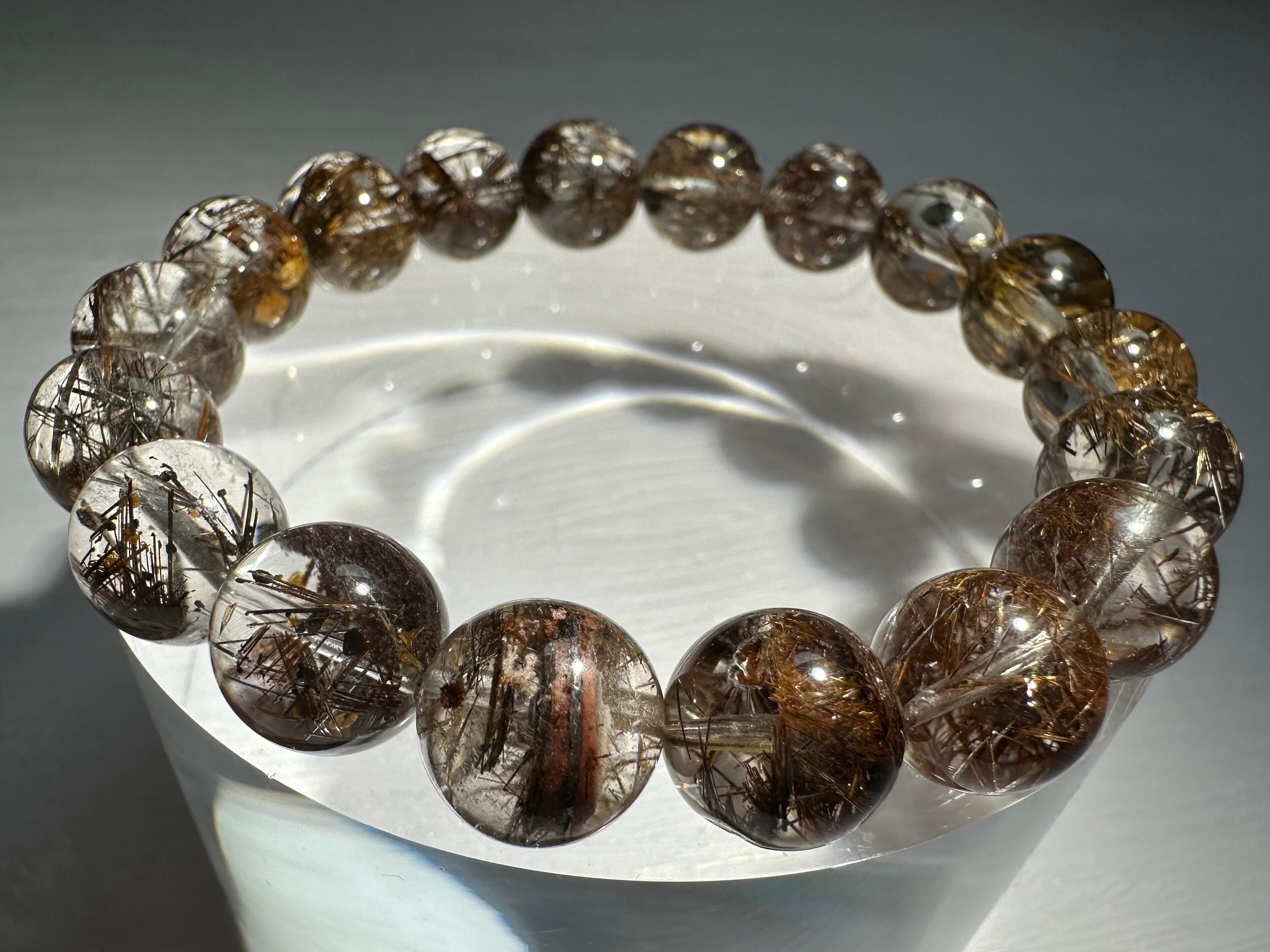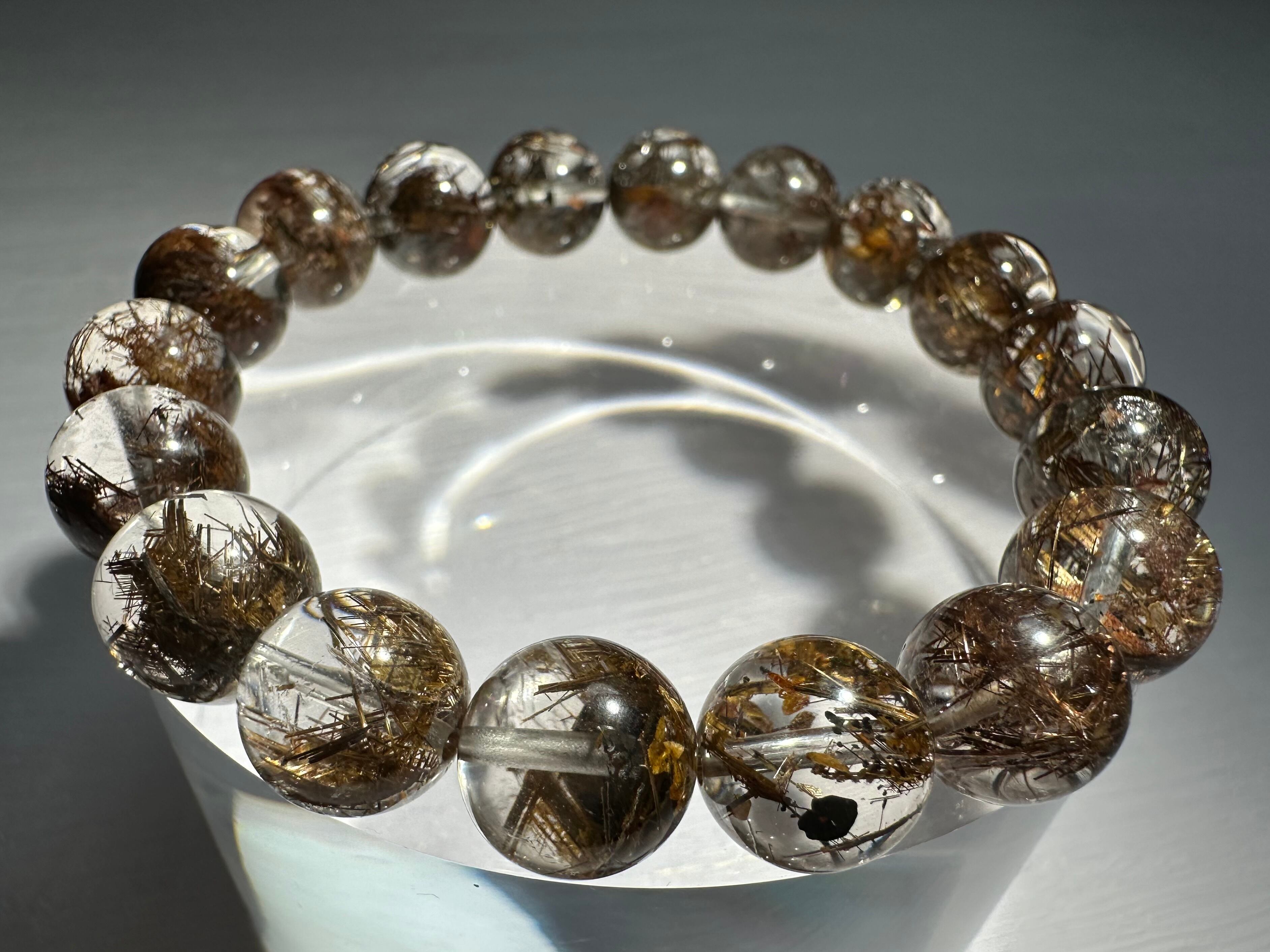幾何学模様的にルチルが入っている大変珍しいSSグレードのジオメトリールチルクォーツブレスレットです。
