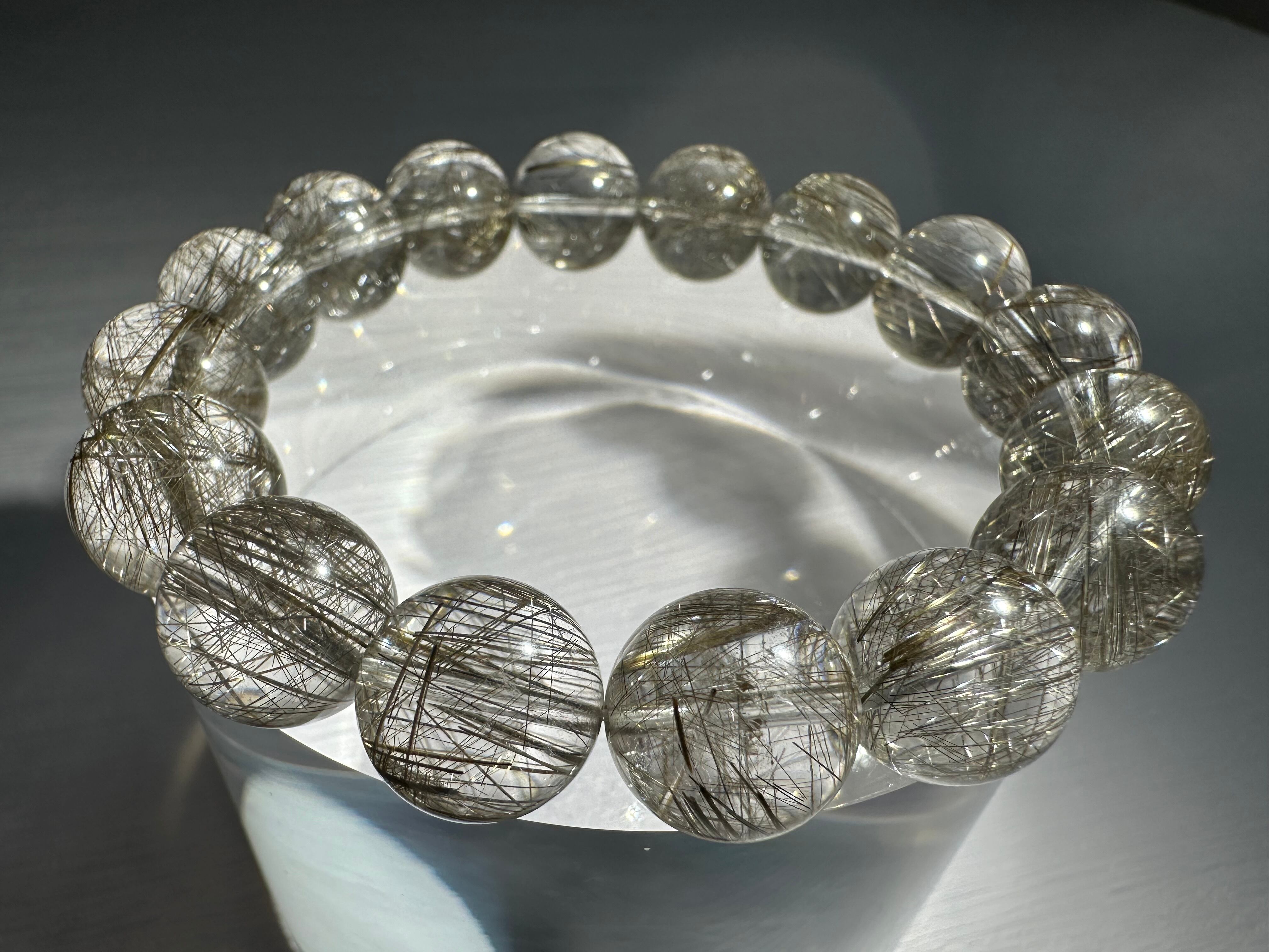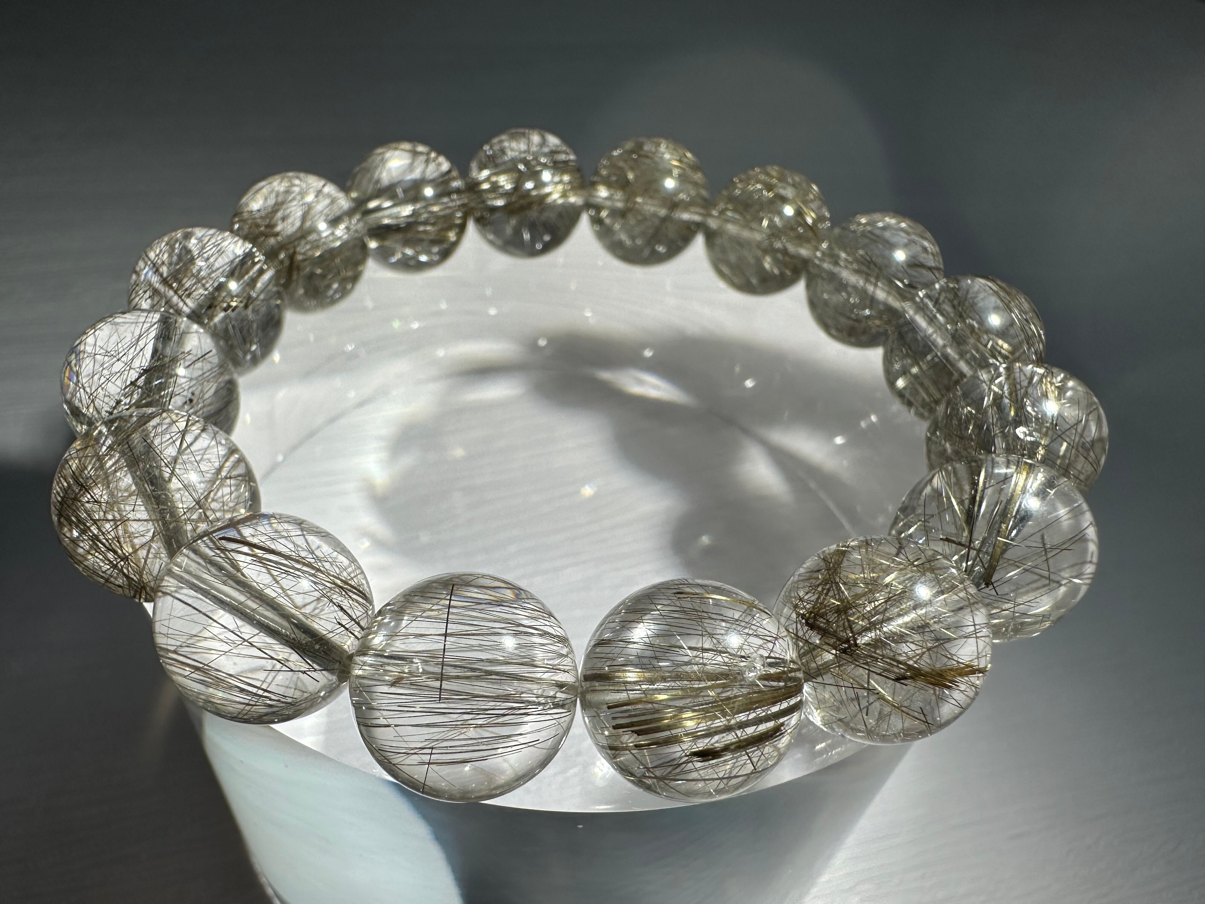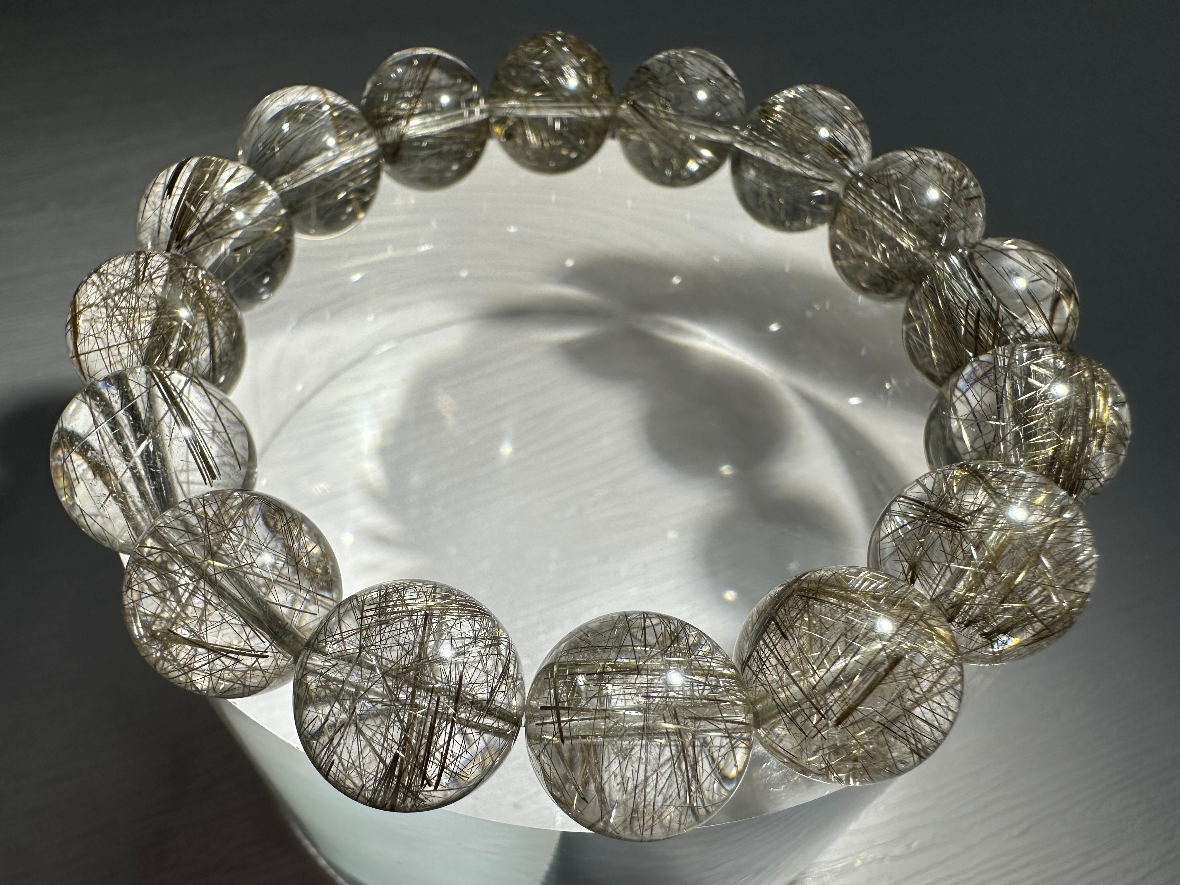 ルチル針のシルバーカラーと輝きが大変美しく、内包量も多く、水晶部分の透明感も極めて高い