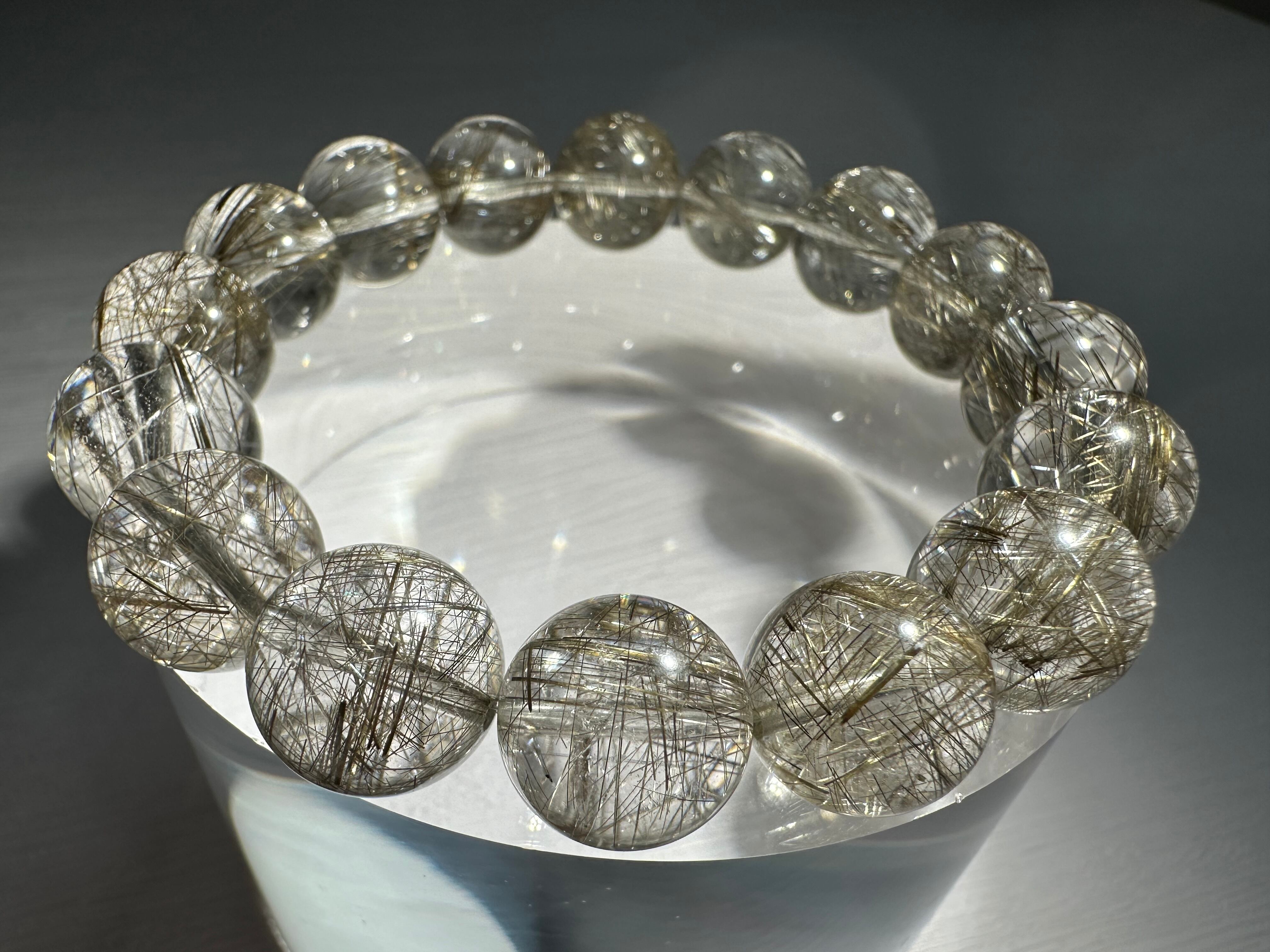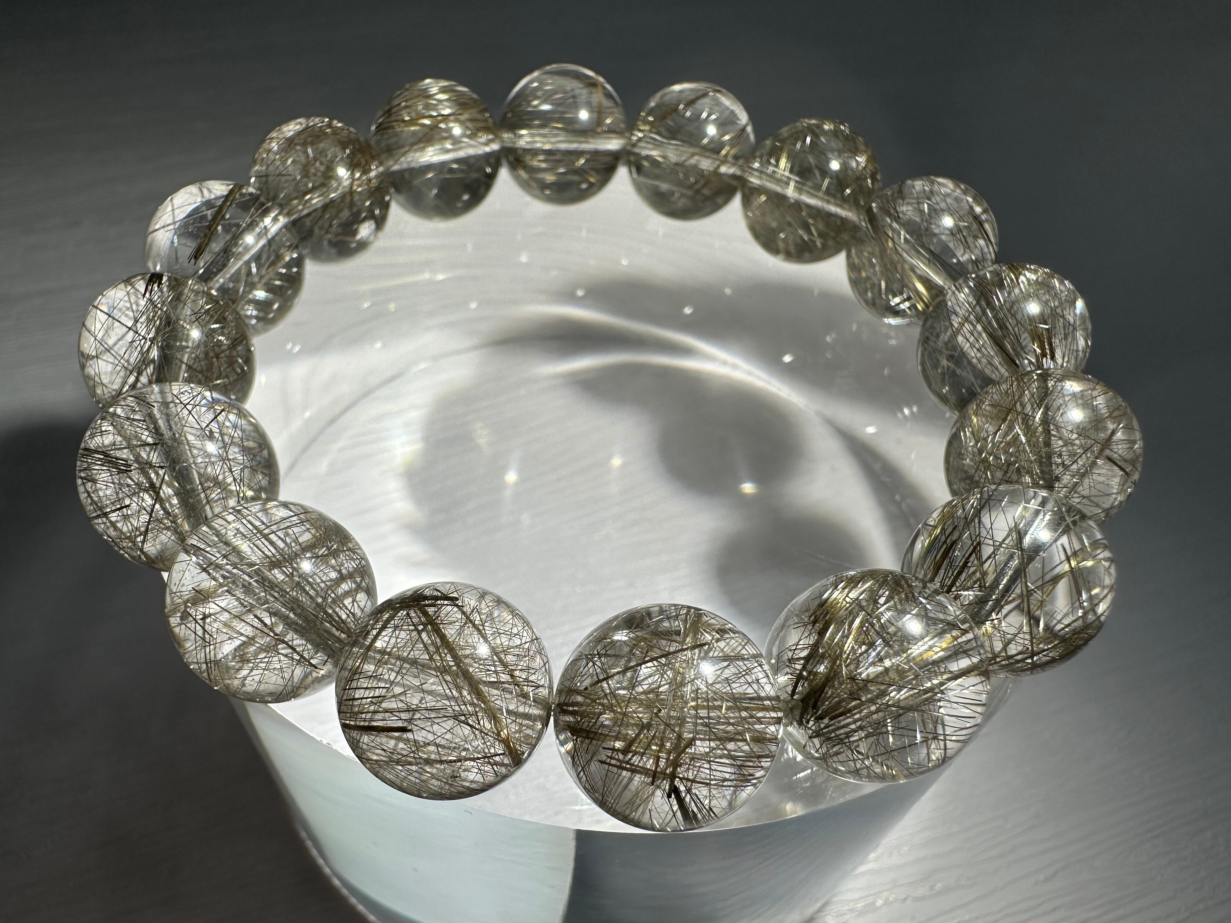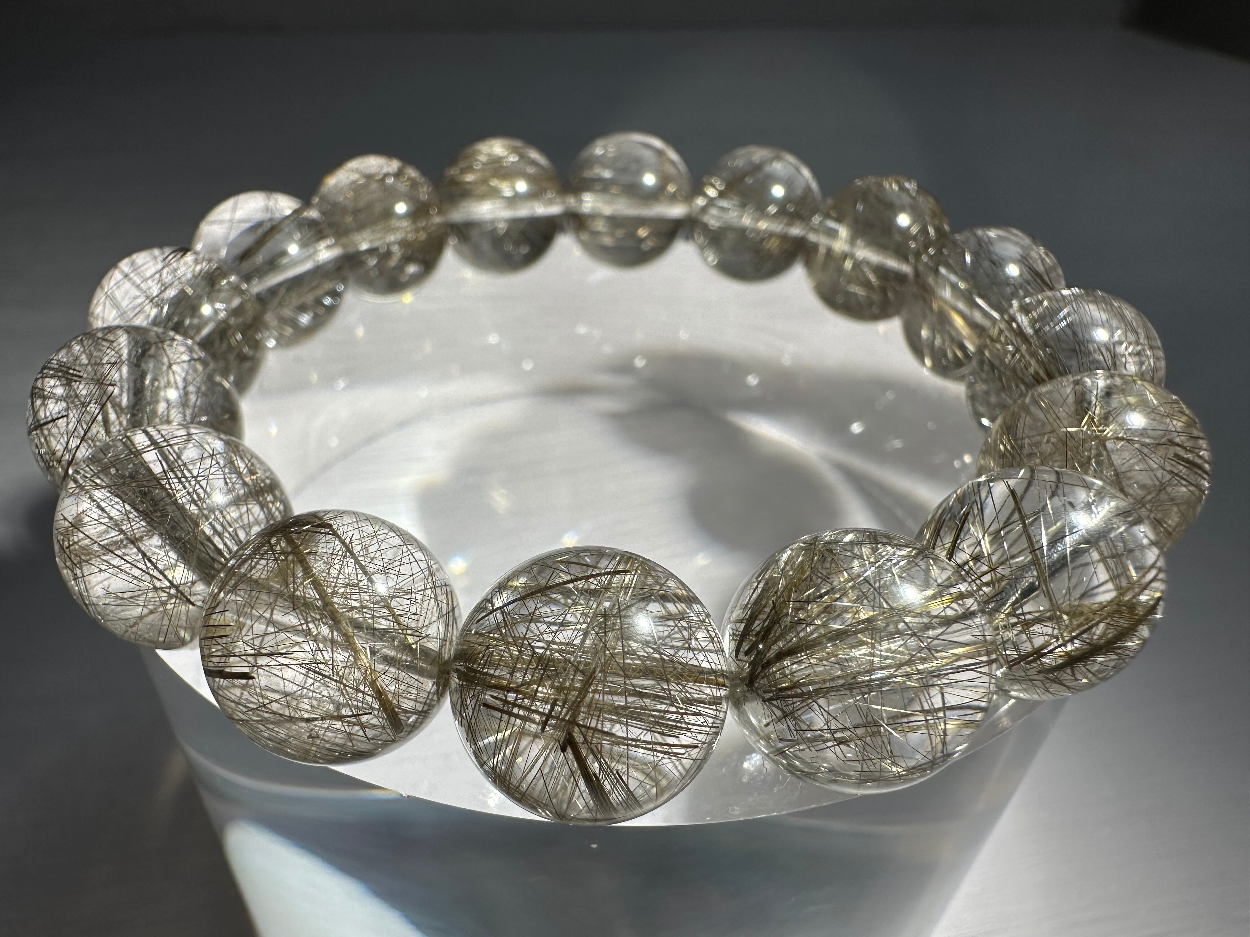 ルチル針のシルバーカラーと輝きが大変美しく、内包量も多く、水晶部分の透明感も極めて高い