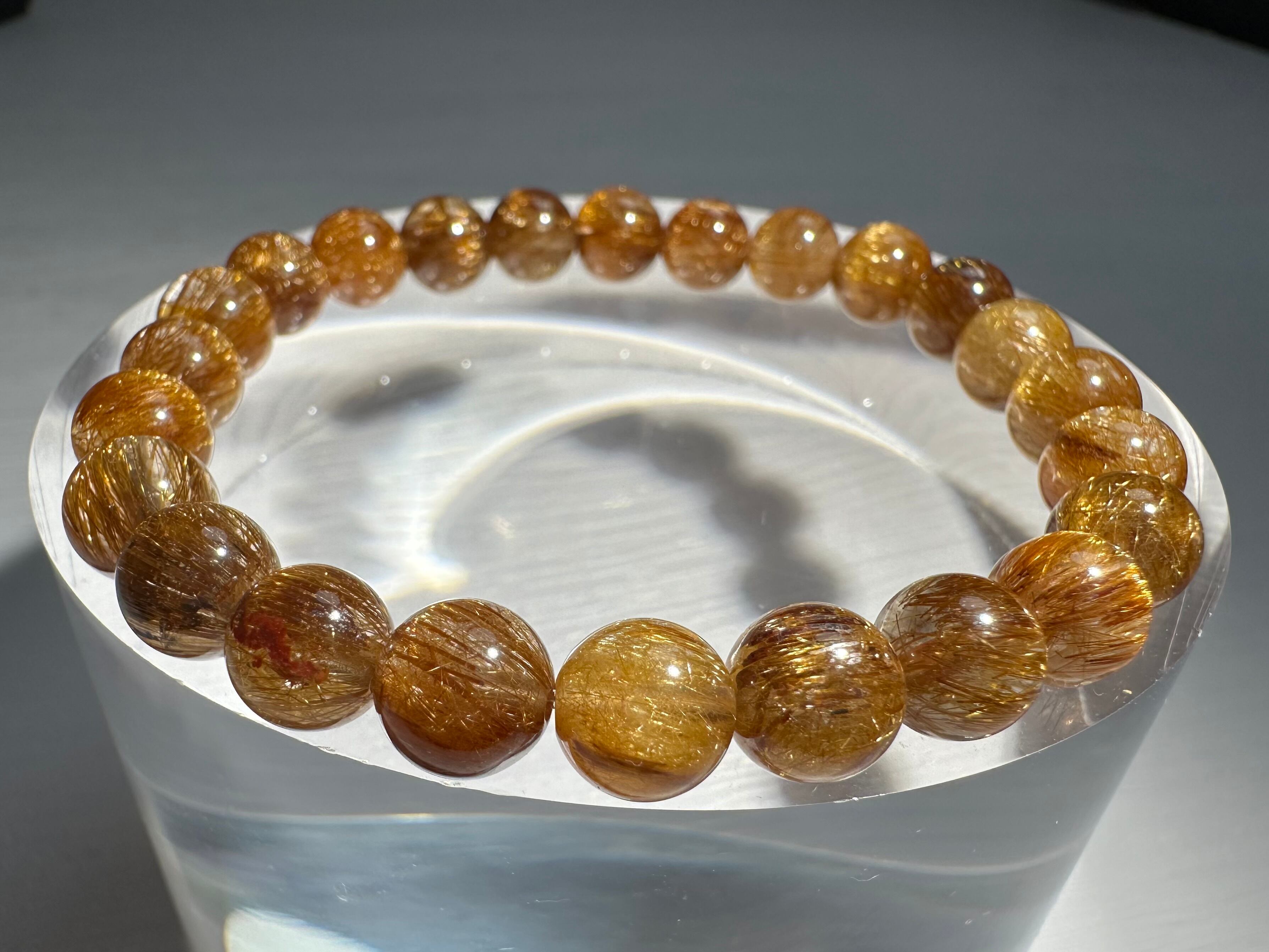 ルチルの針量が多く、煌めきも強く、水晶部分の透明感も高い