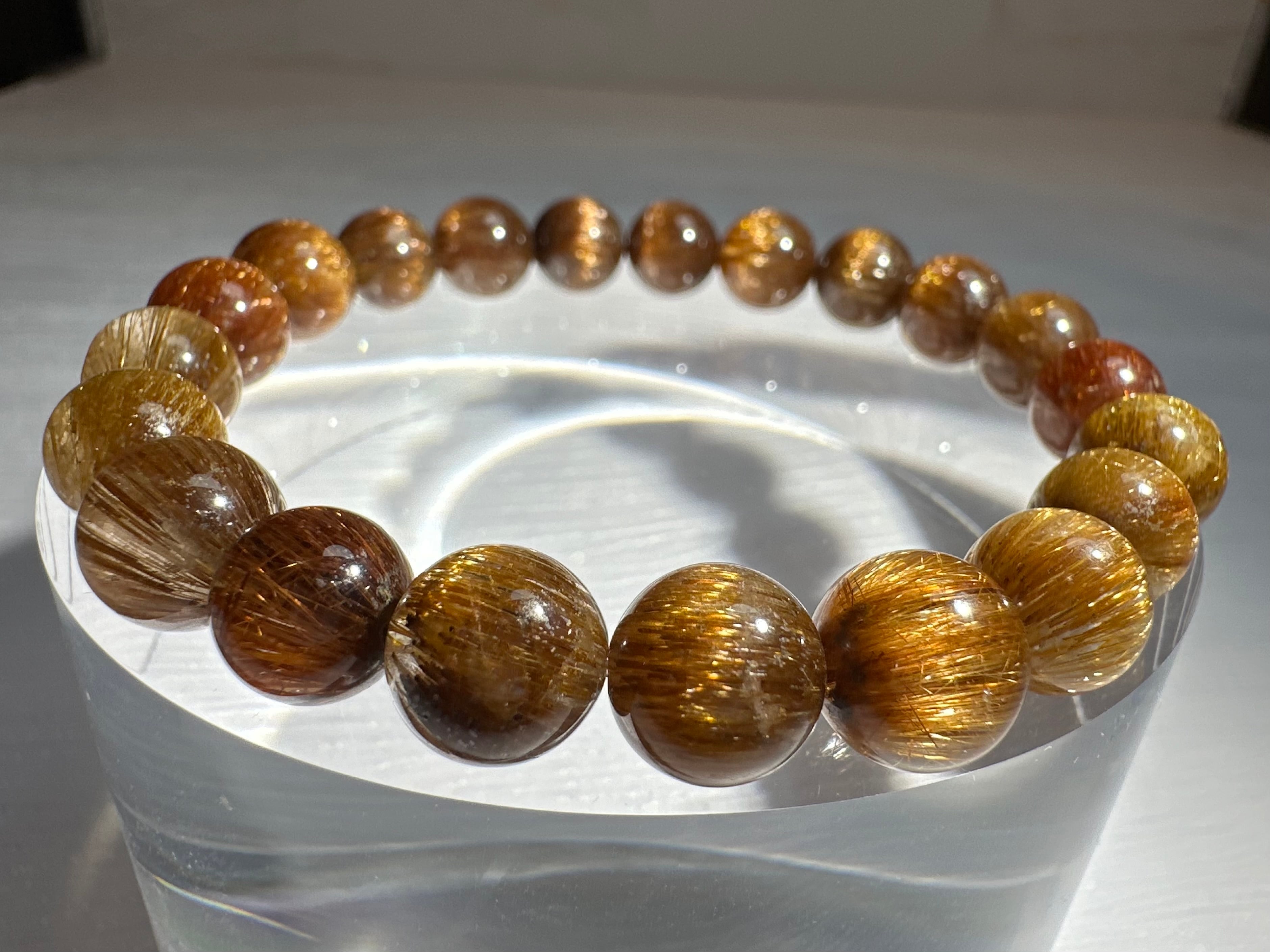 ゴールドルチルよりも柔らかな印象なので、幅広いシーンでお使いいただきやすい上質なルチルクォーツブレスレットです。