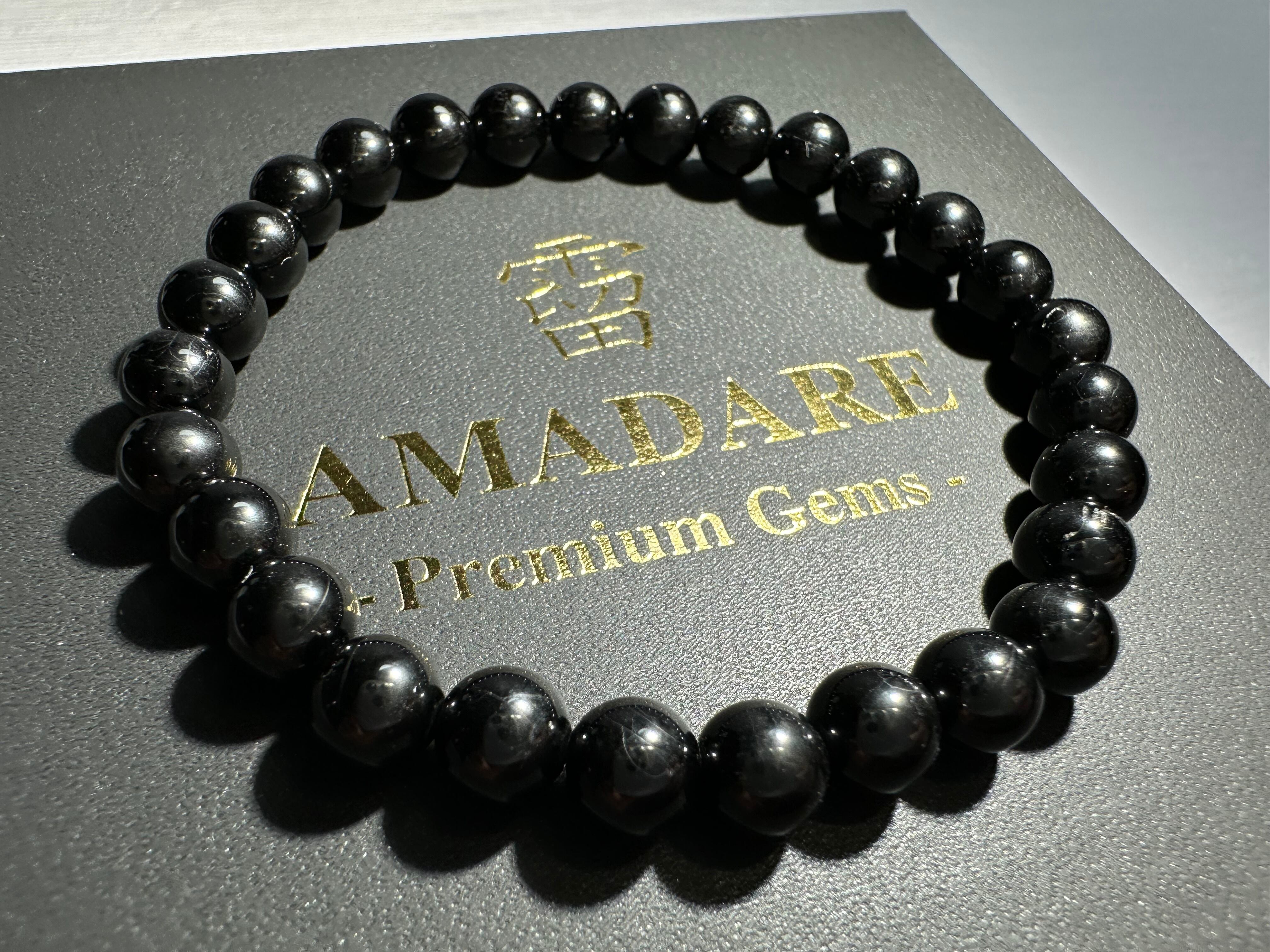 照りがしっかりと出ている美しいブラックトルマリンのフルブレスレットです。