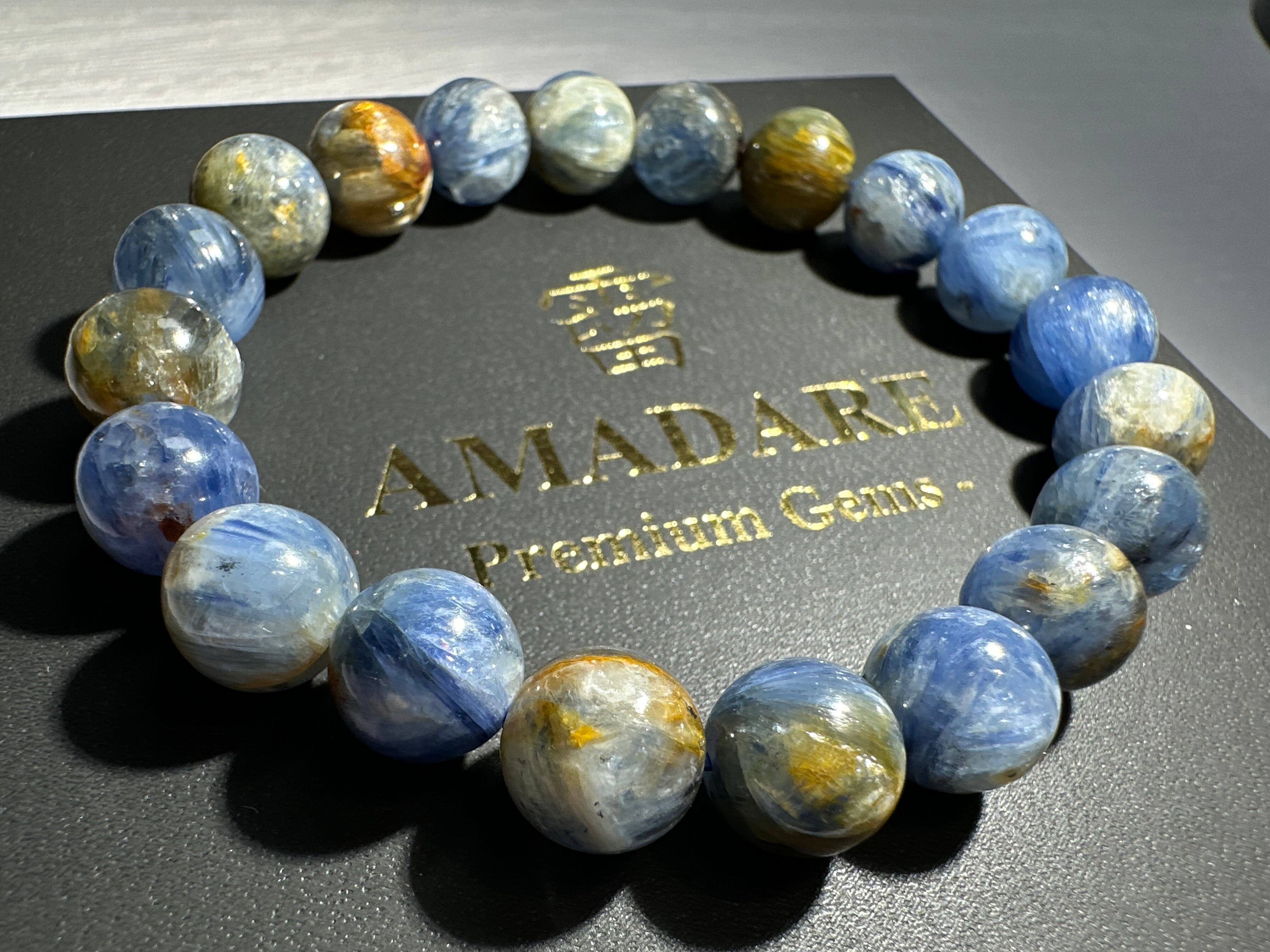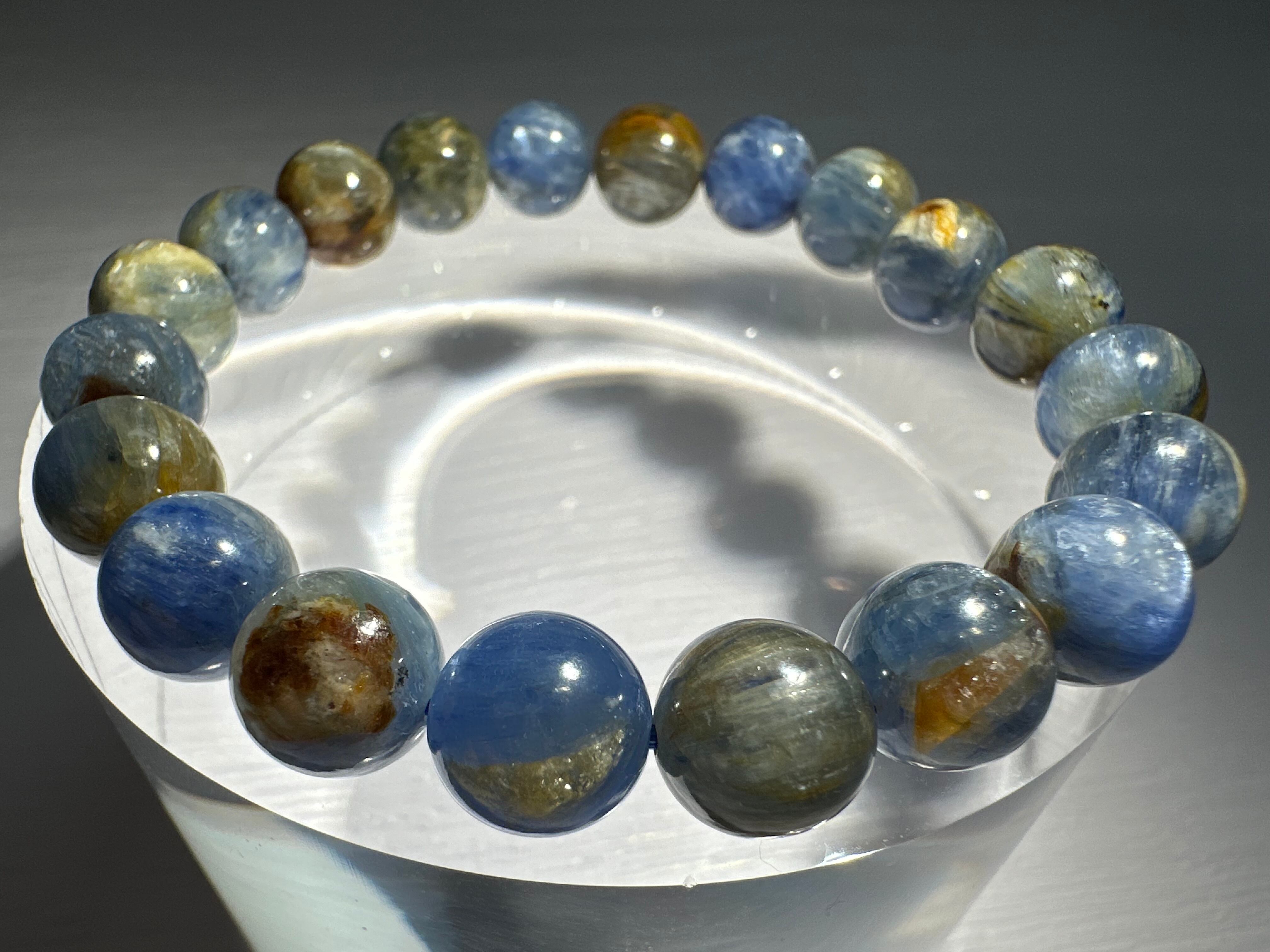 イエローやブルーカラーが混ざり合い、まるで絵画のような美しさのバイカラーカイヤナイトです。
