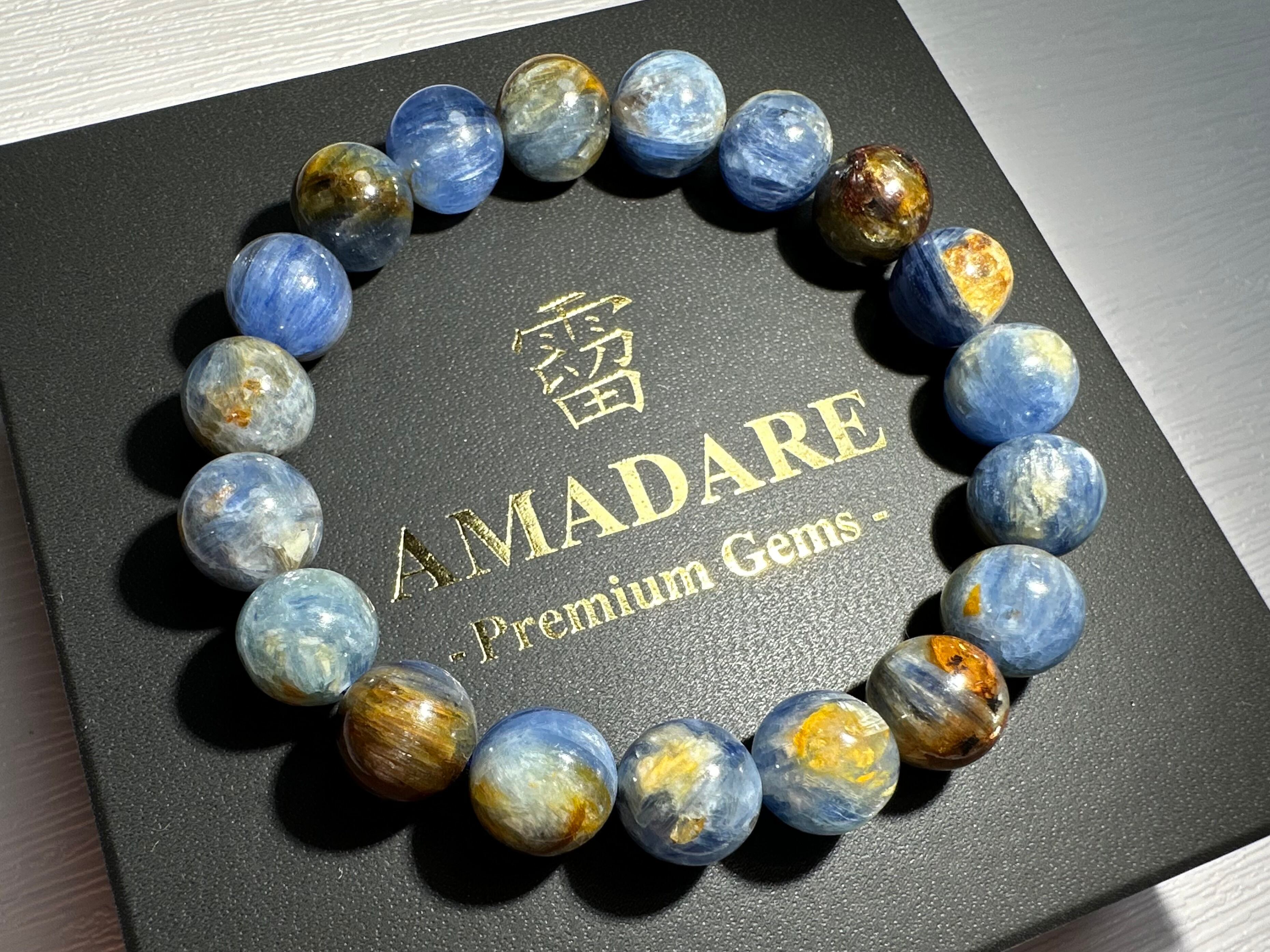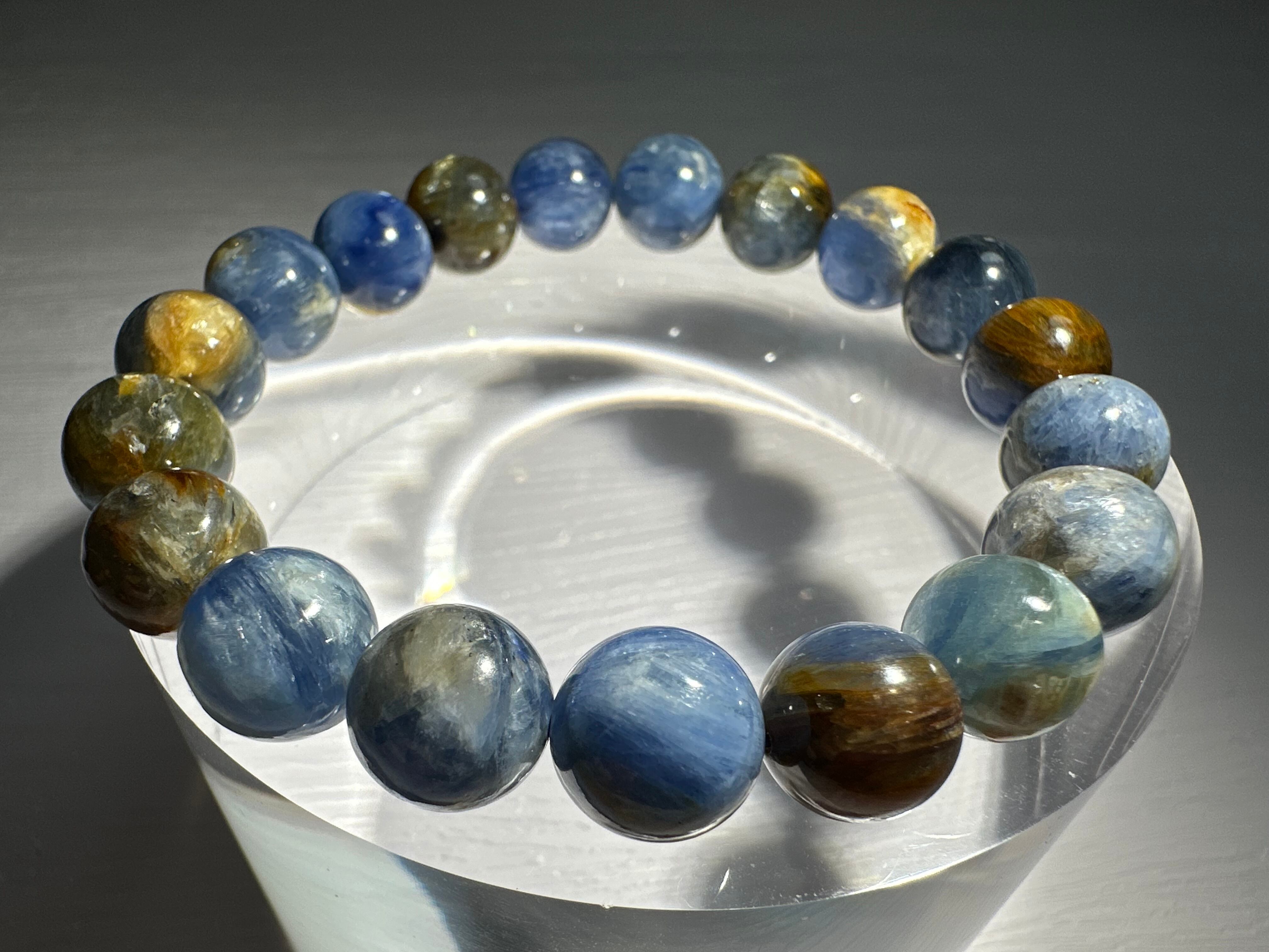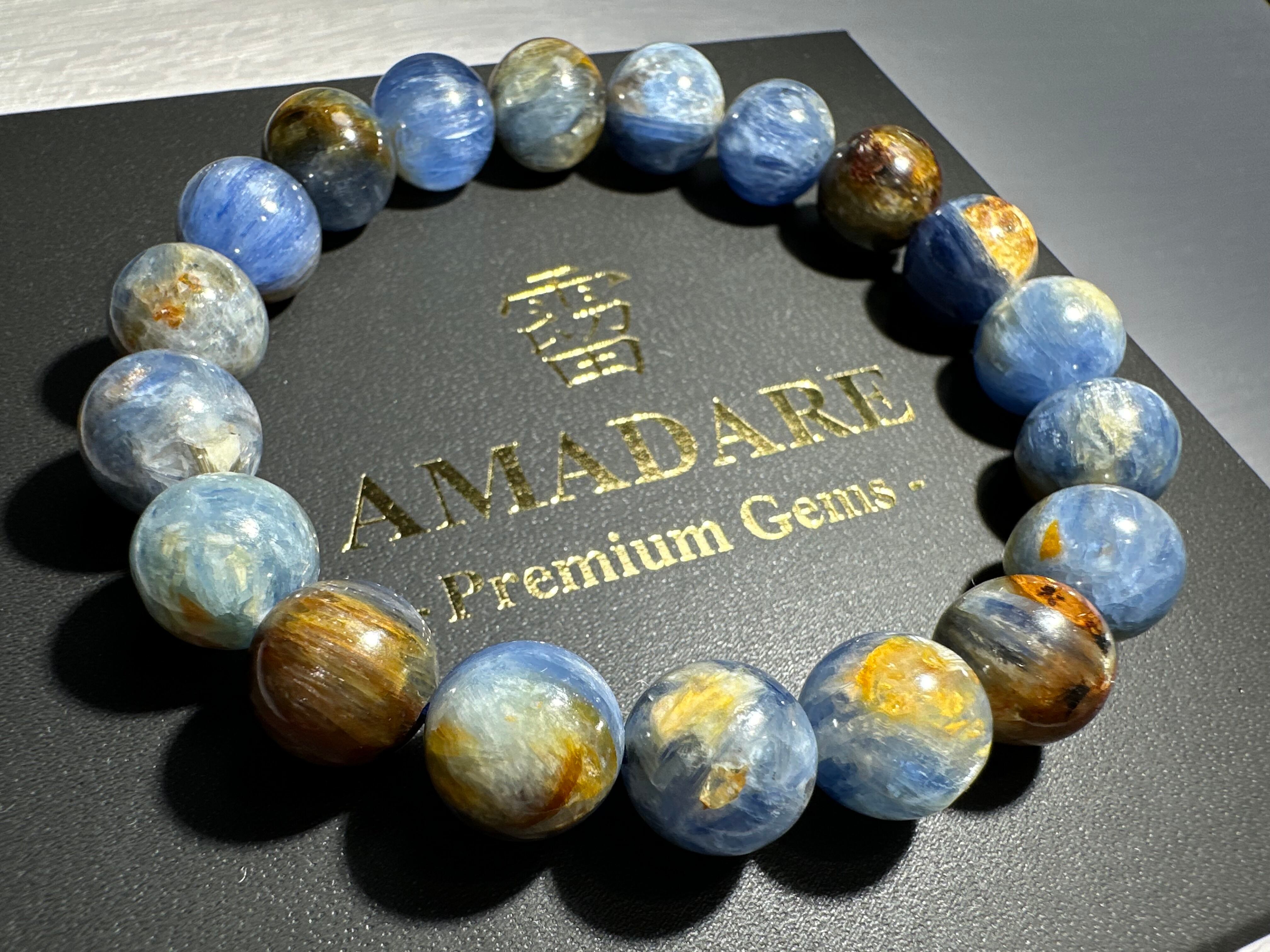 イエローやブルーカラーが混ざり合い、まるで絵画のような美しさのバイカラーカイヤナイトです。