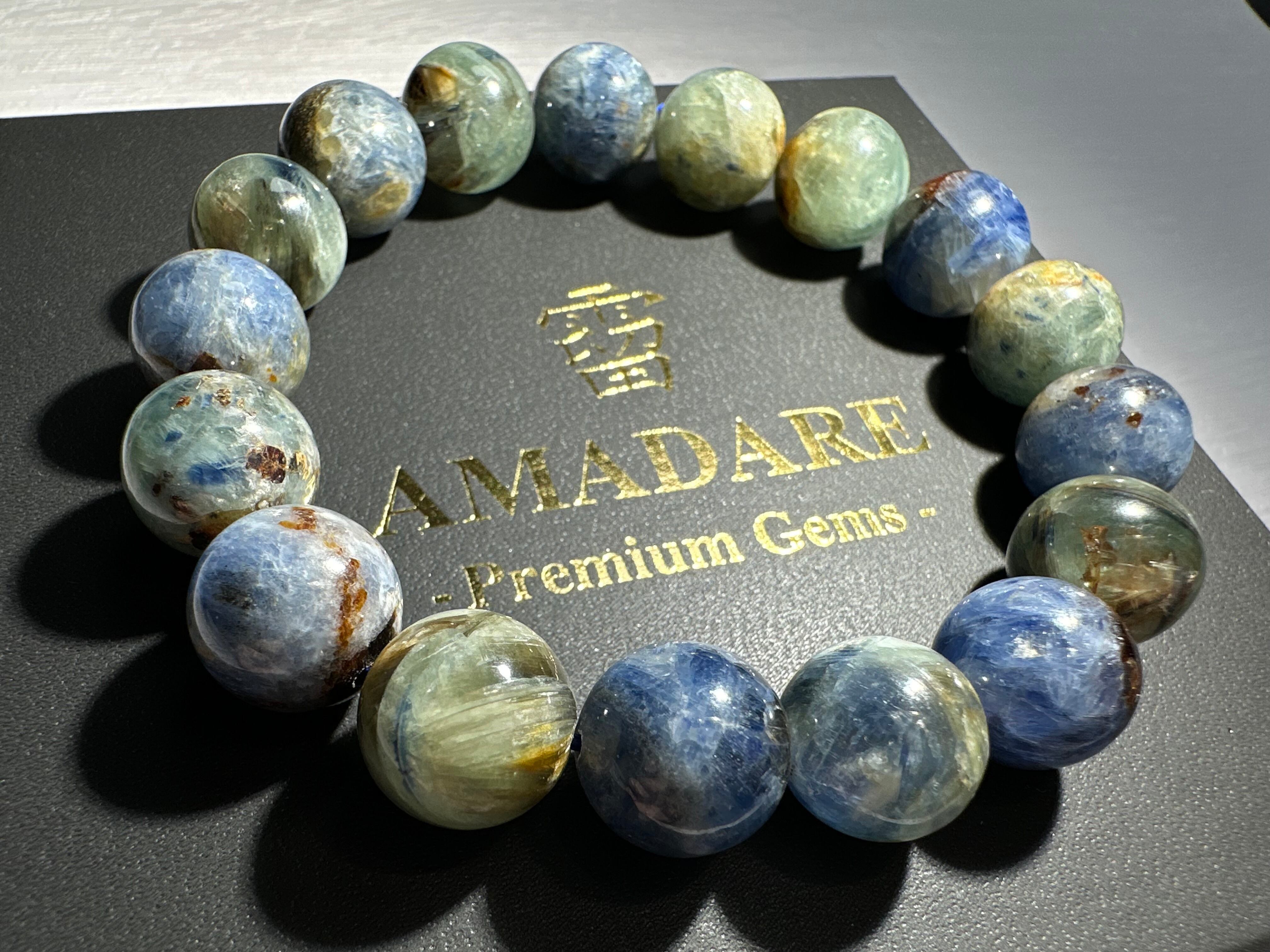 イエローやブルーカラーが混ざり合い、まるで絵画のような美しさのバイカラーカイヤナイトです。