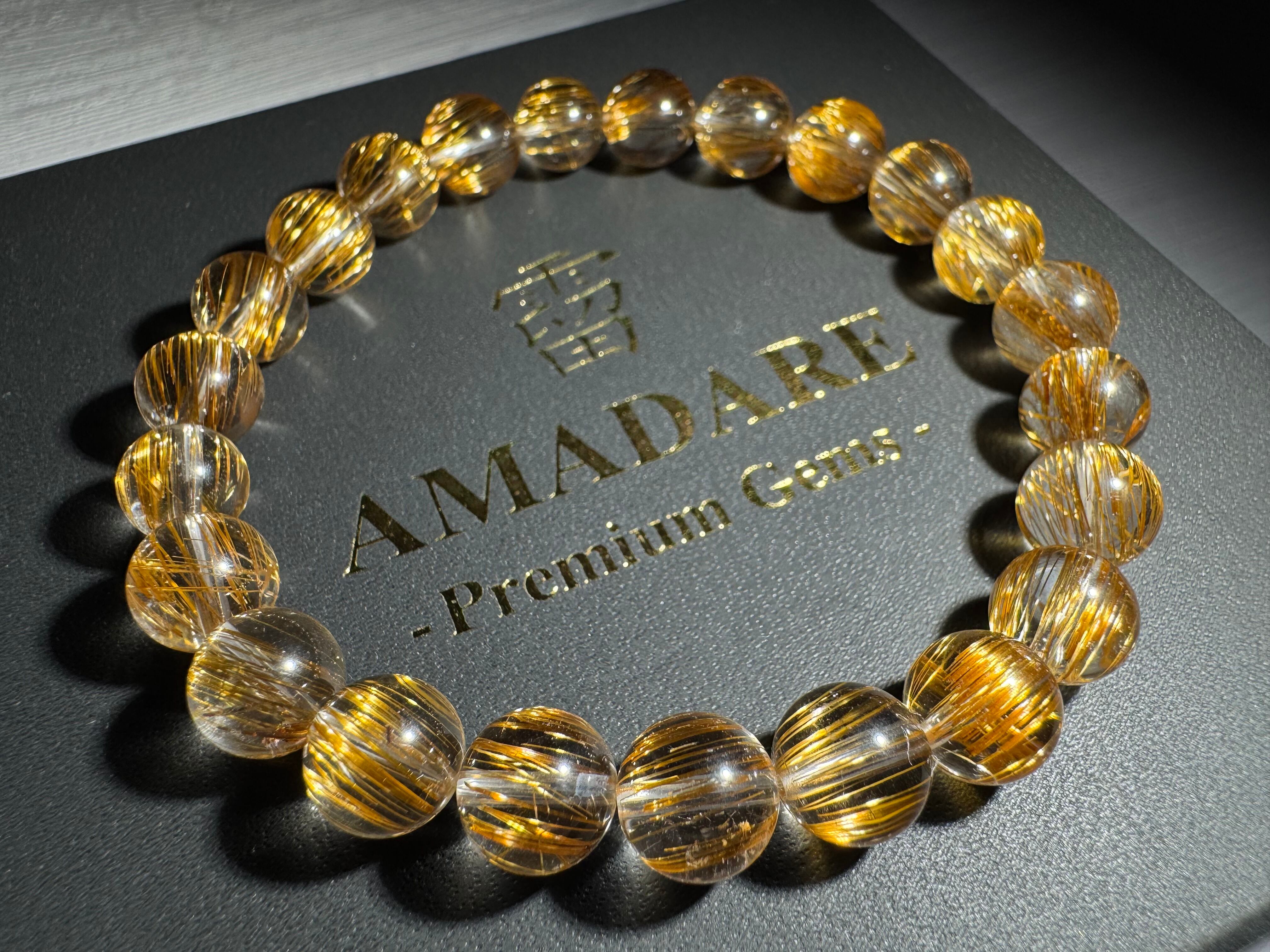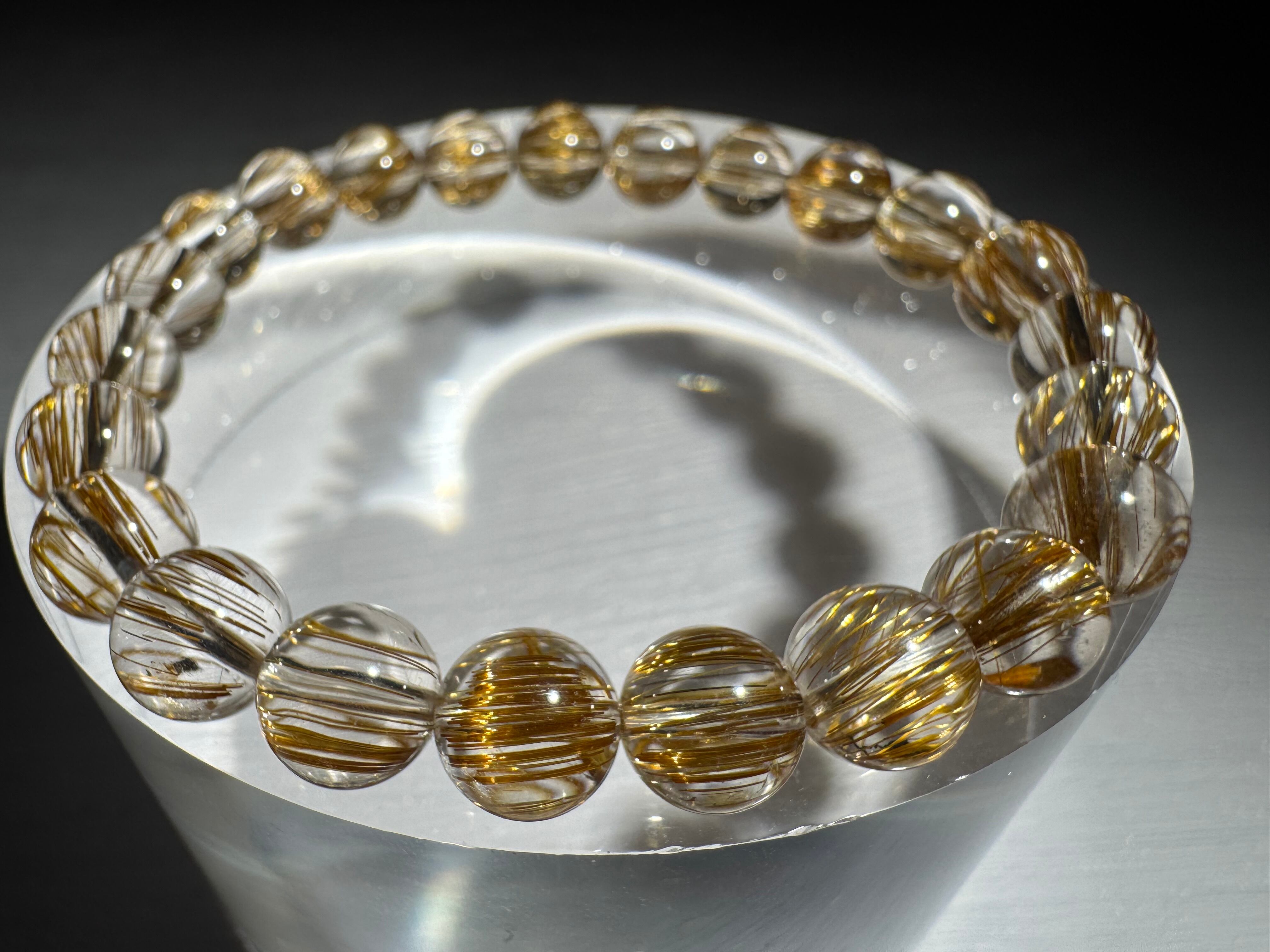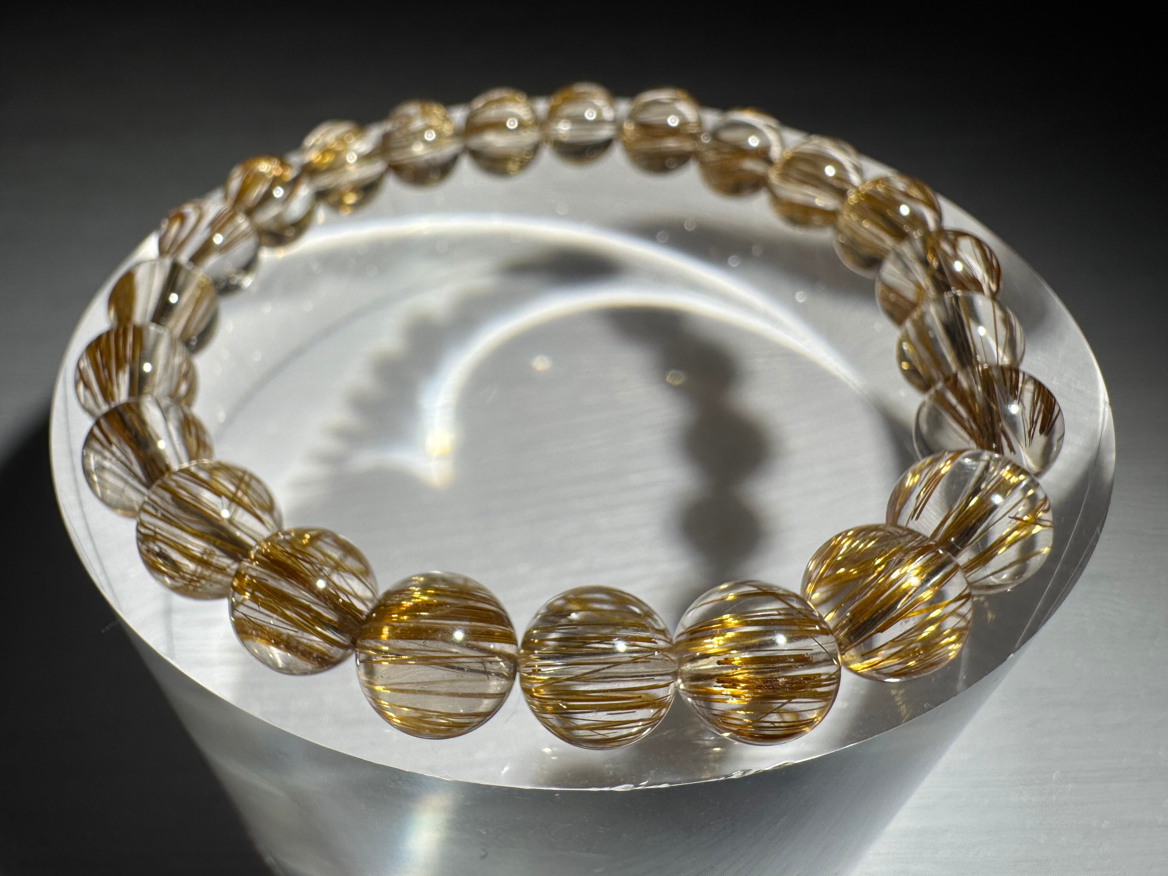 極めて透明度が高く、美しいブラウンの色味に、向きもしっかりと揃っている、Sグレードのブラウンタイチンルチルです。