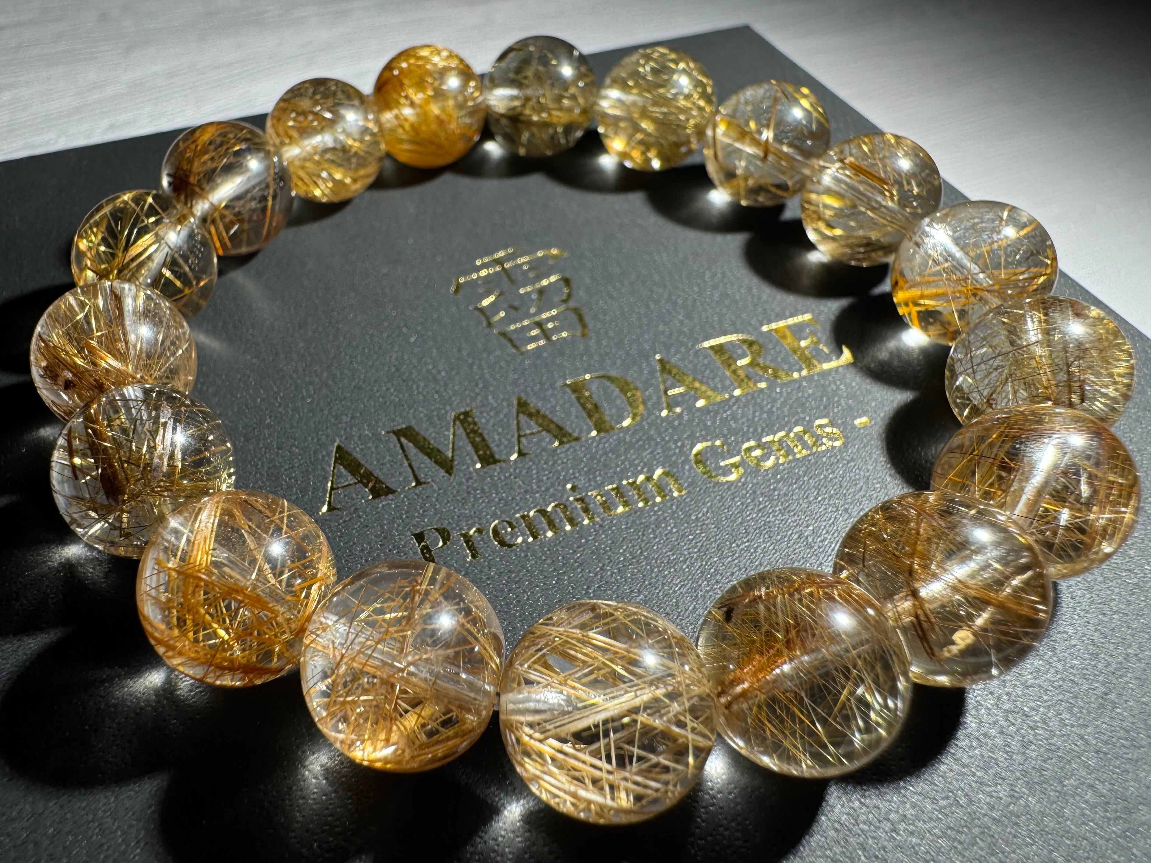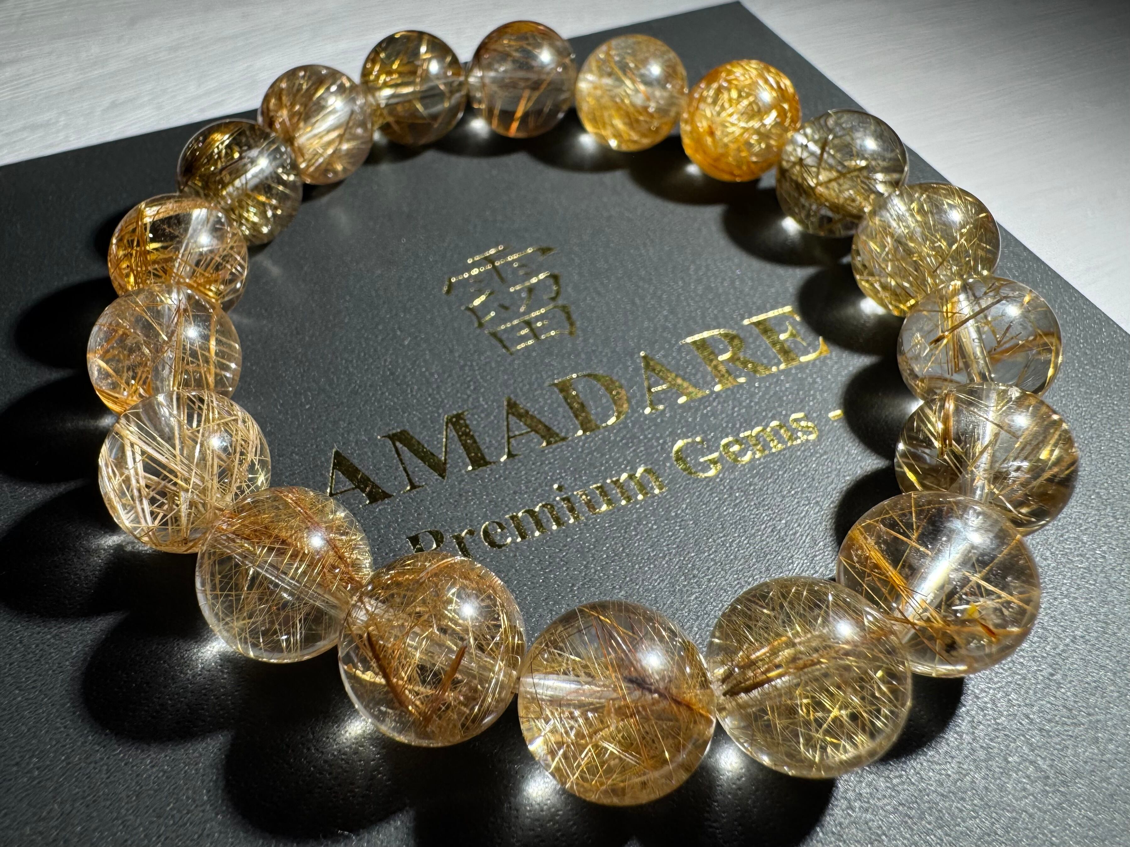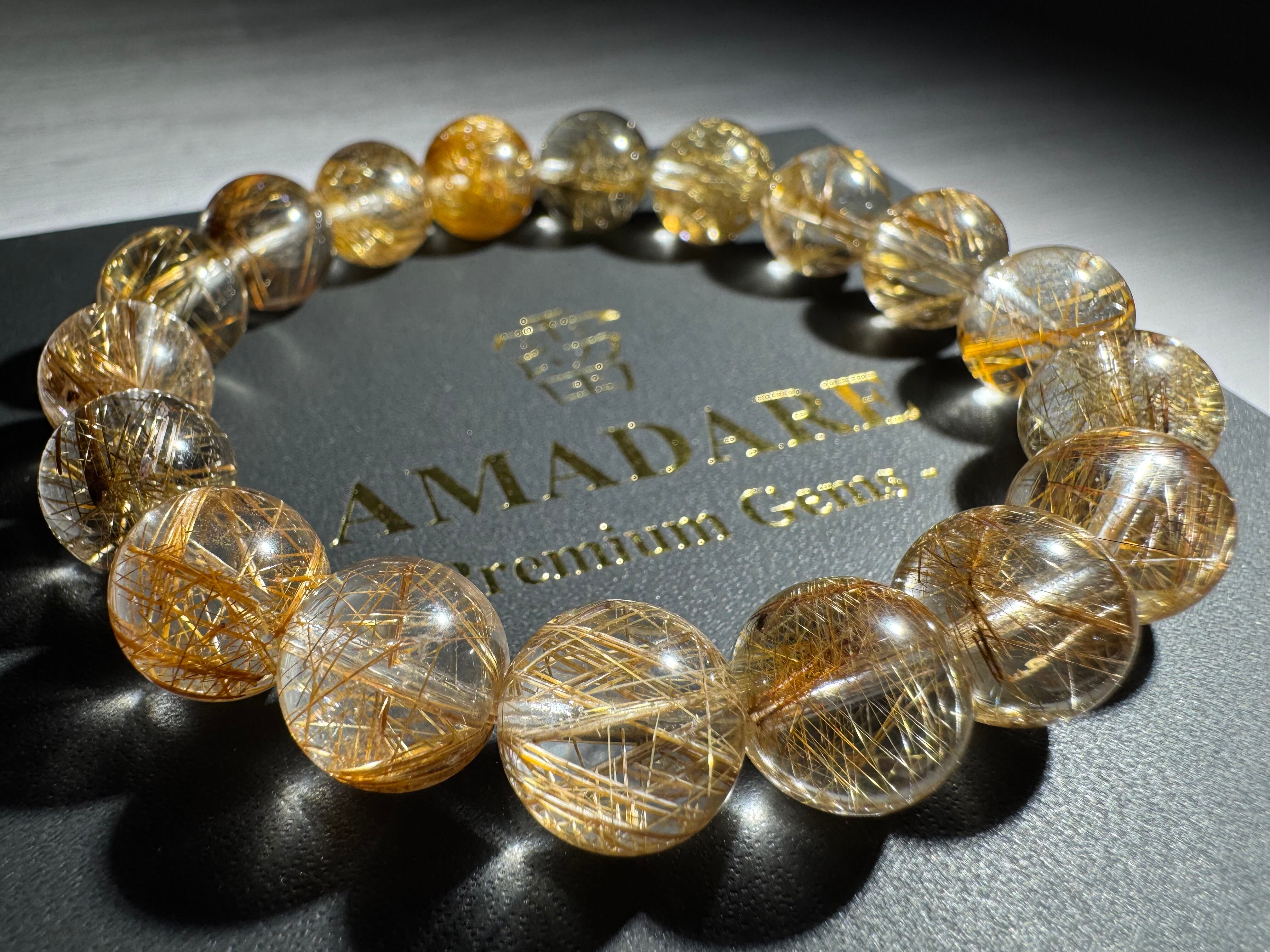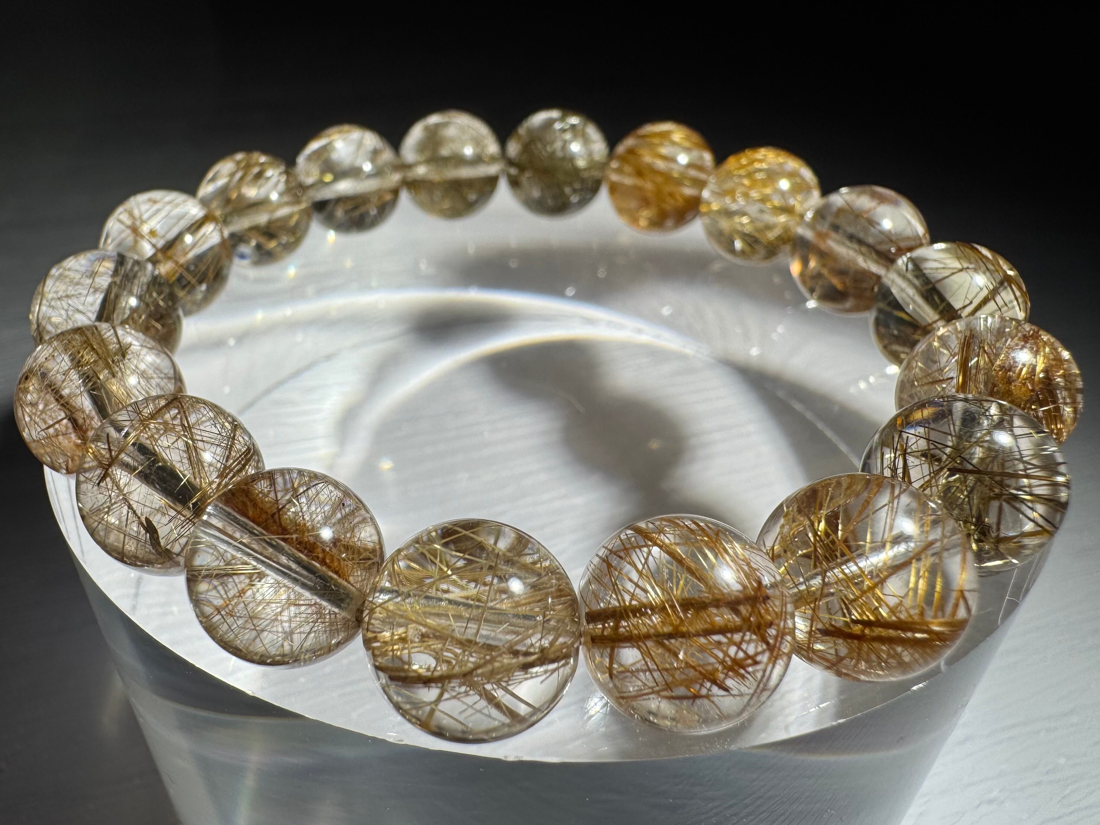 コーヒーカラーのルチルが繊細に煌めき、透明感も抜群に高く、大変美しいSSグレードコーヒールチルクォーツブレスレットです。