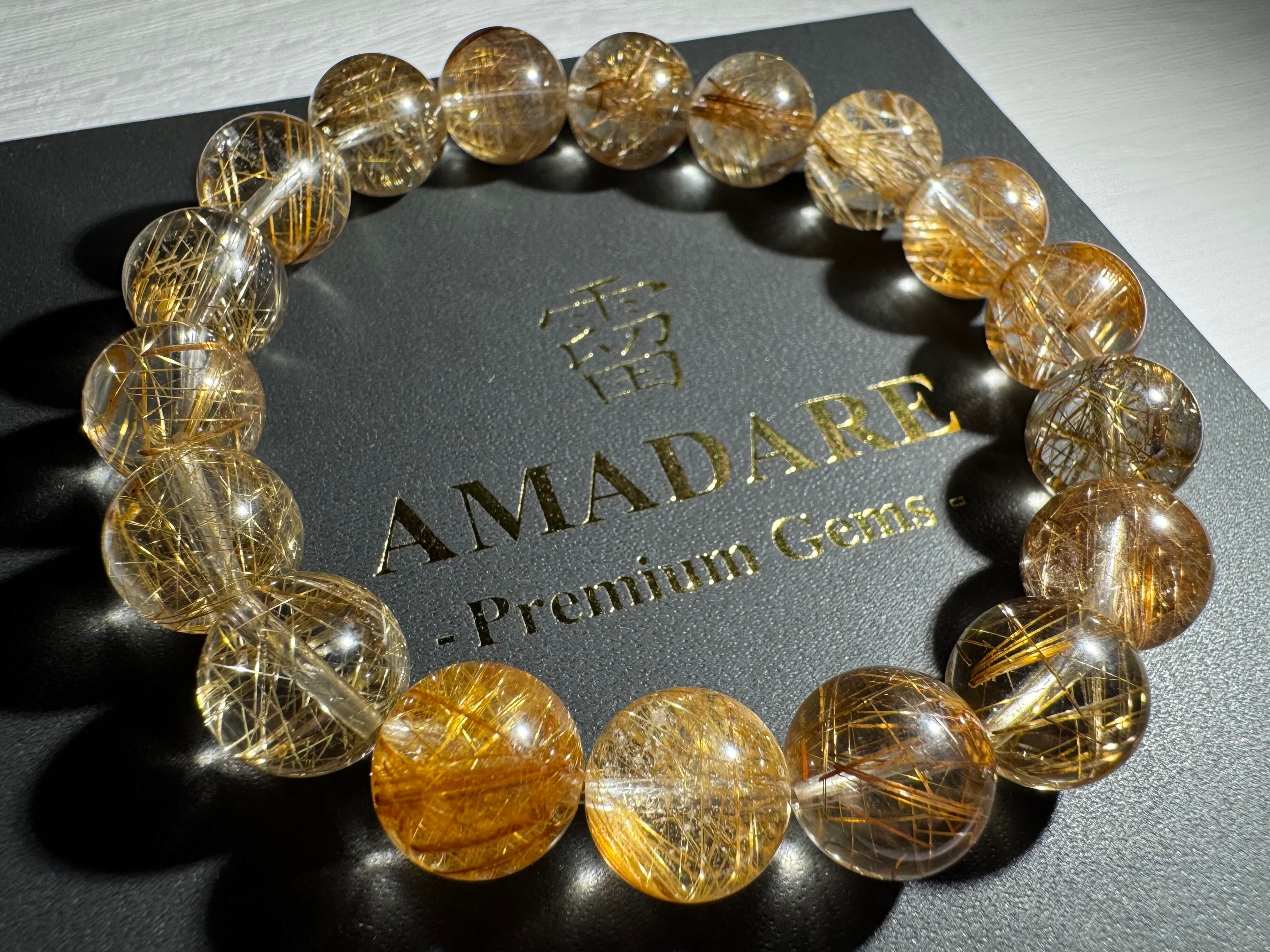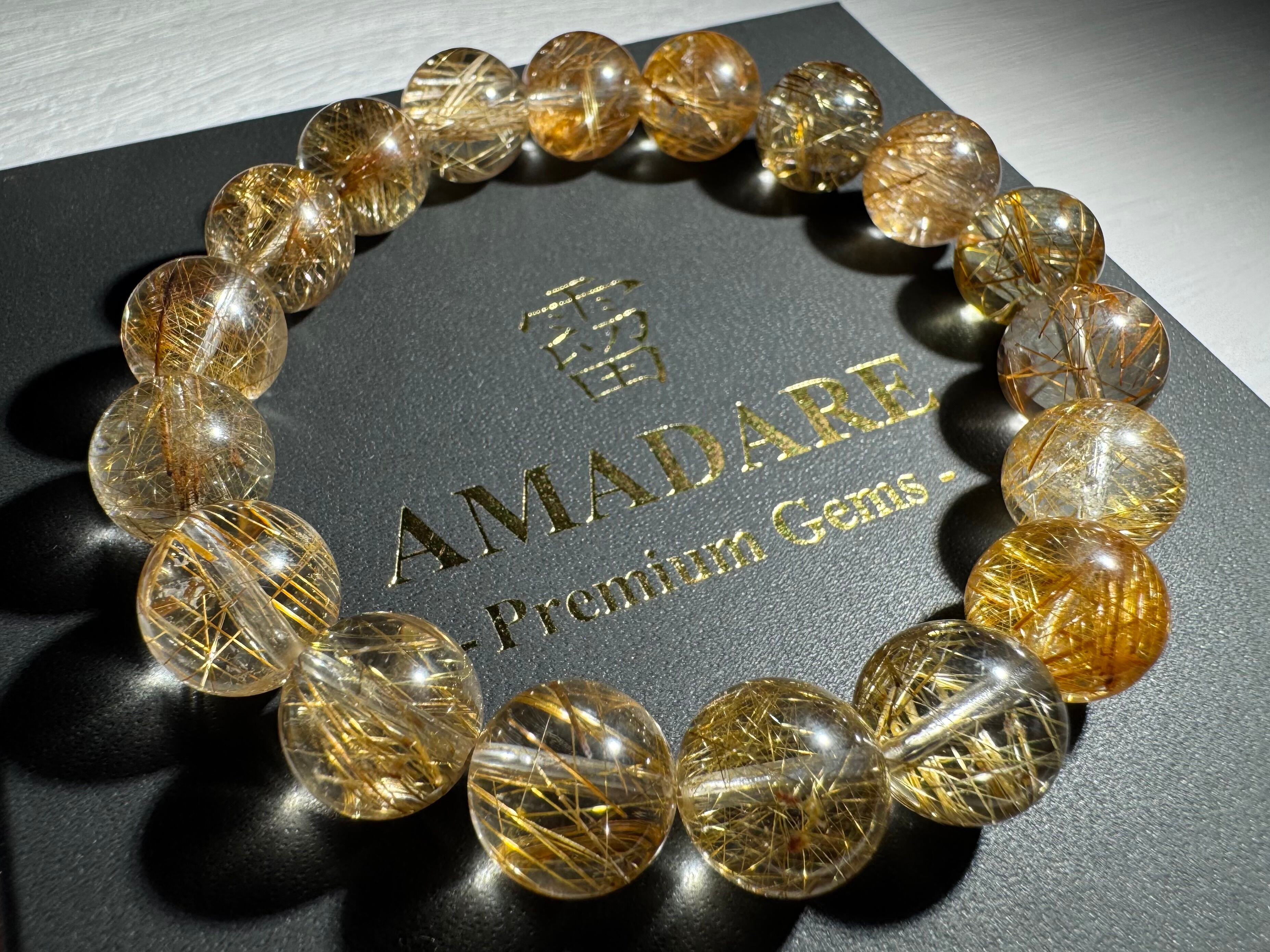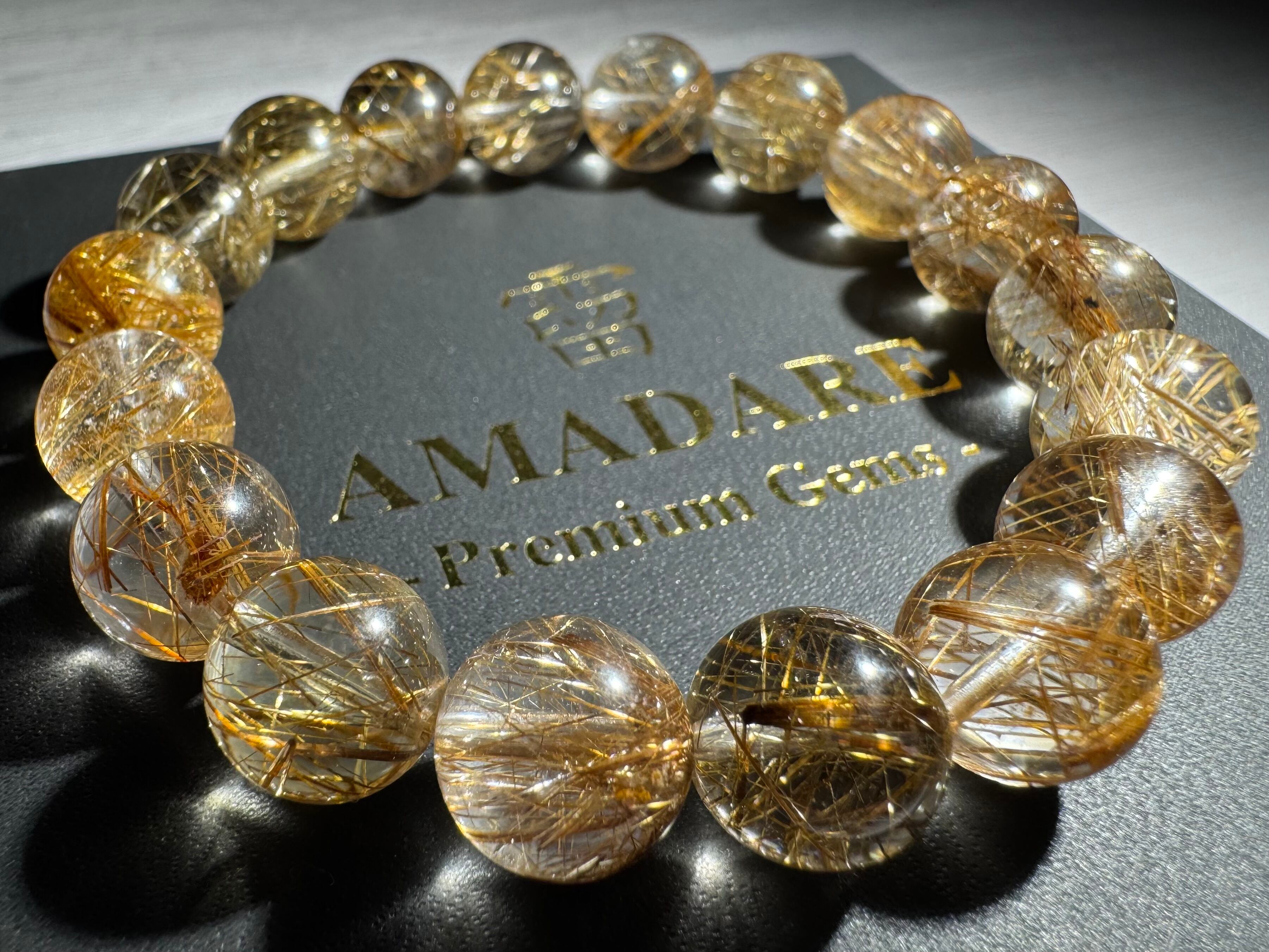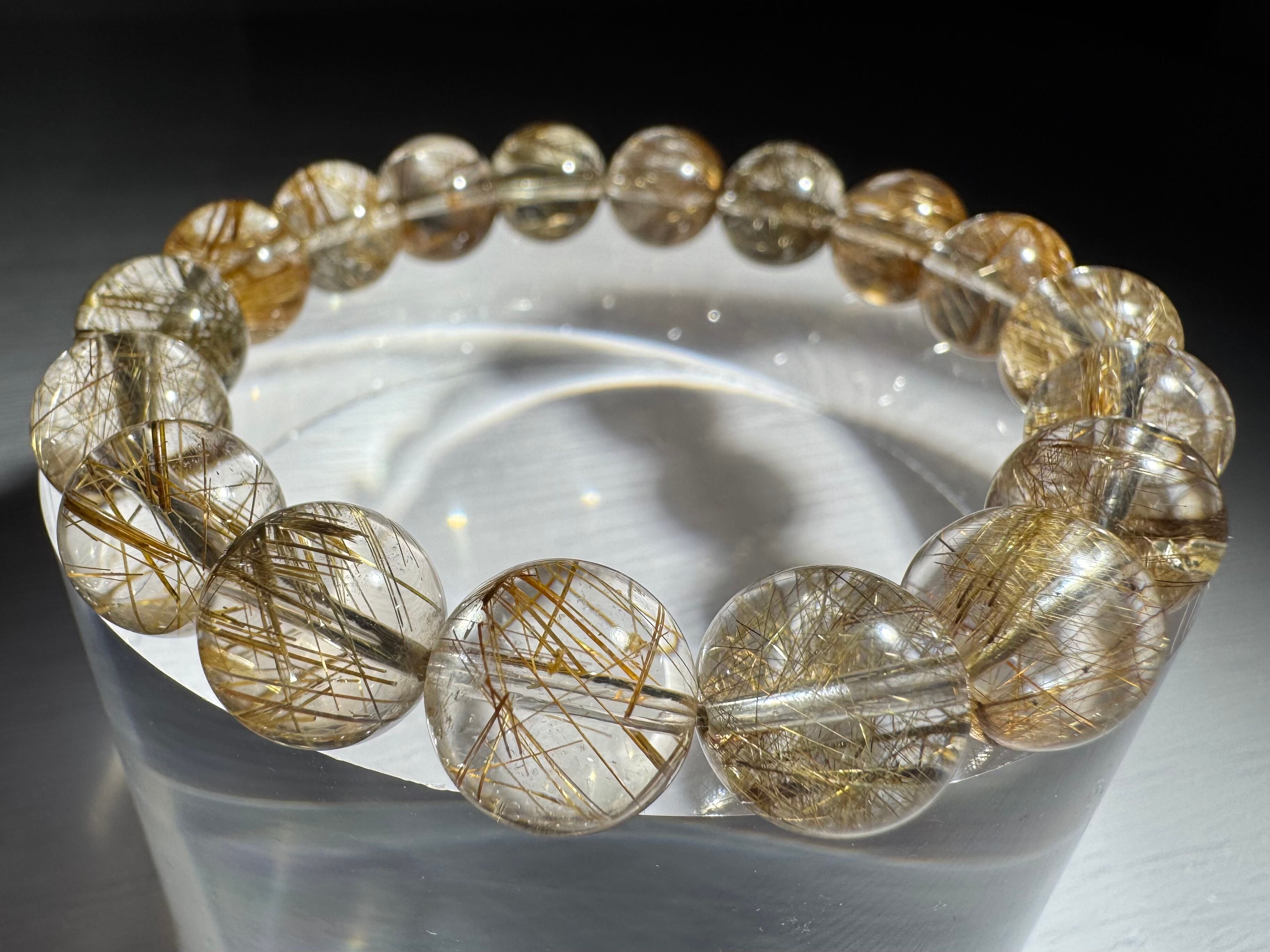 コーヒーカラーのルチルが繊細に煌めき、透明感も抜群に高く、大変美しいSSグレードコーヒールチルクォーツブレスレットです。