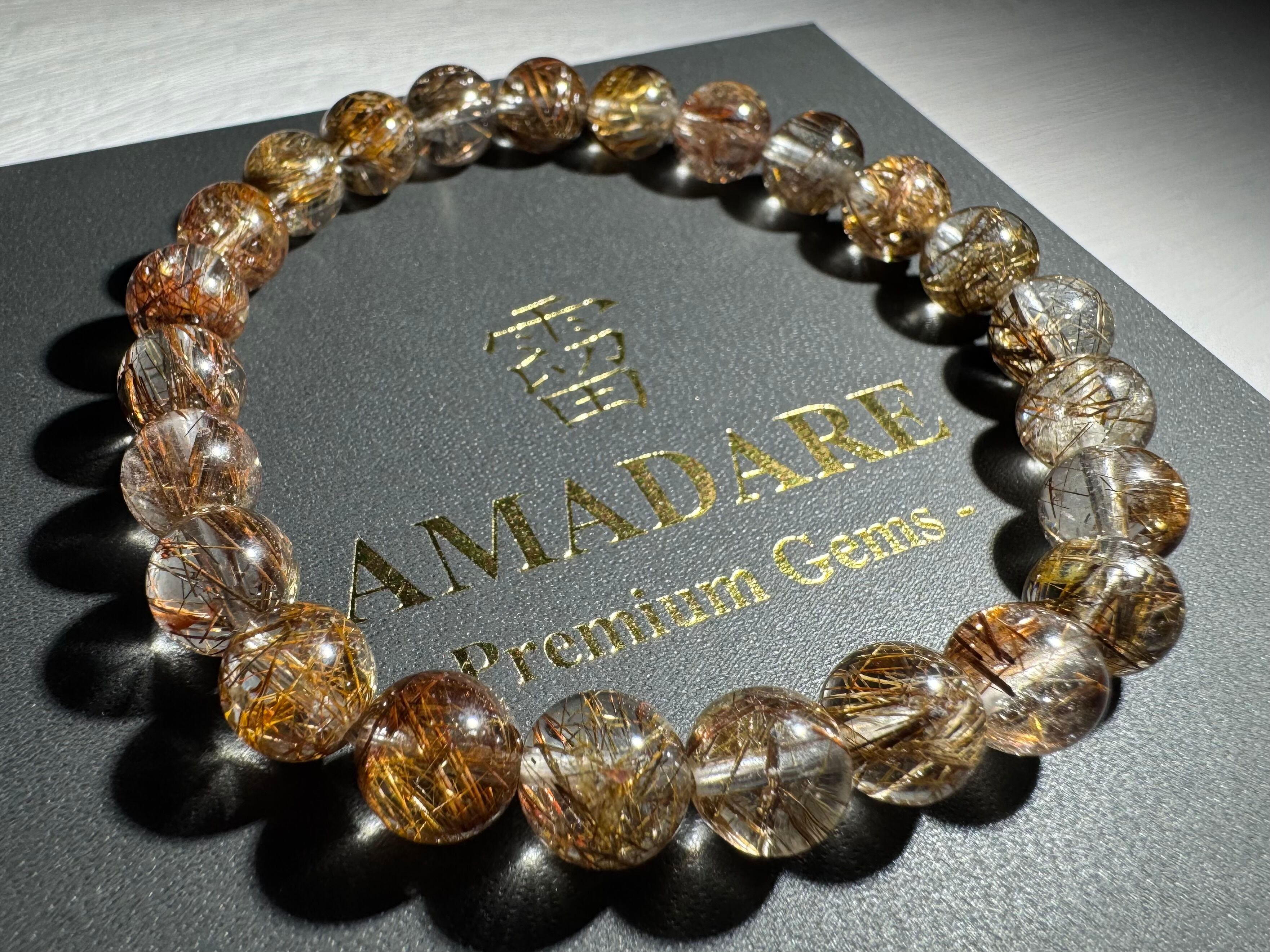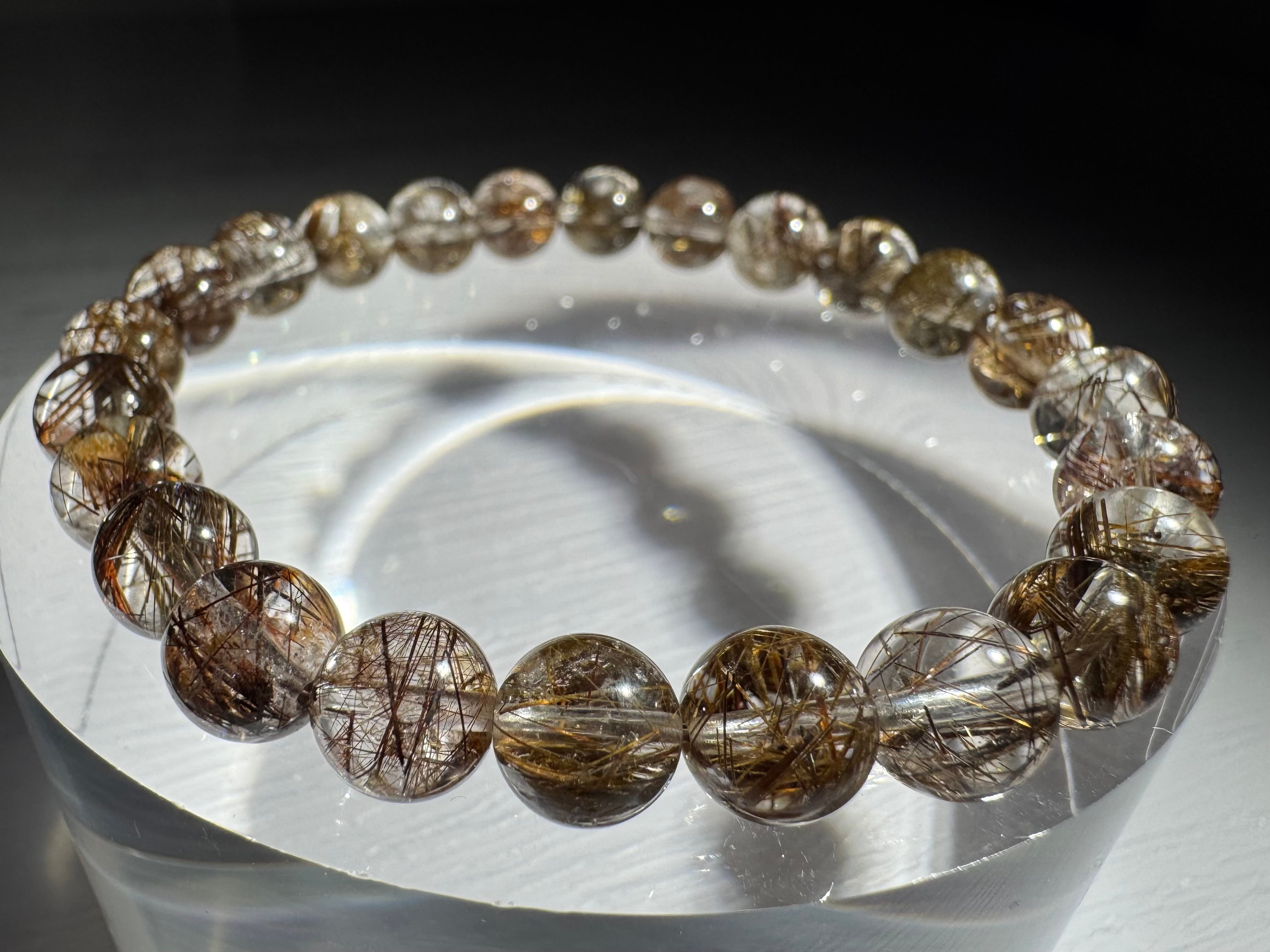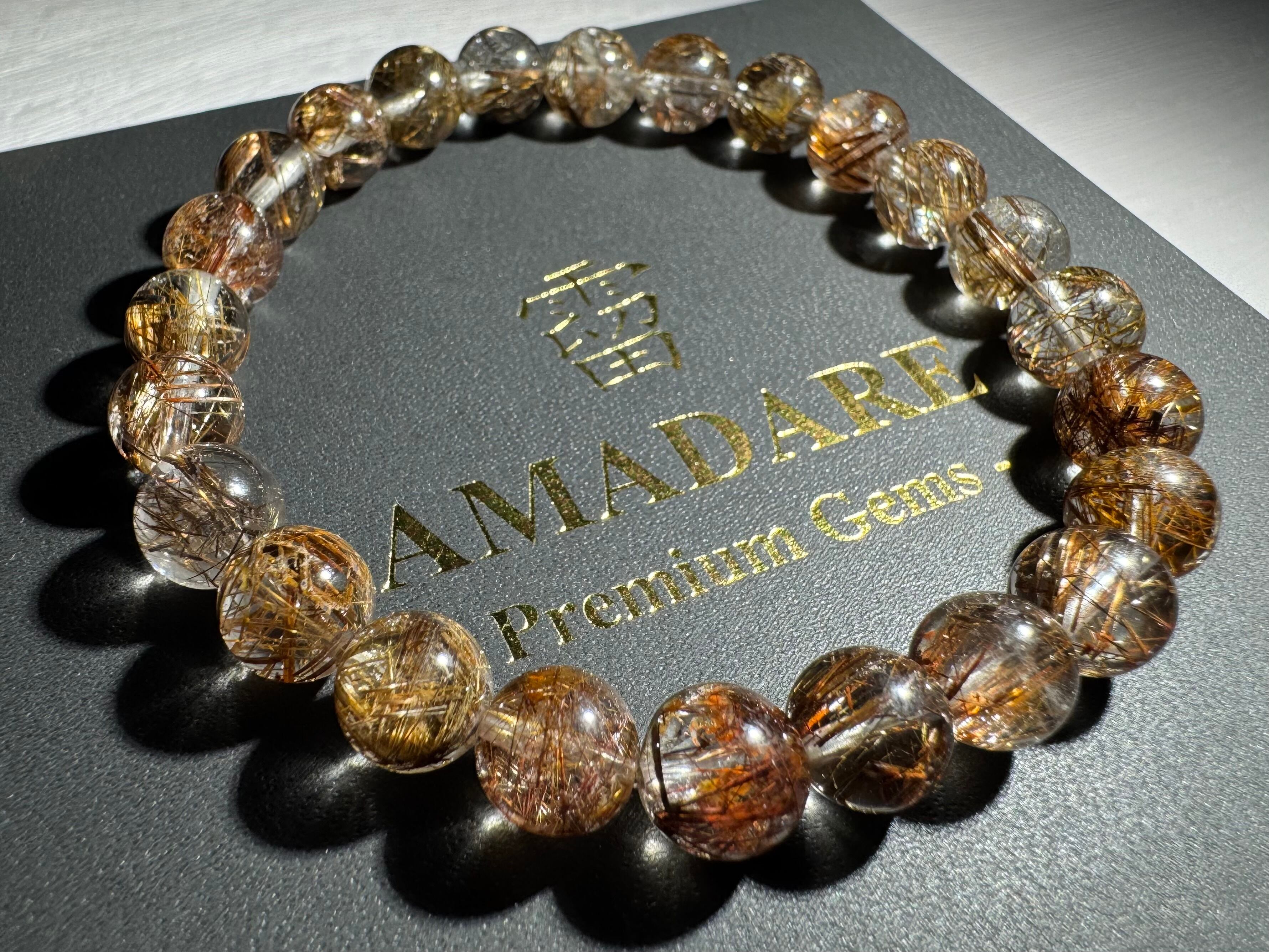 ダークな色合いのコーヒーカラールチルが煌めき、透明感も高く、美しいSグレードコーヒールチルクォーツブレスレットです。